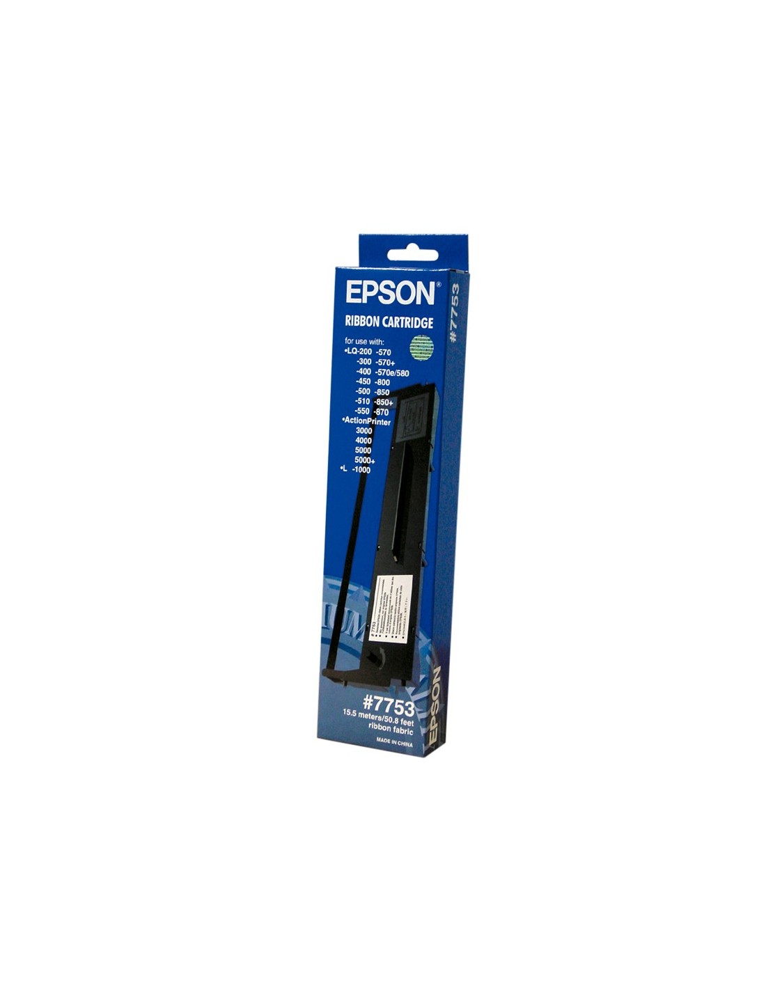 CINTA MAQUINA ORIGINAL PARA MAQUINAS: LQ-200/300/500/550/570/850/870 COLOR: NEGRO DURACION: 3 MILLONES DE CARACTERES EN LQ 3,42 MILLONES DE CARACTERES EN DRAFT