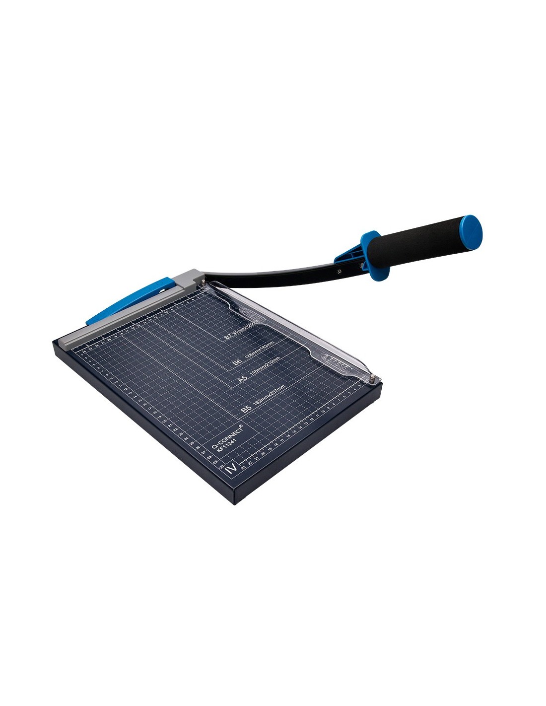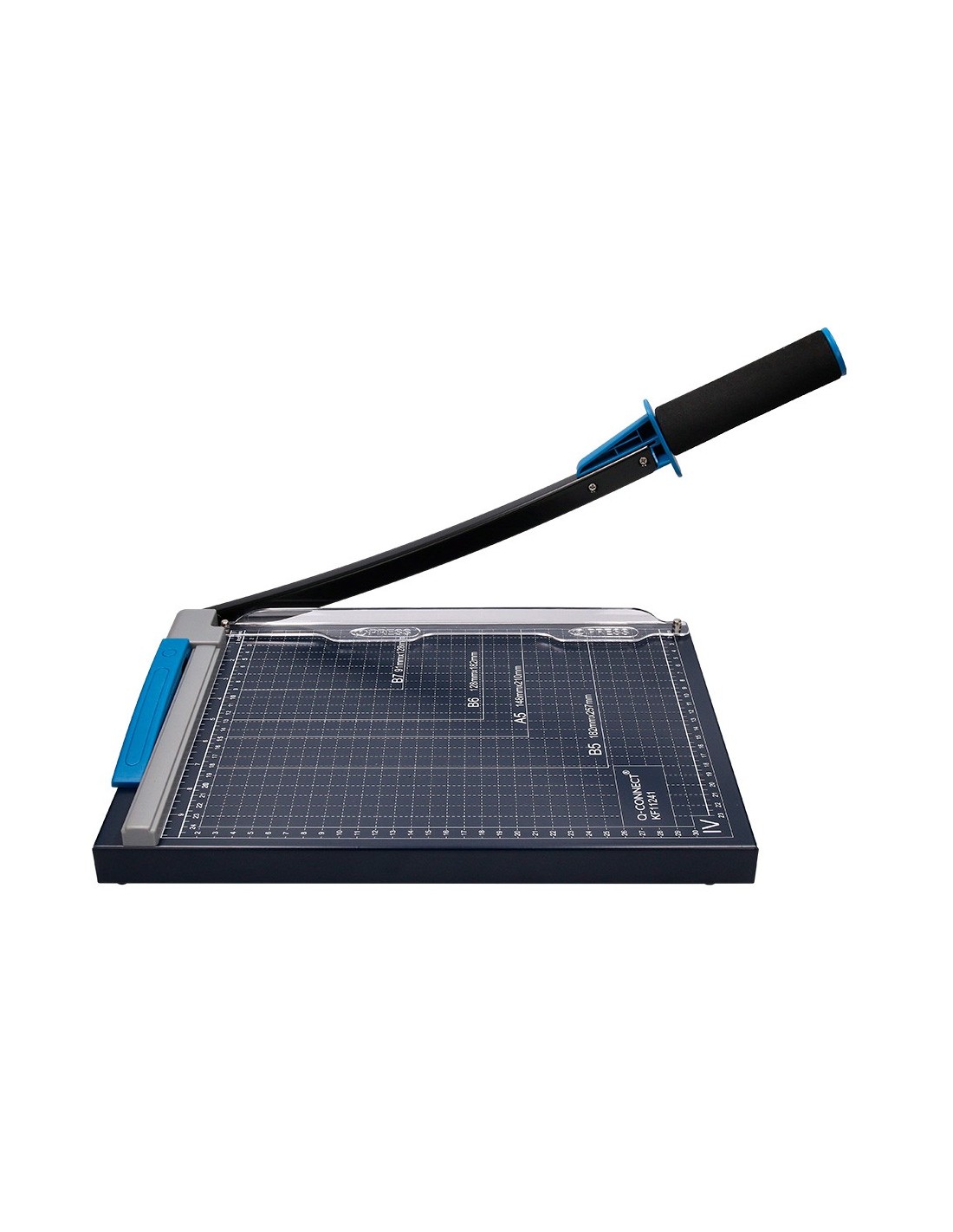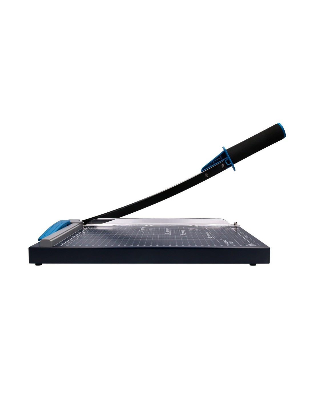 Máquina cortadora con base de metal. Medidas grabadas en la base. Perfecta para la oficina doméstica o para escritorio. Su cuchilla asegura un corte preciso y limpio pero no es muy filosa y se puede tocar con las manos. Con empuñadura ergonómica. Corta hasta DIN A4. Capacidad de corte: hasta 10 hojas de papel de 80 g/m². Longitud de corte: 320 mm. Medidas: 250 x 320 mm.