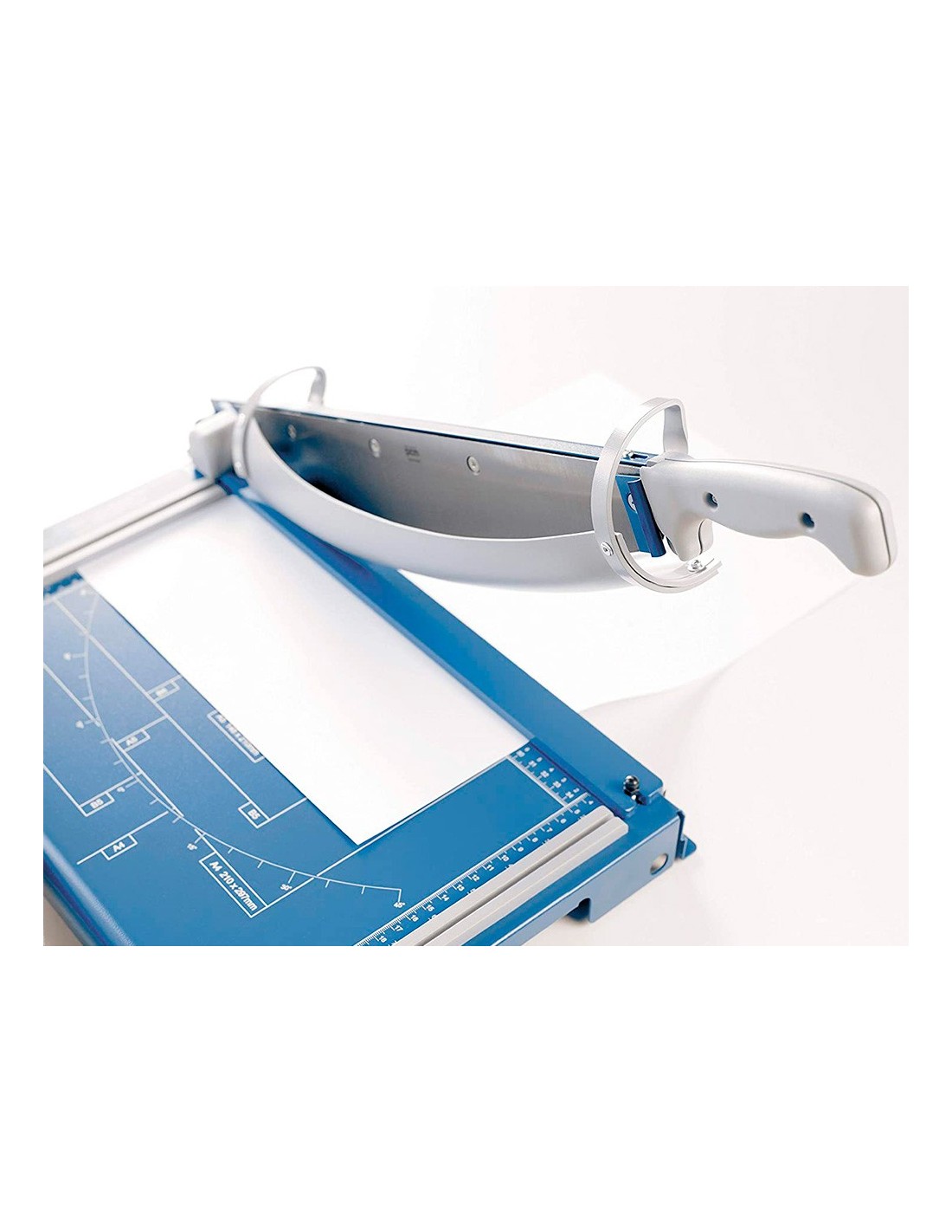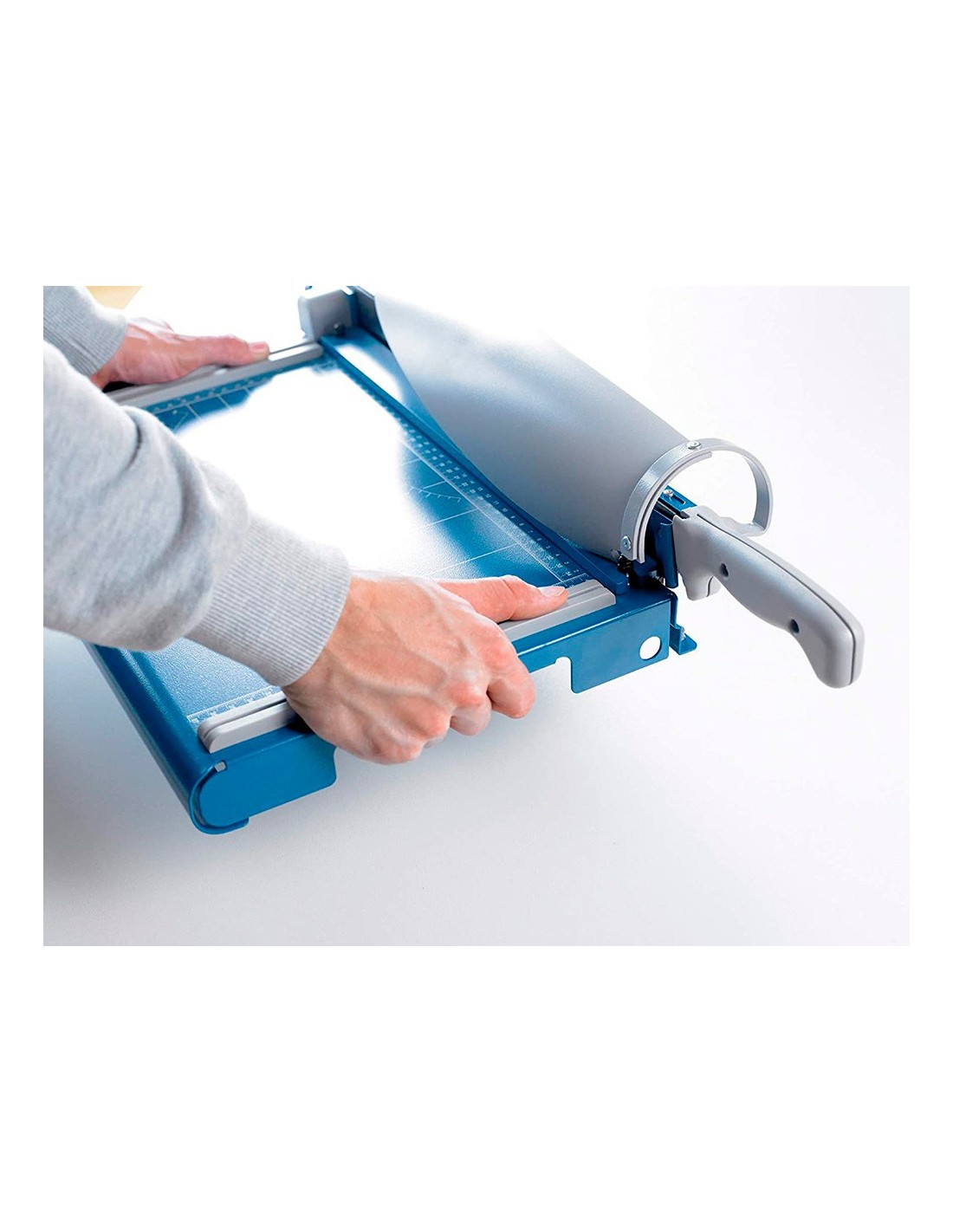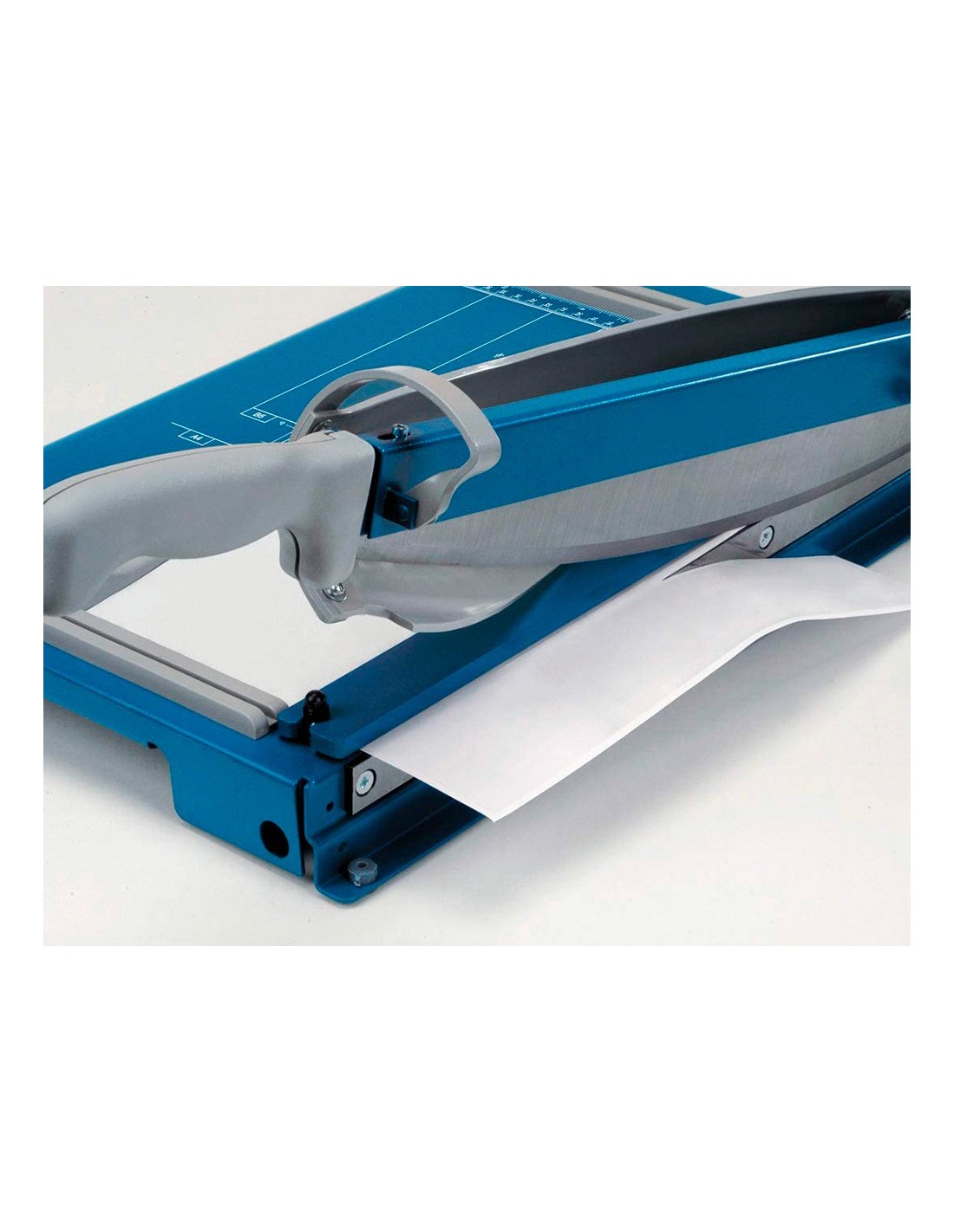 Cizalla de palanca profesional. Con base de corte metálica estable. Cuchillas rectificadas de acero de Solingen. Con sistema protector exclusivo de panel rotativo a lo largo de la cuchilla. Capacidad 3,5 mm. (35 hojas de 80 g/m²).