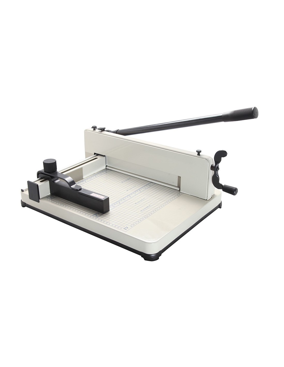 Guillotina manual profesional con capacidad para 400 hojas. Longitud del corte: 330 mm. Espesor de corte: 40 mm. Base metálica graduada. Con diferentes sistemas de protección: el cortador tiene un bloqueo de seguridad, además, la cuchilla está cubierta por una caja de seguridad para evitar cortes. Medidas: 600 x 435 x 250 mm.