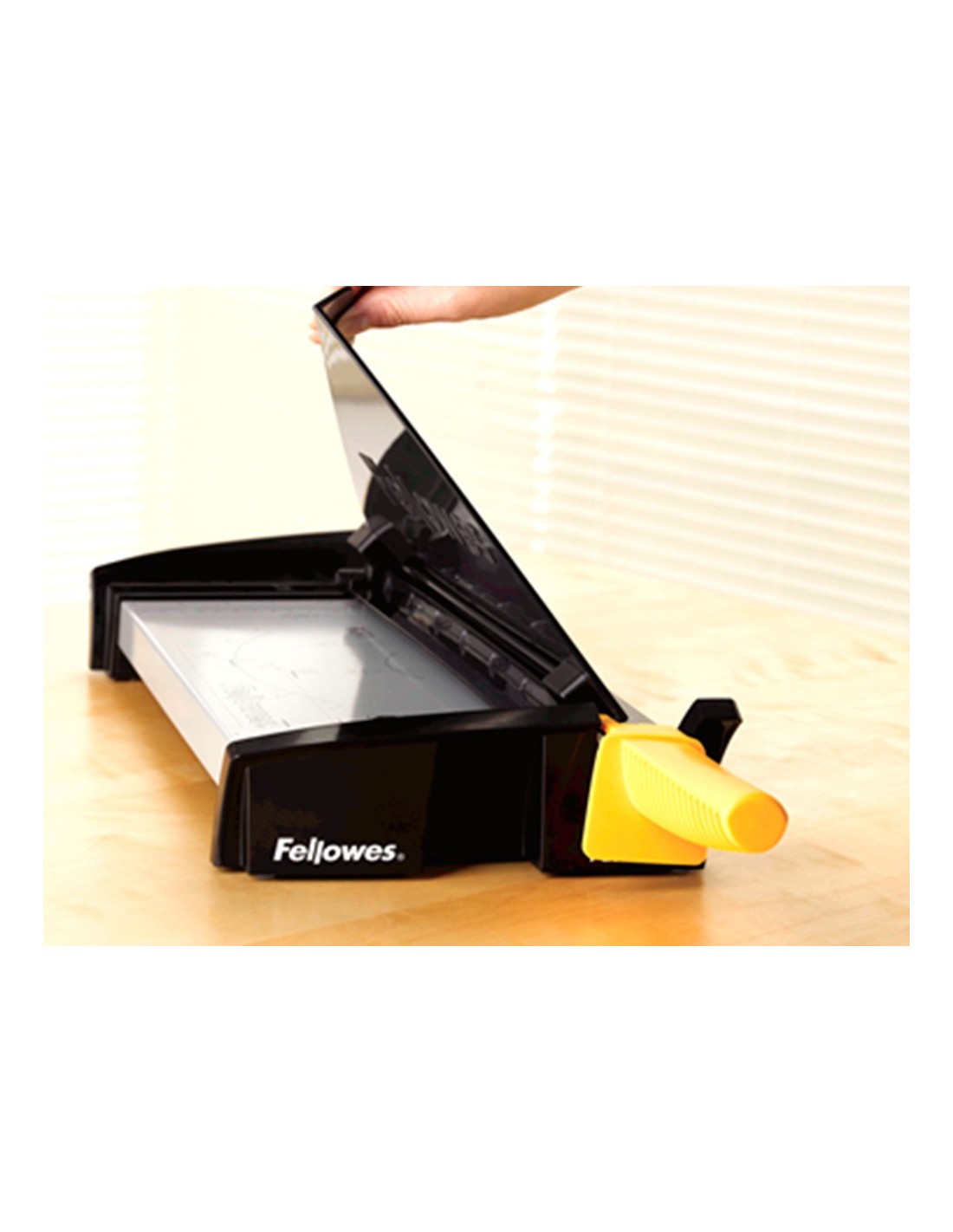 Cizalla metálica de palanca con base metálica y cuchilla de acero inoxidable SafeCut TM, encapsulada para la seguridad del usuario. Guías de corte para formatos DIN, fotos y radio para cortes en ángulo. Prensador de papel que garantiza un corte más preciso. Con patas antideslizantes. Capacidad de corte: 10 hojas de papel de 80 g/m².