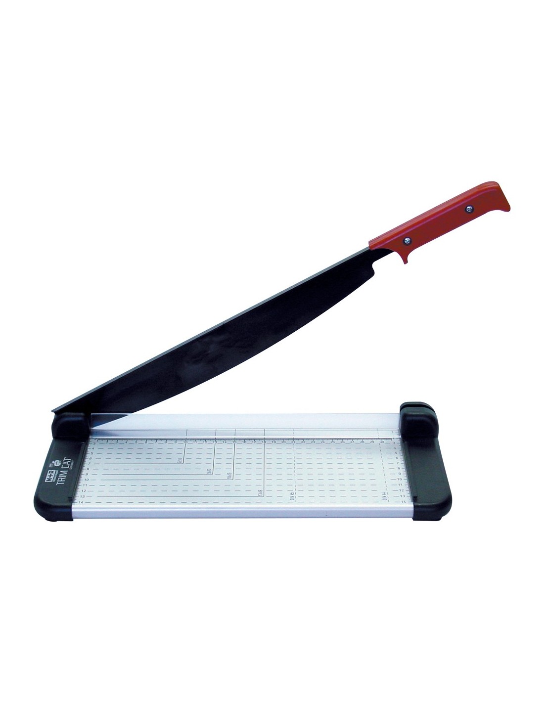 Máquina cortadora con base de alumnio. Robusta y con medidas grabadas en centímetros, pulgadas y resto de formatos habituales. Cuchilla de acero de gran calidad con filo cortado a láser. Con protección de seguridad para los dedos. Precisa y fácil de utilizar. Capacidad de corte: 8 hojas. Disponible en varios tamaños con diversas longitudes de corte.