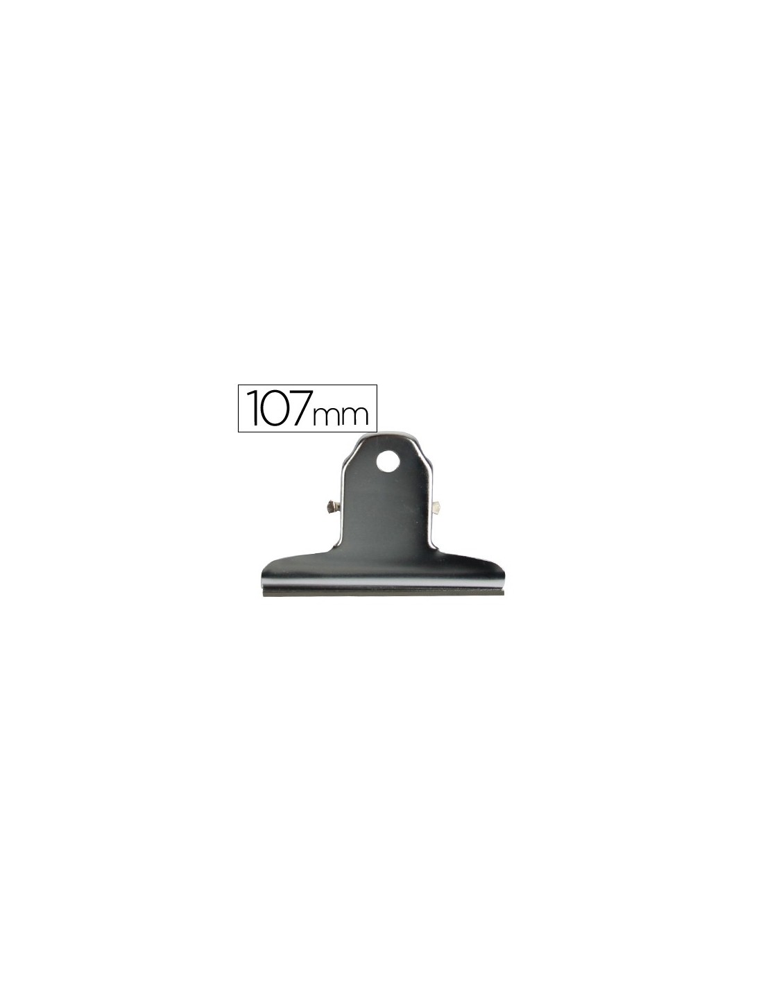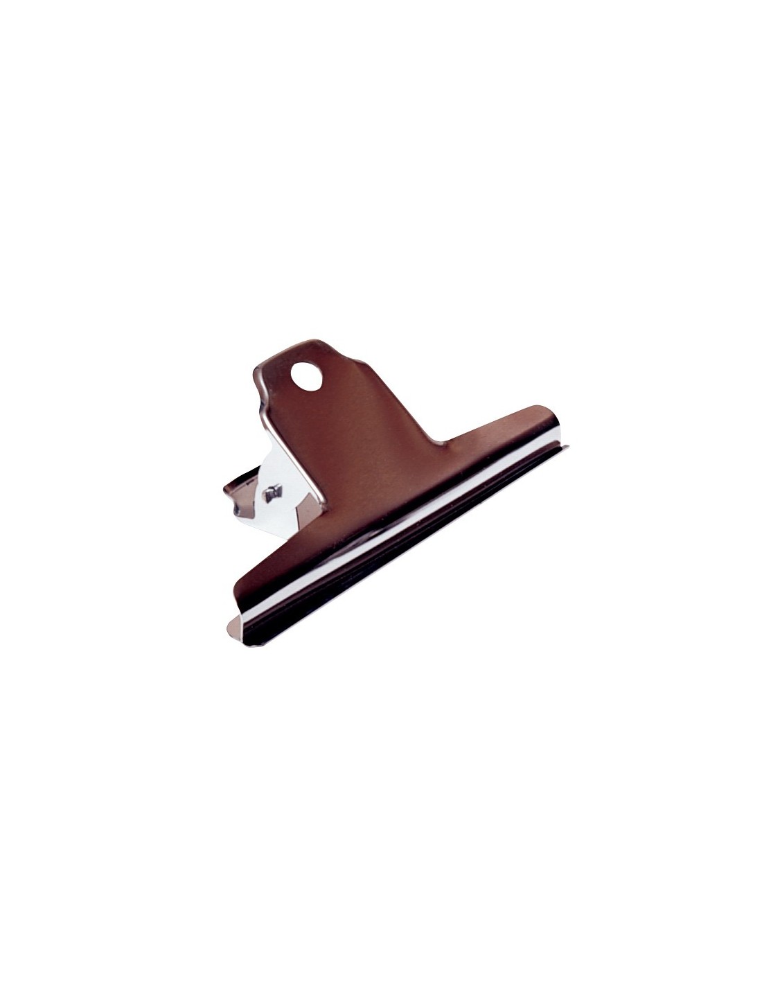 Pinza sujetapapeles metálica con agujero para colgar. Cromada.