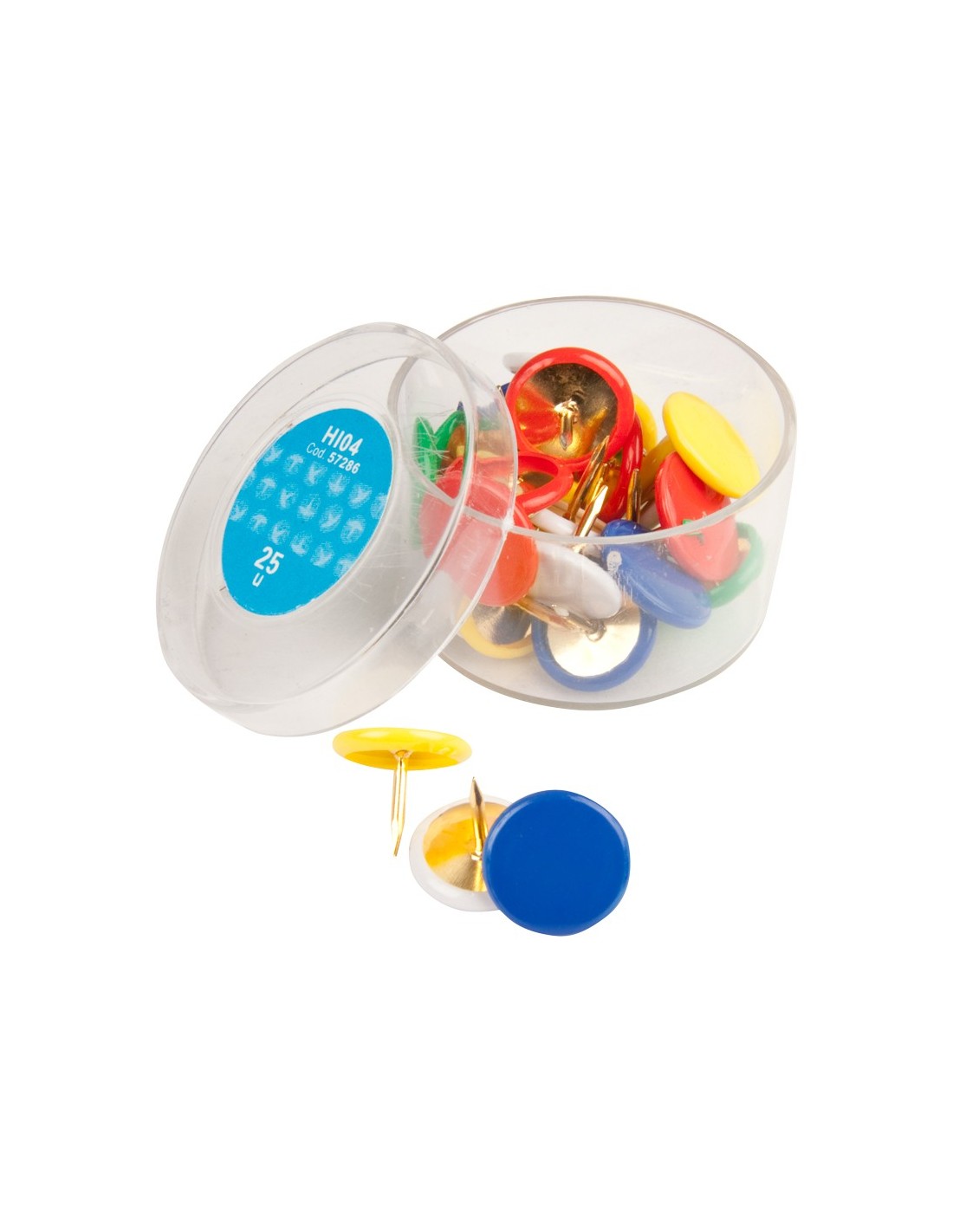 Plastificadas. Diámetro de la cabeza: 10 mm. Colores surtidos. La caja de 25 unidades.