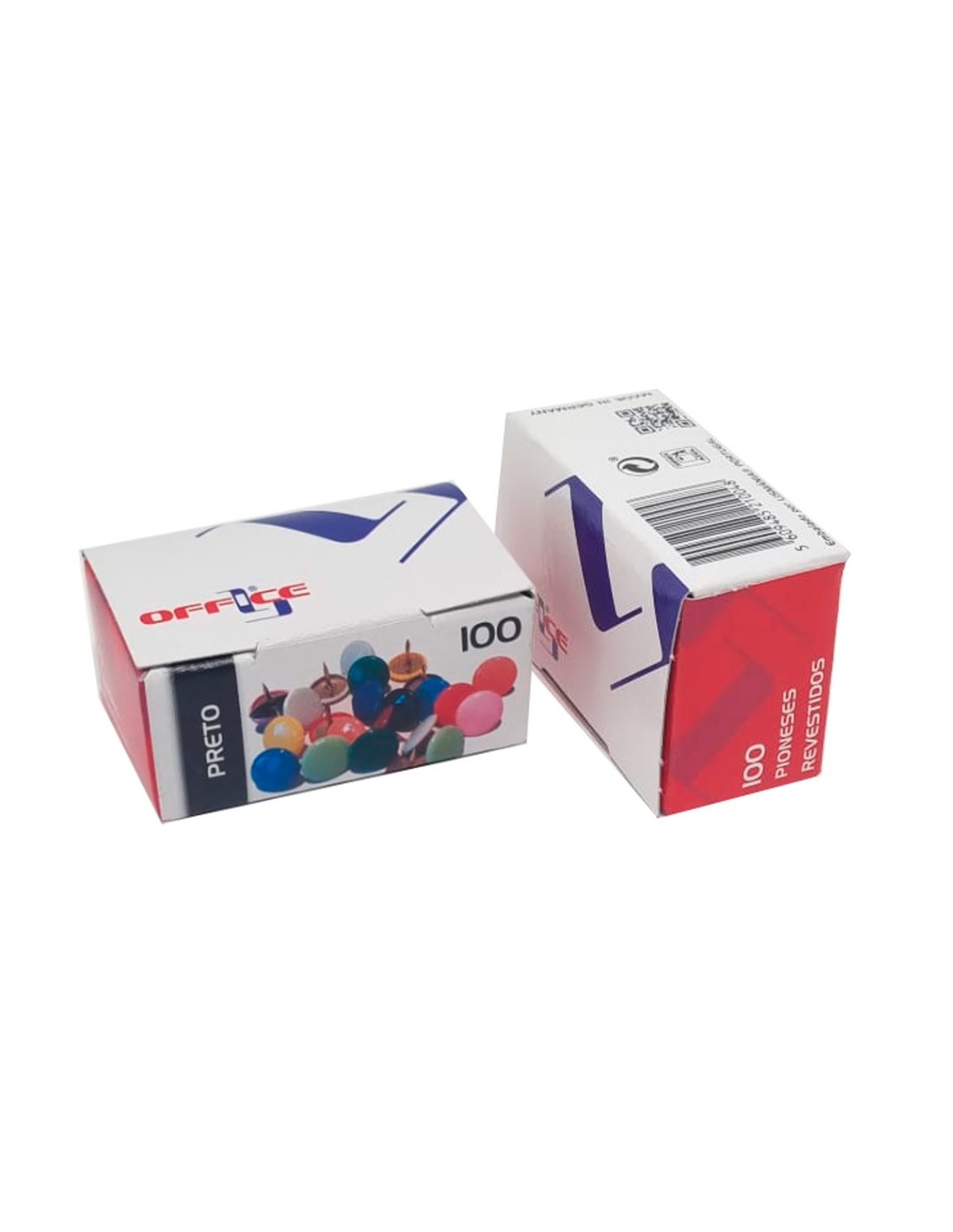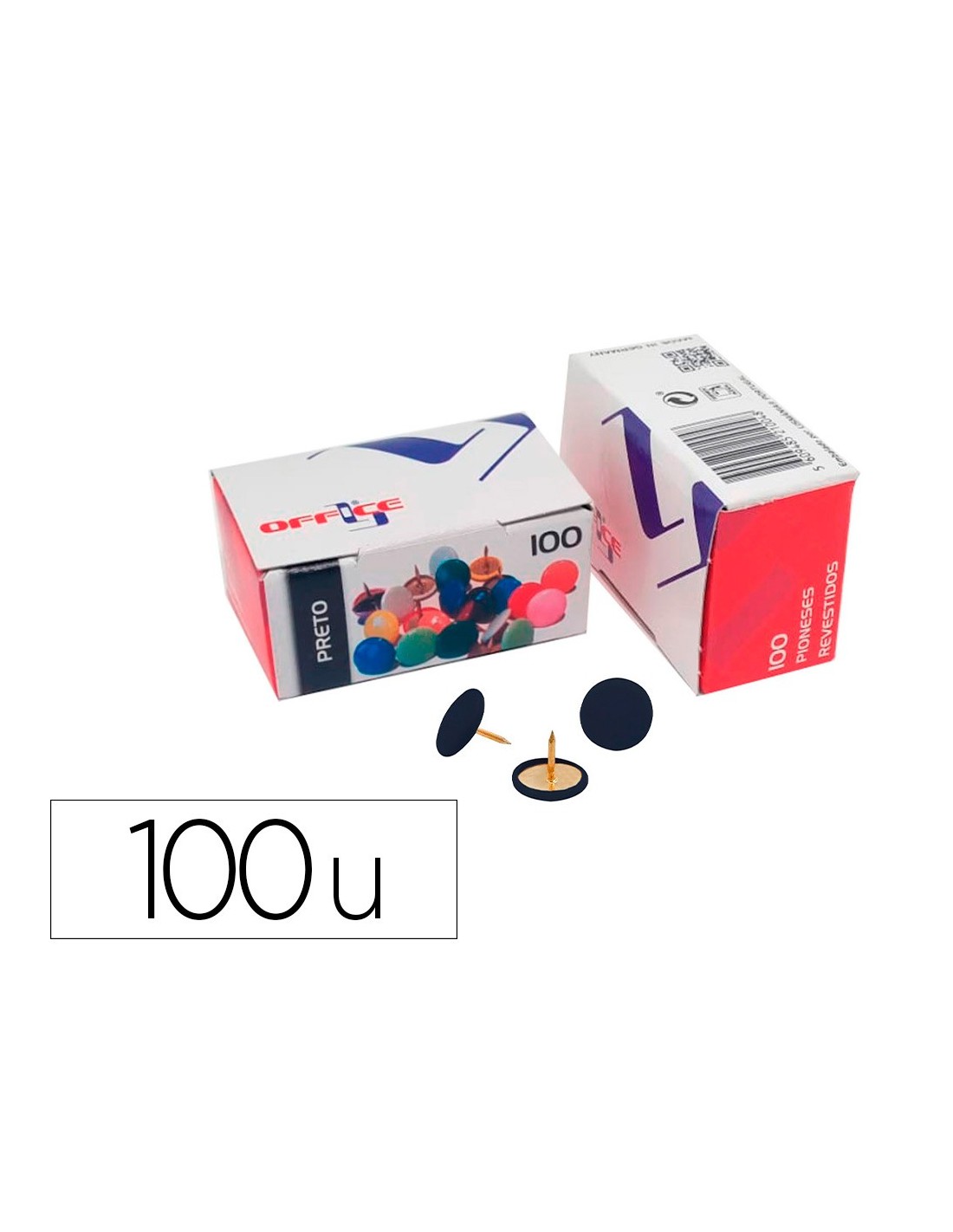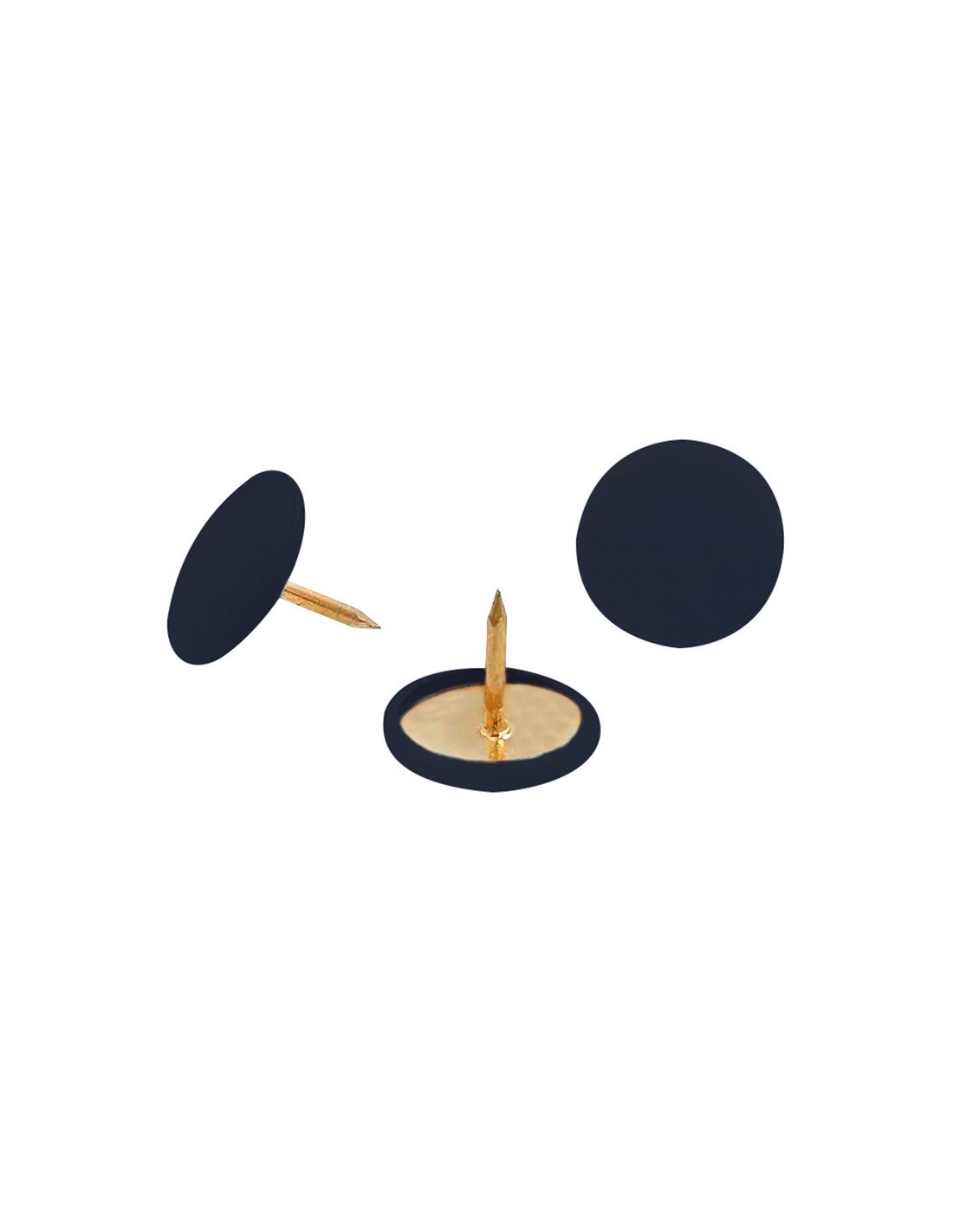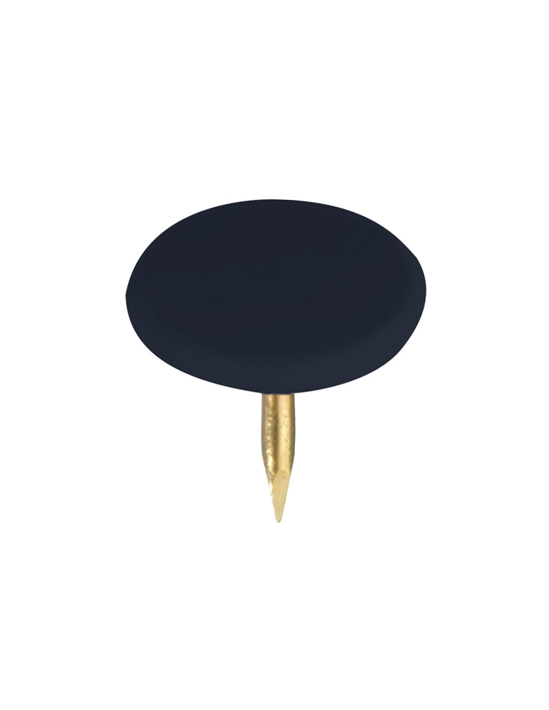 Chinchetas recubiertas de plástico con cabeza plana. Diámetro de la cabeza: 9 mm. Longitud 8 mm. Color negro. Caja de 100 unidades.