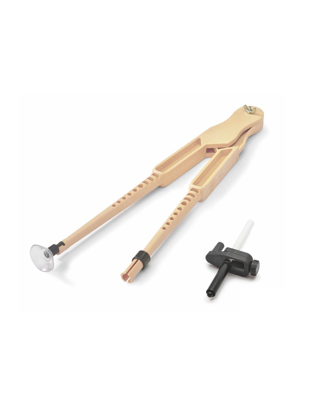 Uso escolar, para pizarra. Fabricado en plástico imitación madera. 100% reciclable. Con adaptador para tiza en un extremo y ventosa en el otro para un apoyo más estable. Altura: 42 cm. Circunferencia: 31 cm.