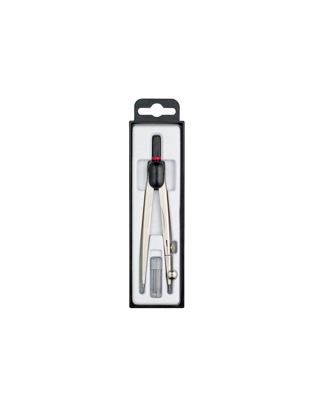 Compás compacto con cómodo agarre con puntos. Se entrega en estuche e incluye un tubo de minas. El radio se ajusta fácilmente y permanece estático gracias a la fricción de la cabeza del compás. Longitud 13 cm. Circunferencia: 32 cm.