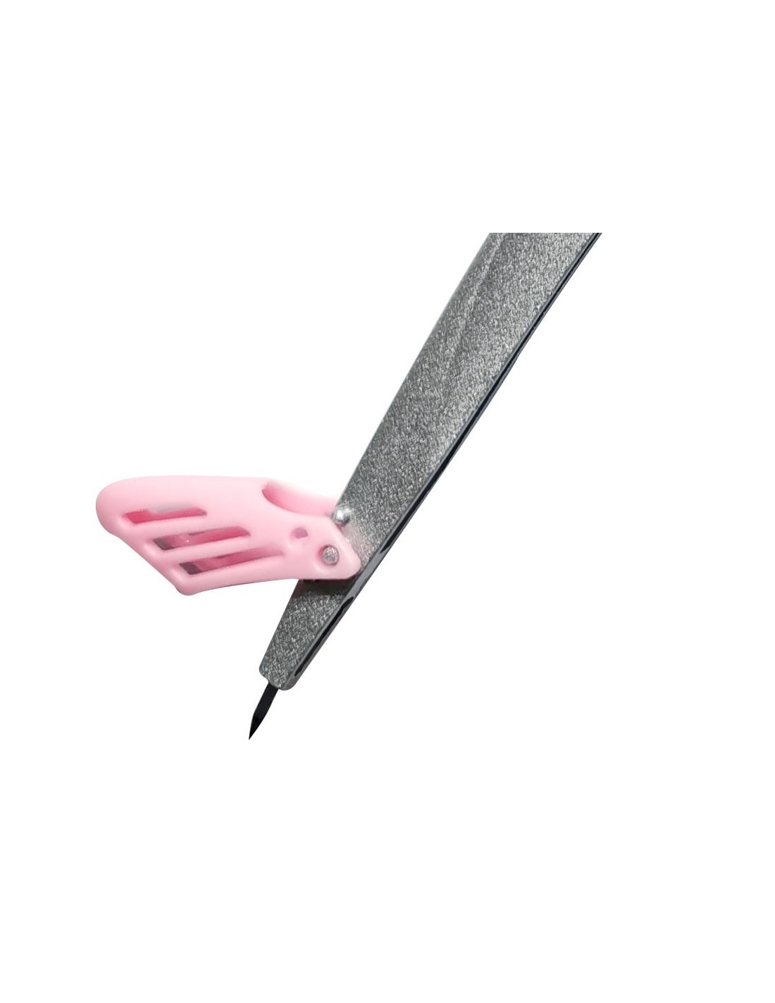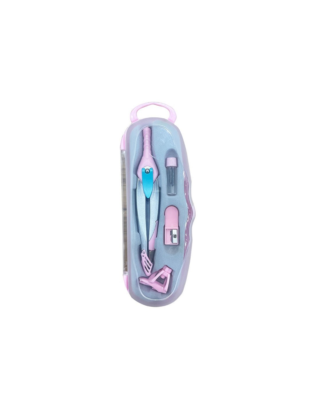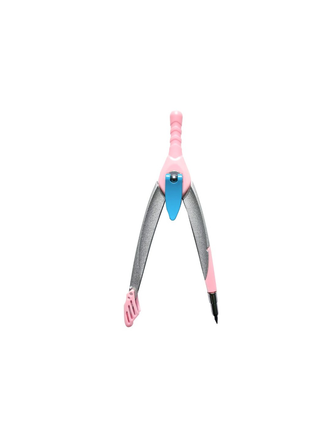 Compás con sistema de bloqueo de los brazos para trazar los círculos. Contiene abrazadera universal y tubo de minas. Con protector de punta. Color Rosa Claro.