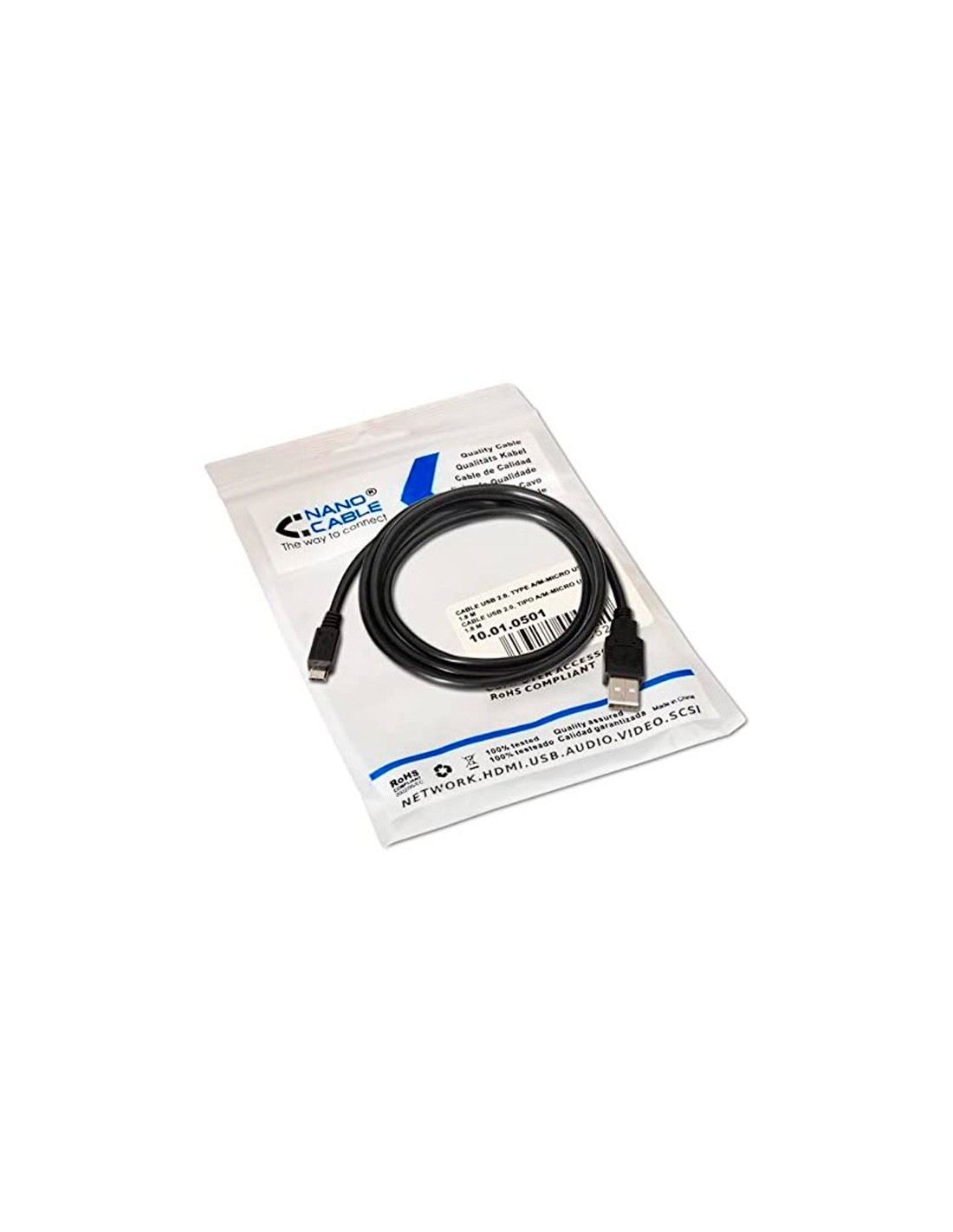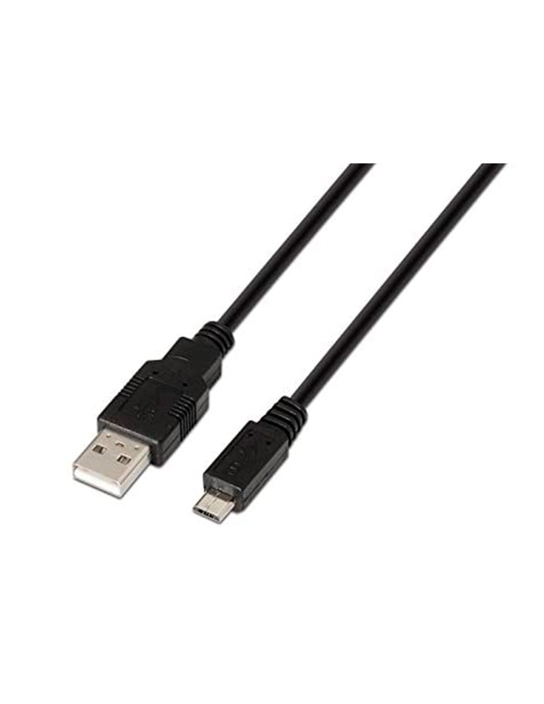 Cable USB 2.0 con conector tipo A macho en un extremo y micro USB tipo B macho en el otro. Se utiliza principalmente para móviles y cámaras digitales. Normativas: RoHS. Test de funcionamiento: 100% testado. Color negro.