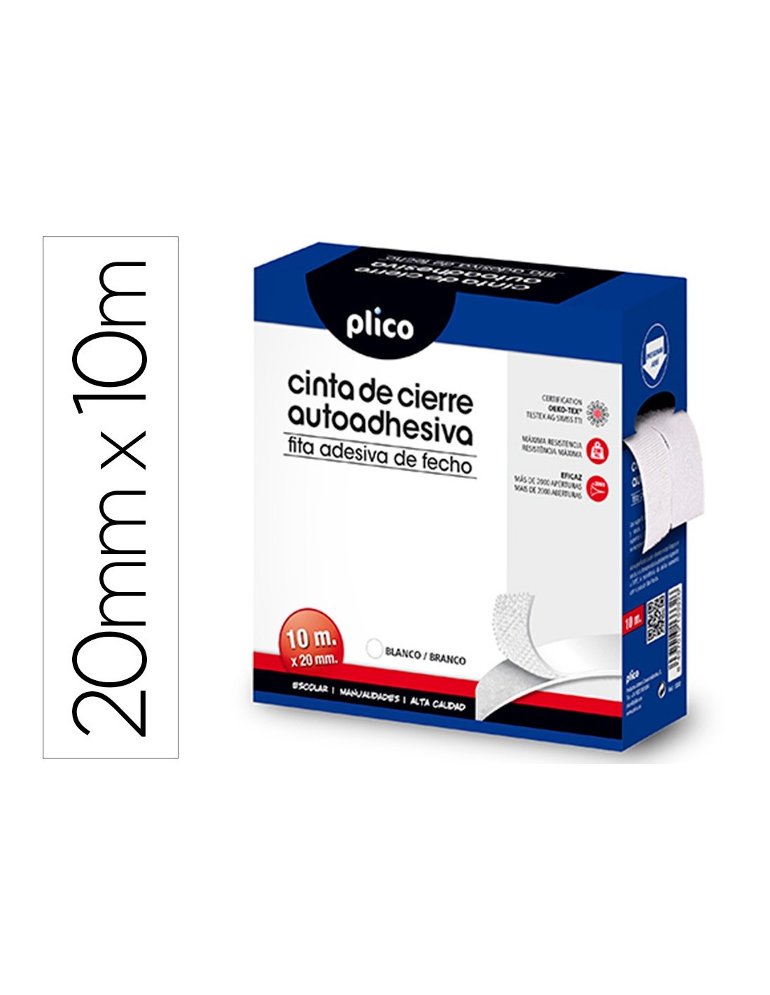 CINTA DE CIERRE ADHESIVA PLICO VELCRO BLANCO 20MM X 10M 13330