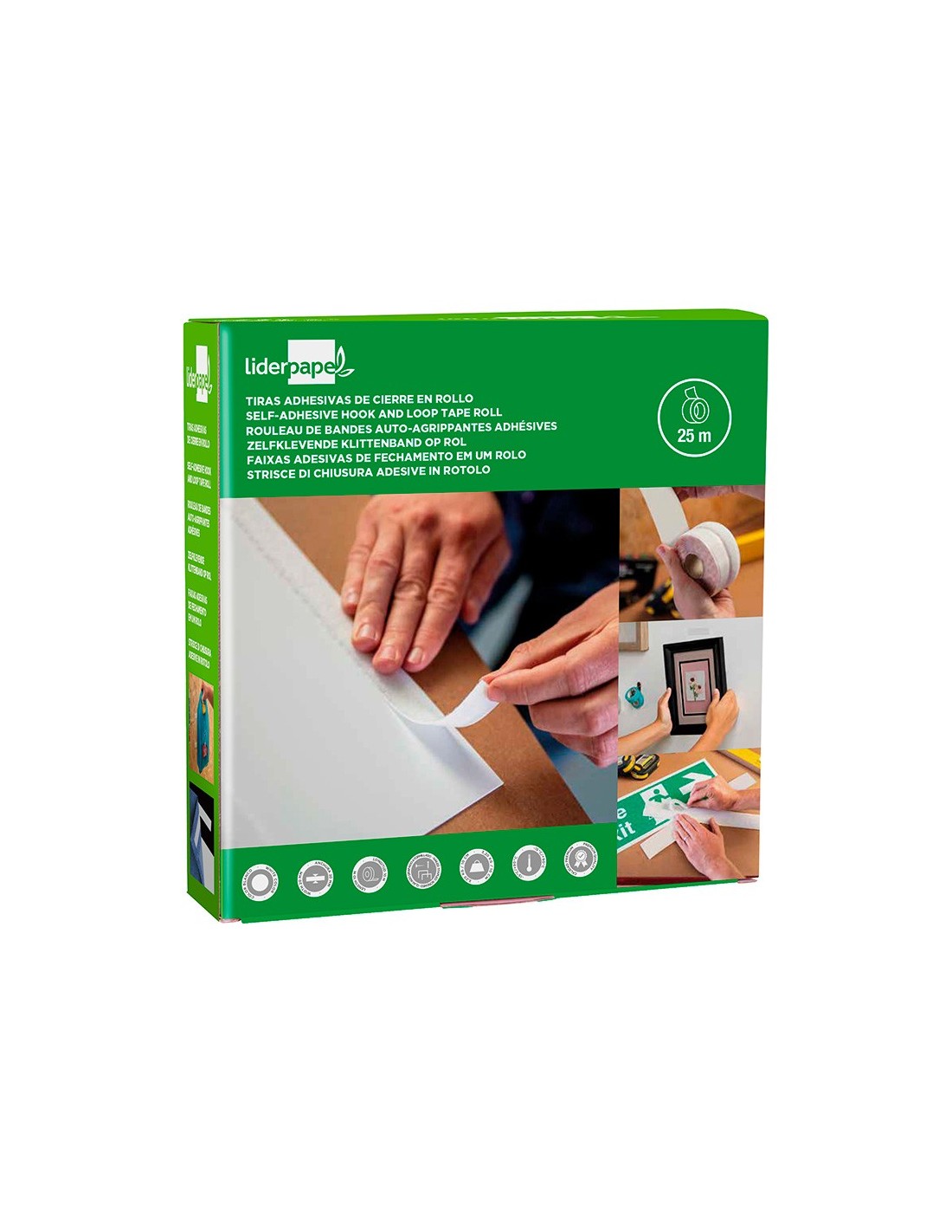 Rollo de velcro en cinta de gran adhesividad y resistencia. Muy útil para manualidades y uso escolar, ya que puede ir cortándose según necesidad. Color blanco. Medidas: 20 mm x 25 mt.SOPORTA 3,20 KG/10CM.