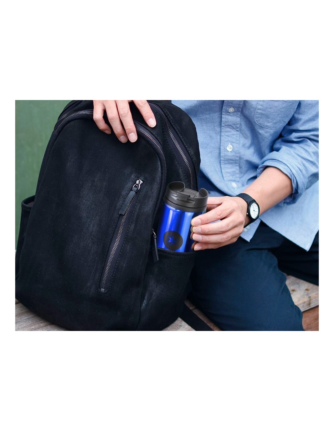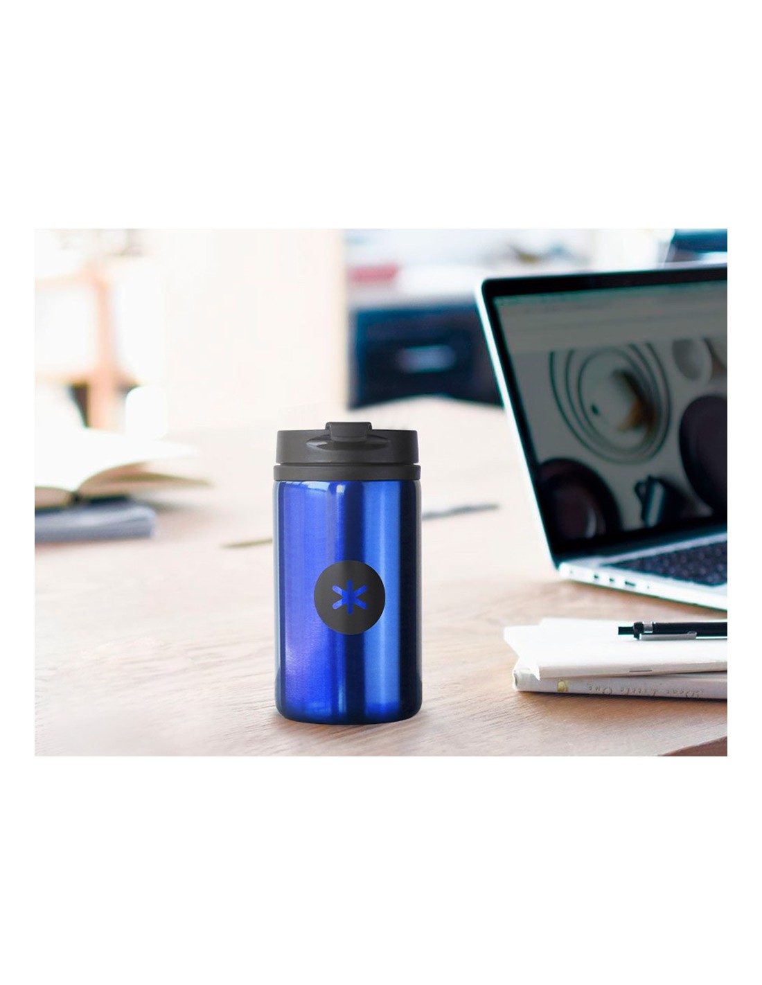 Vaso de acero inoxidable de 290 ml de capacidad con cuerpo en vivos colores de acabado brillante. Con tapa dosificador de seguridad y base acolchada de suave espuma. Presentado en caja individual.