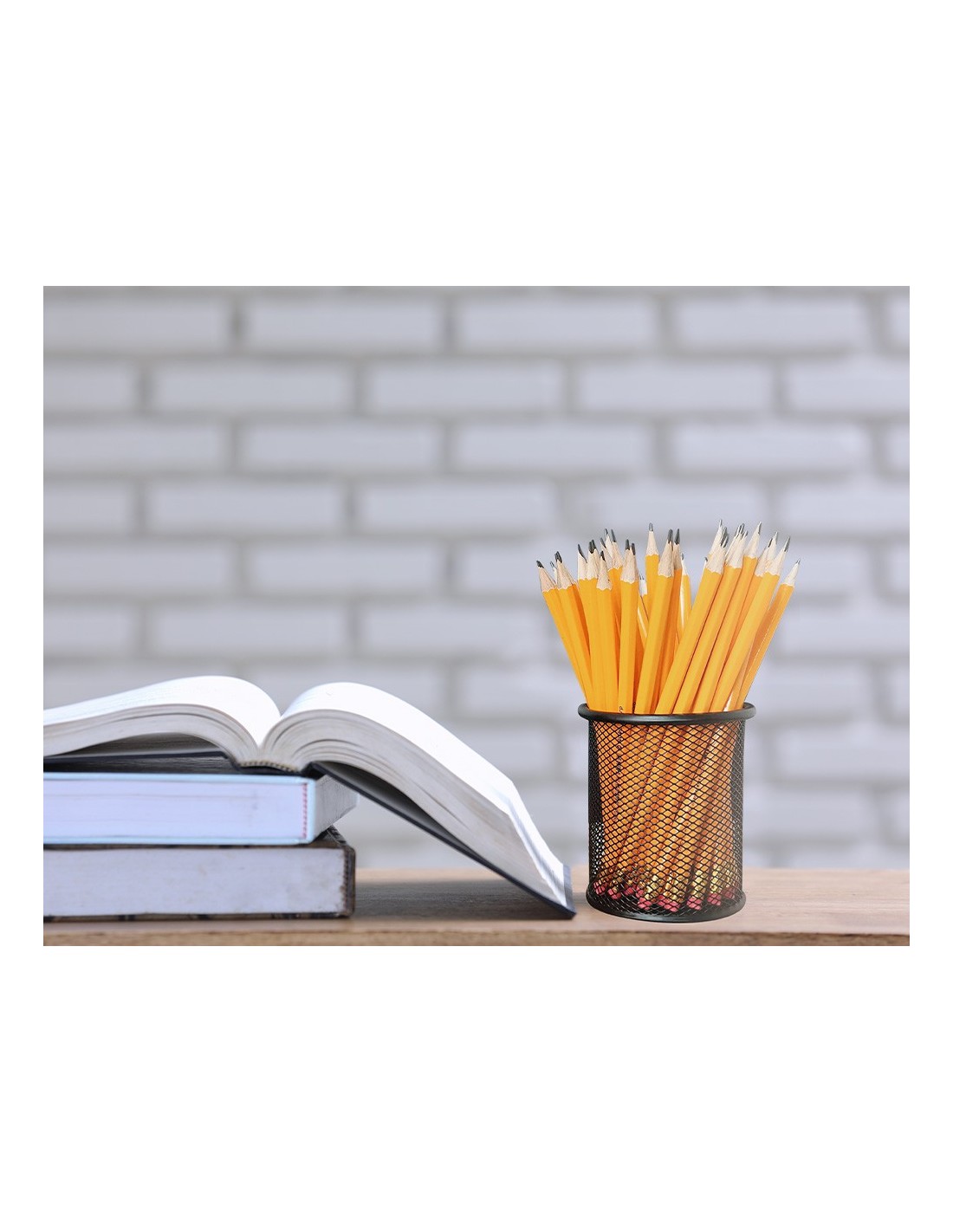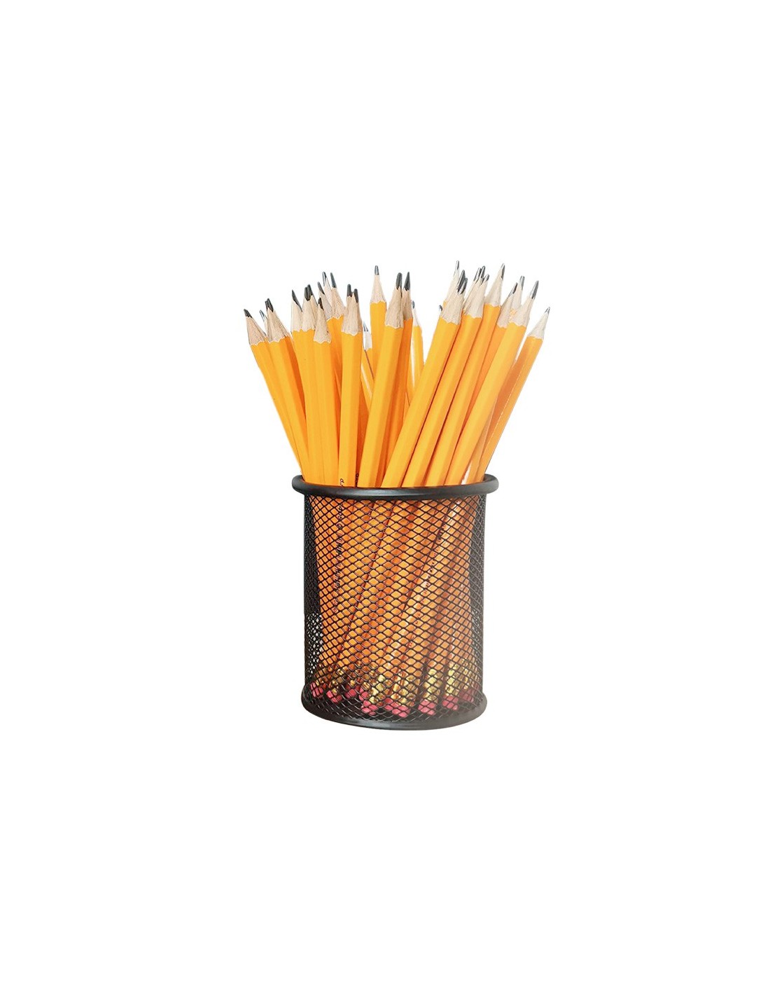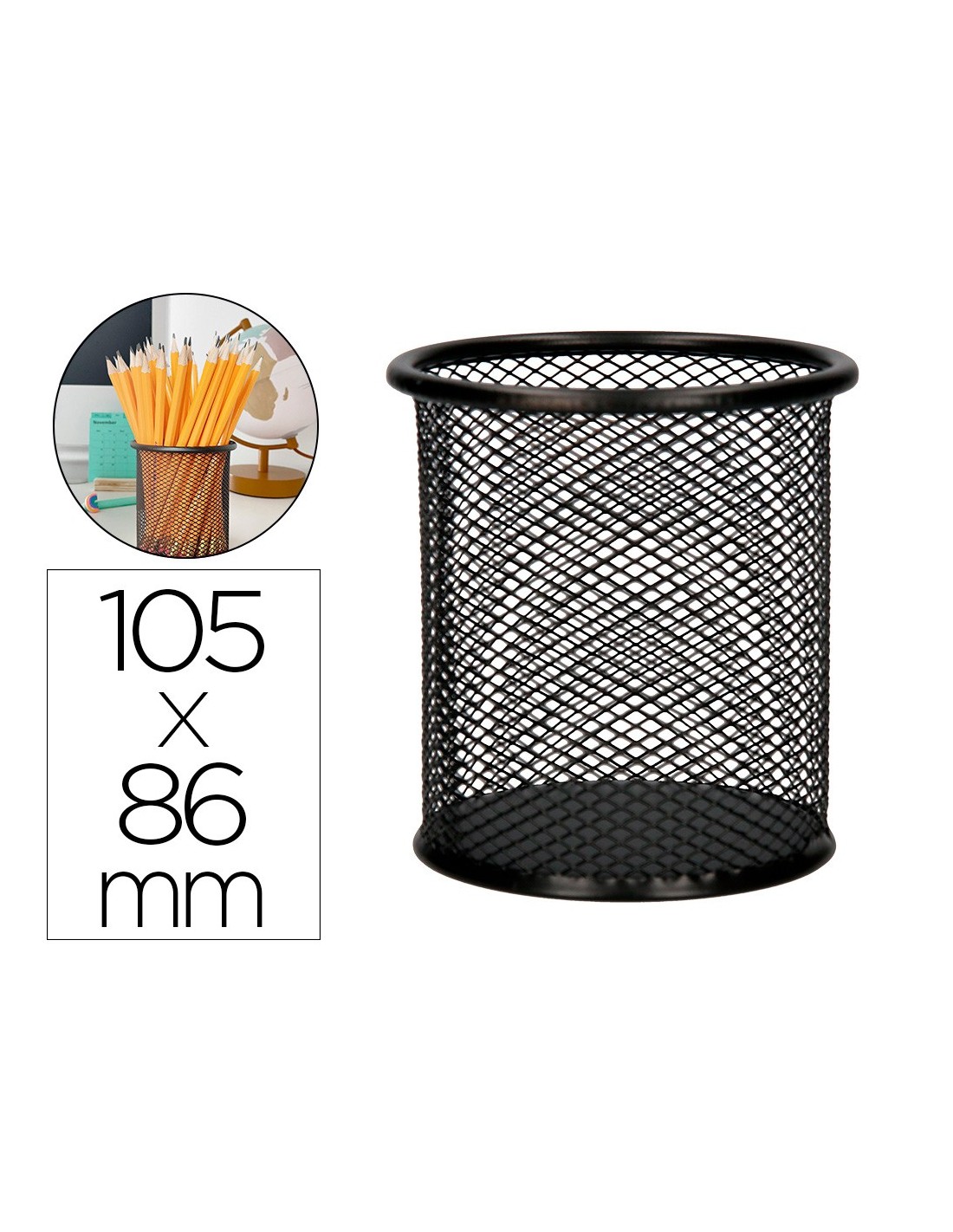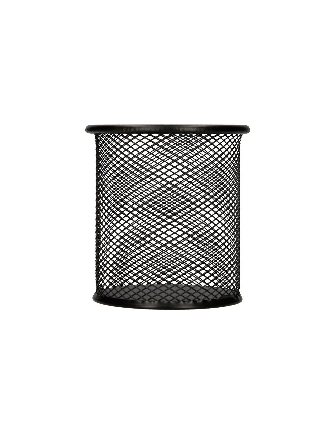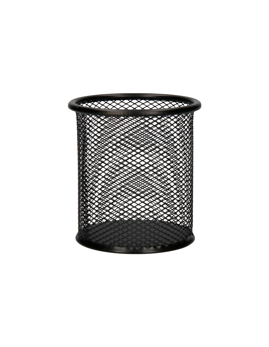 Cubilete redondo para alojar bolígrafos, lápices, rotuladores... Metálico de rejilla. No incluye accesorios. Medidas: Ø86 x 105 mm.