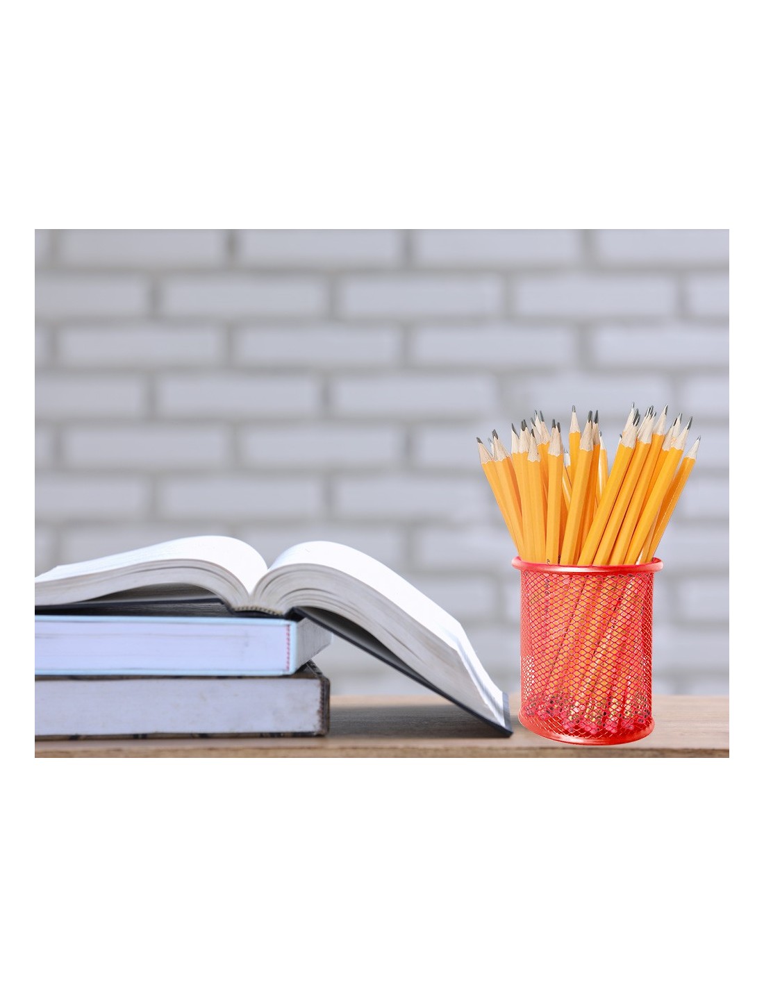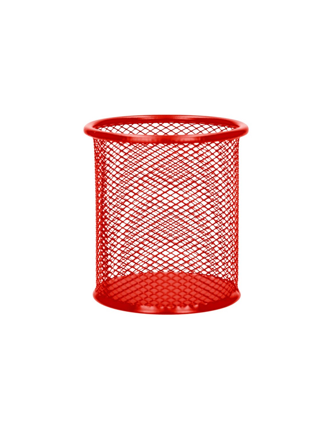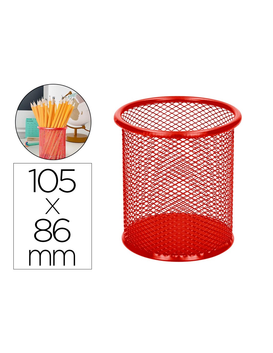 Cubilete redondo para alojar bolígrafos, lápices, rotuladores... Metálico de rejilla. No incluye accesorios. Medidas: Ø86 x 105 mm.