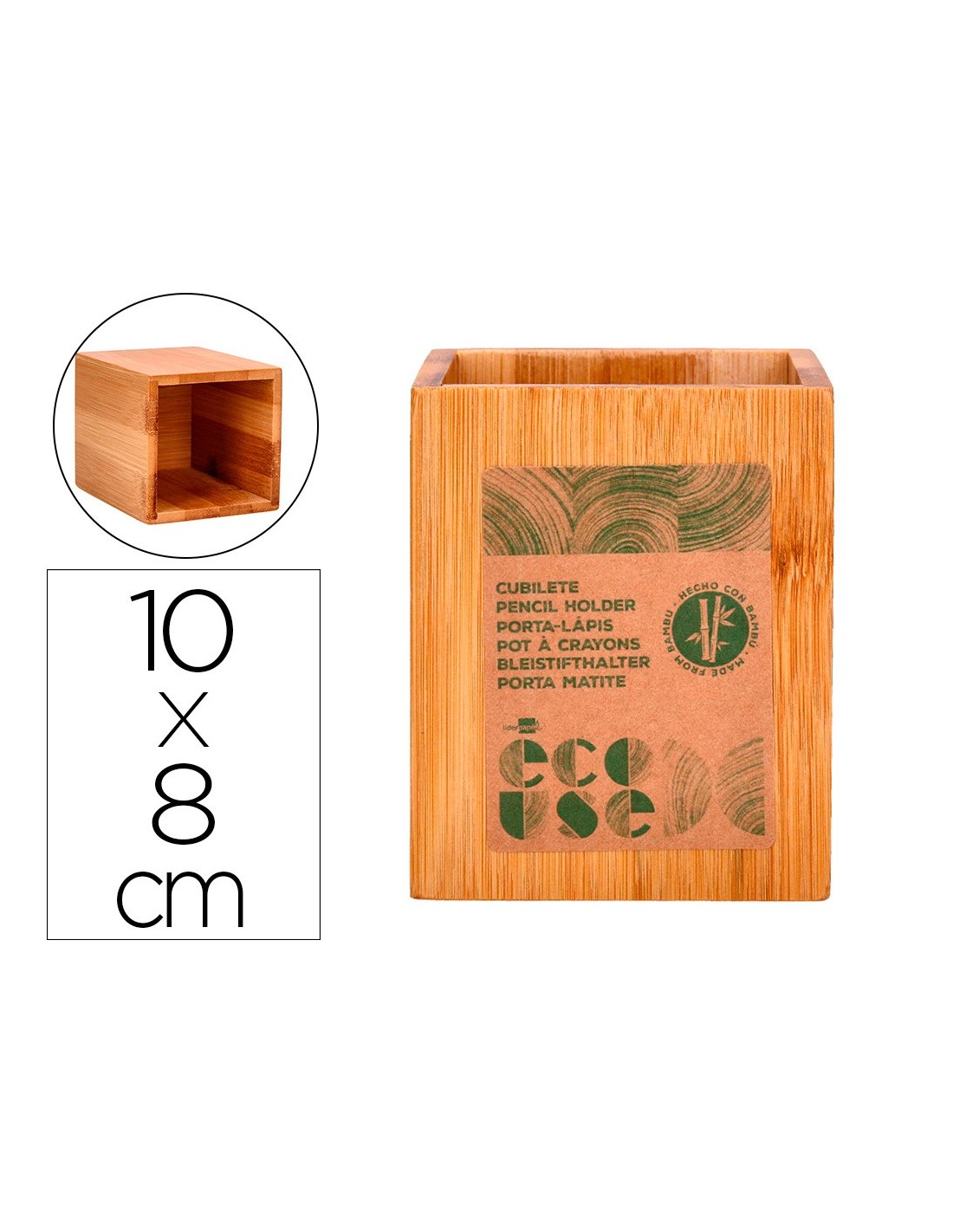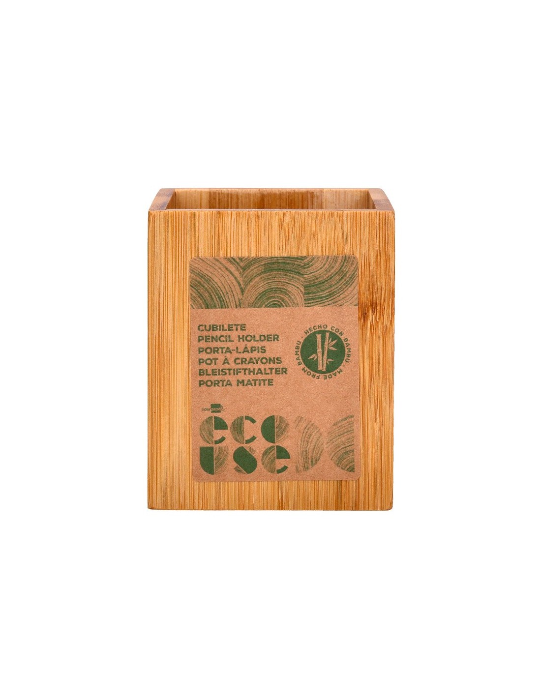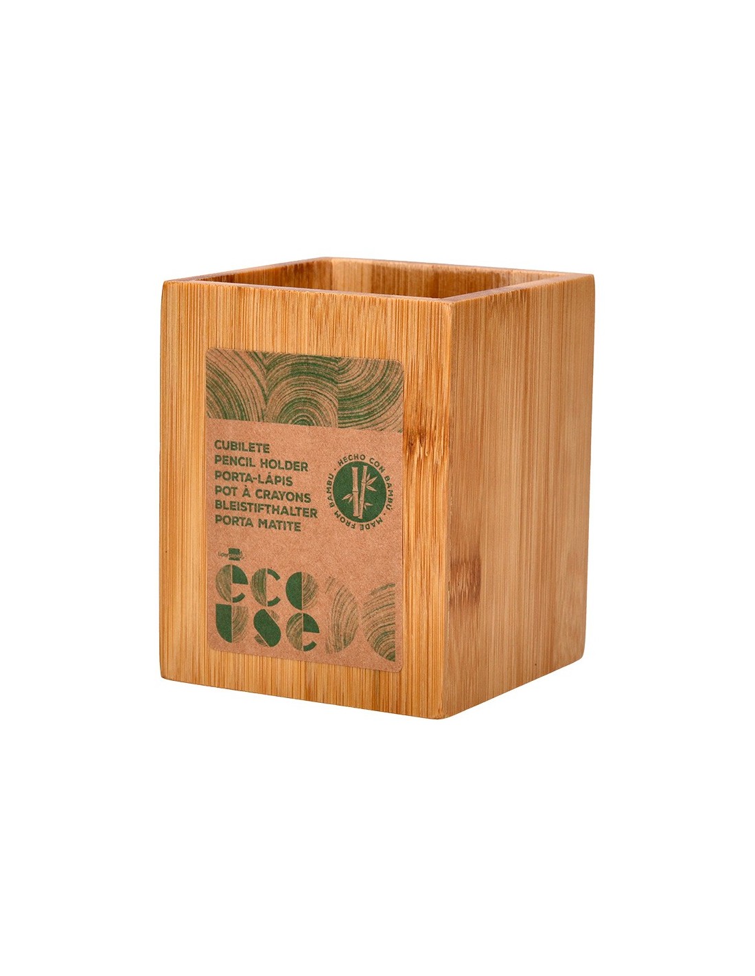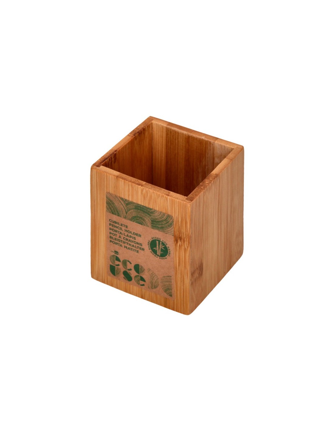 CUBILETE PORTALAPICES BAMBU 100% NATURAL ECOUSE CUADRADO 80X80X100MM