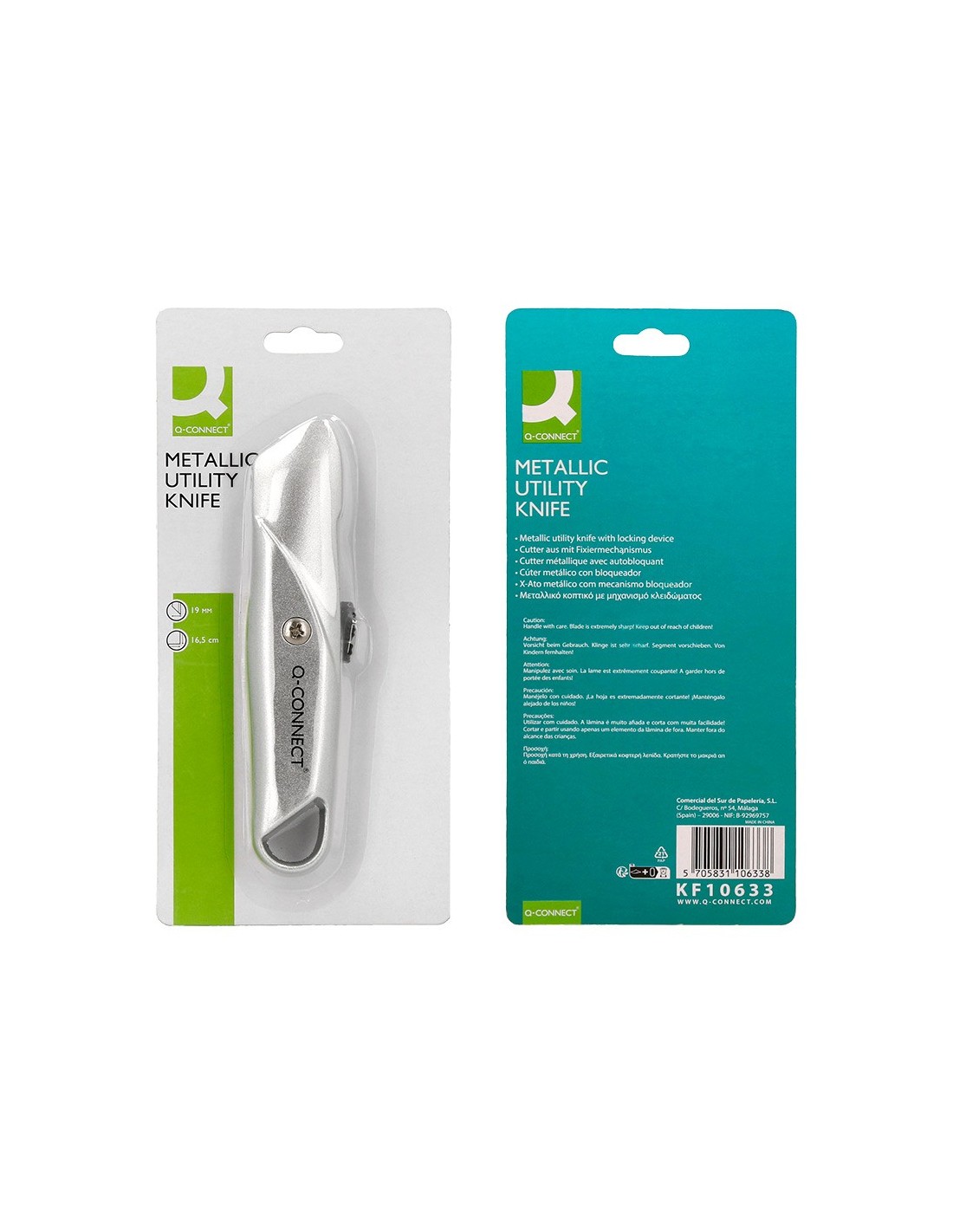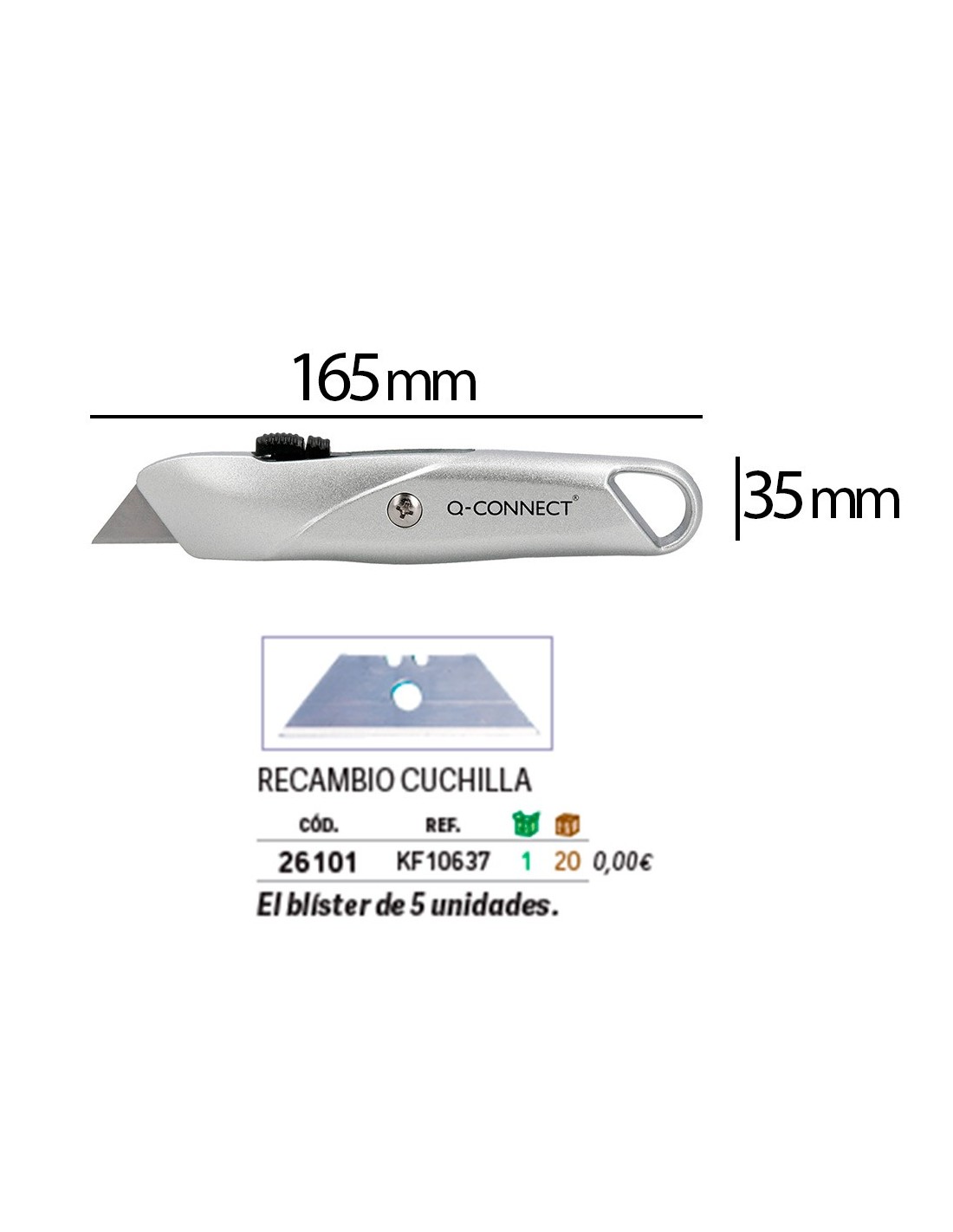 Con mecanismo de bloqueo. Con hoja ancha y de gran resistencia, profesional. Cuerpo metálico gris. Cuchilla de 18 mm de ancho. Longitud: 165 mm. El blíster de 1 unidad.