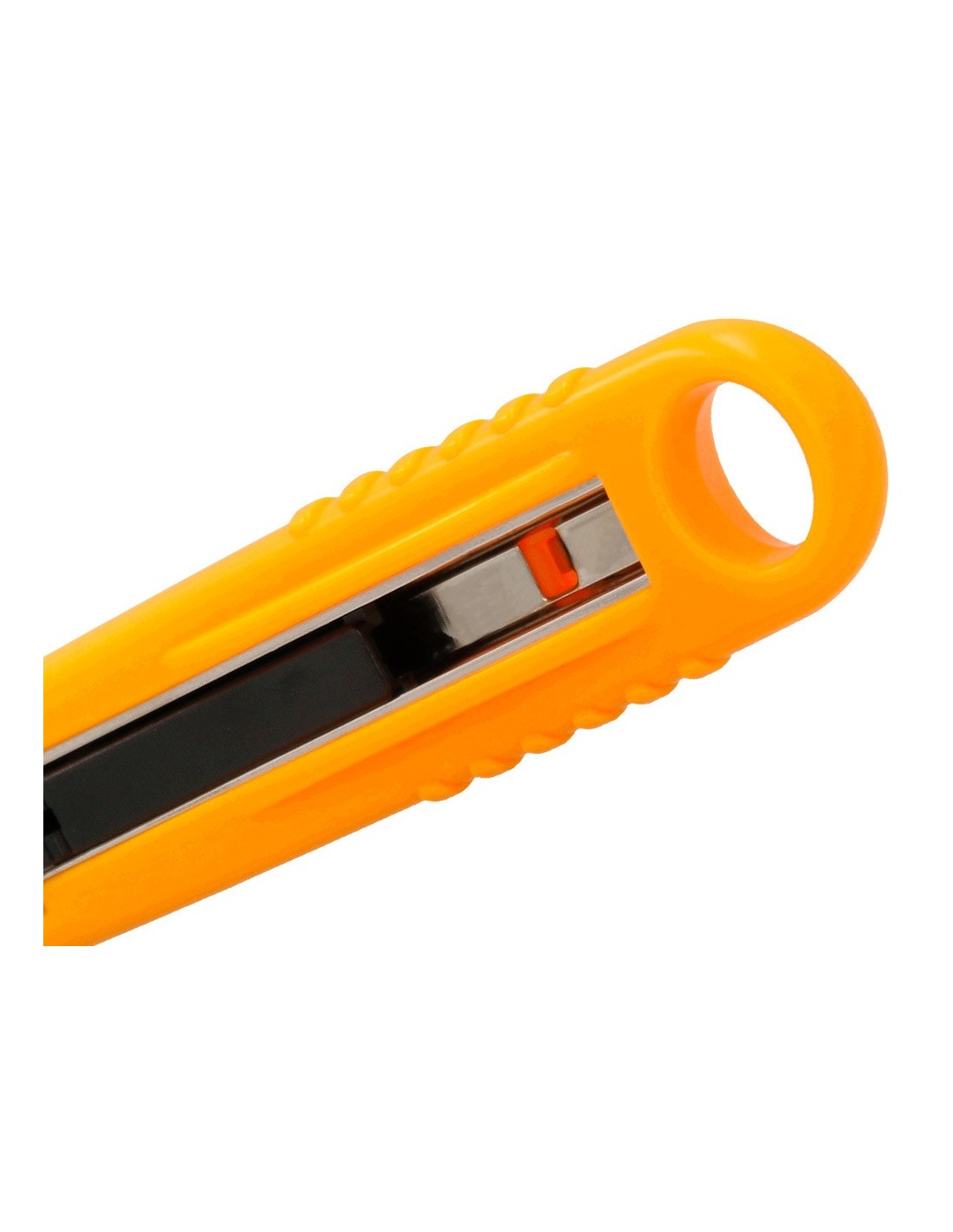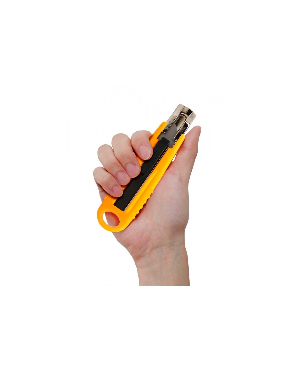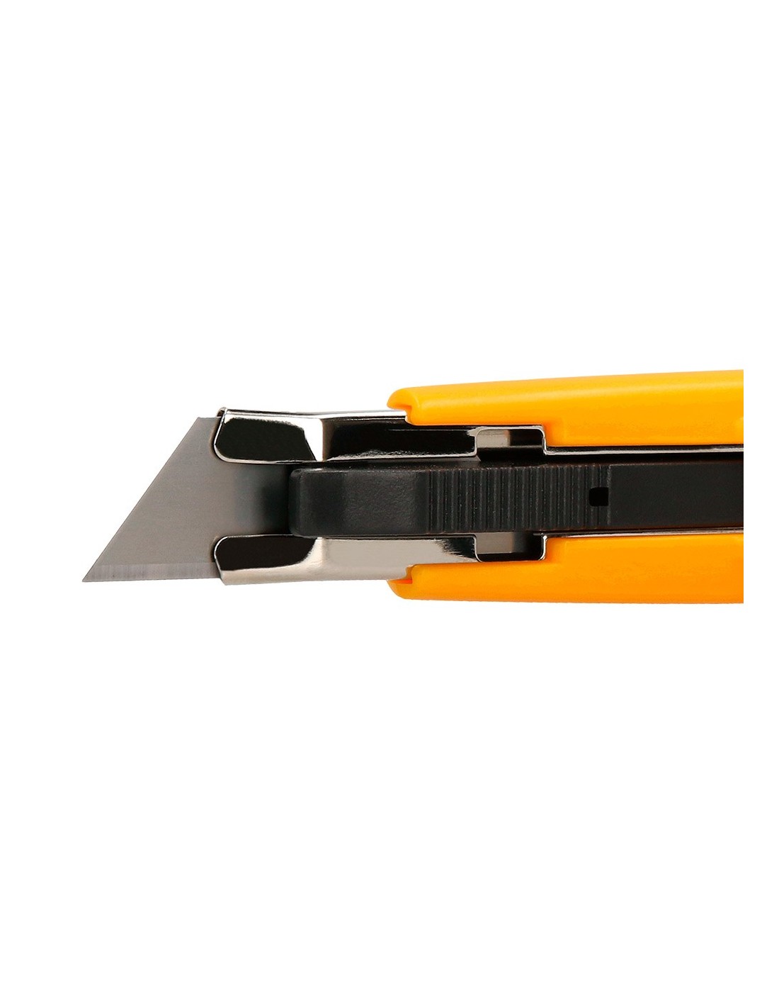 Fabricado en plástico y acero. Cuchilla retráctil de seguridad: la cuchilla solo sale al exterior cuándo se pulsa el mecanismo negro y vuelve al interior en el momento en que se deja de presionar, para así evitar que la cuchilla quede en el exterior cuando no se esté usando. Cuchilla de acero de 18 mm de ancho. Color amarillo. Recomendado pARA GRAN PÚBLICO Y PROFESIONales. Longitud: 140 mm. El blíster de 1 unidad.