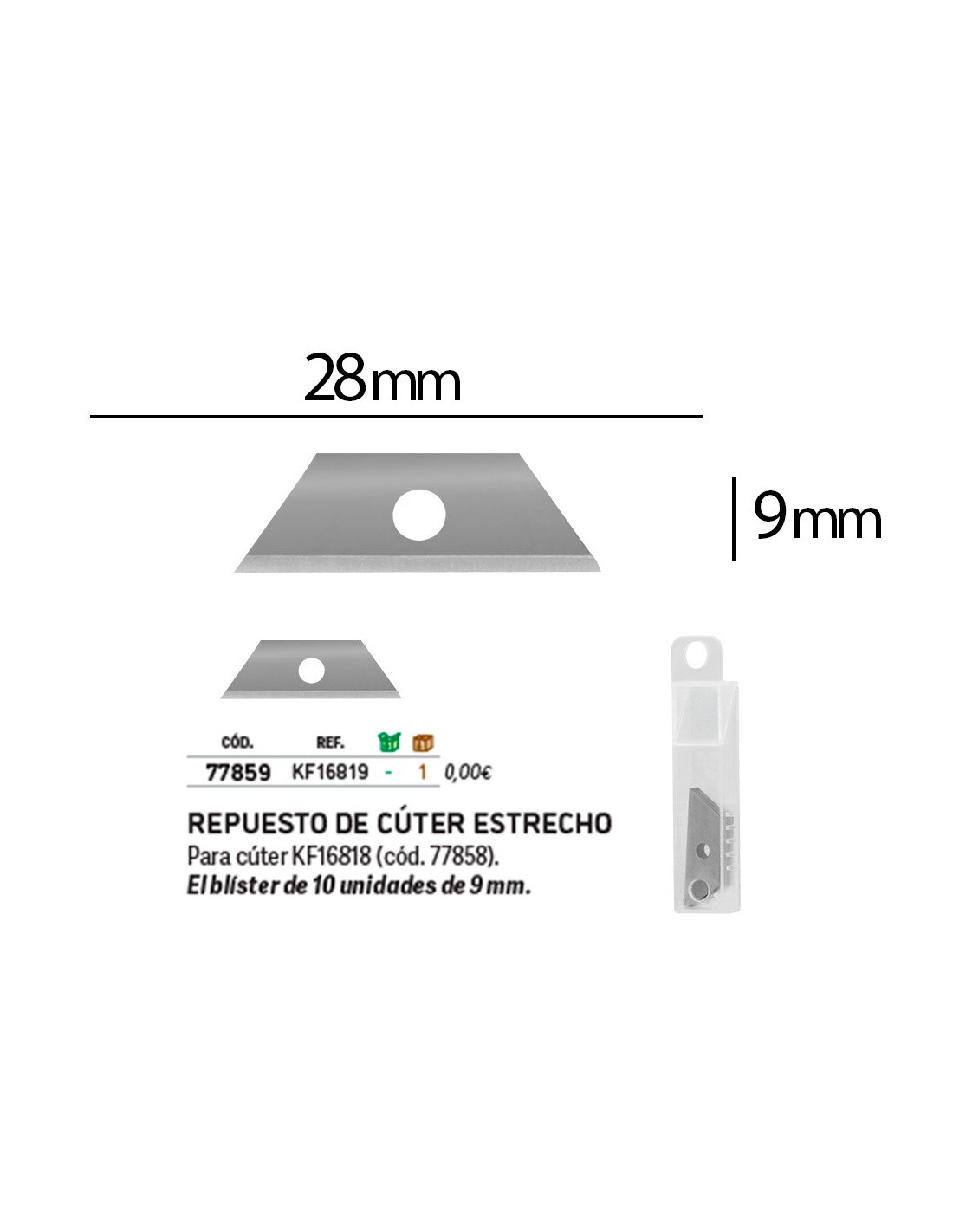 Para cúter KF16818 (cód. 77858). El blíster de 10 unidades de 9 mm.
