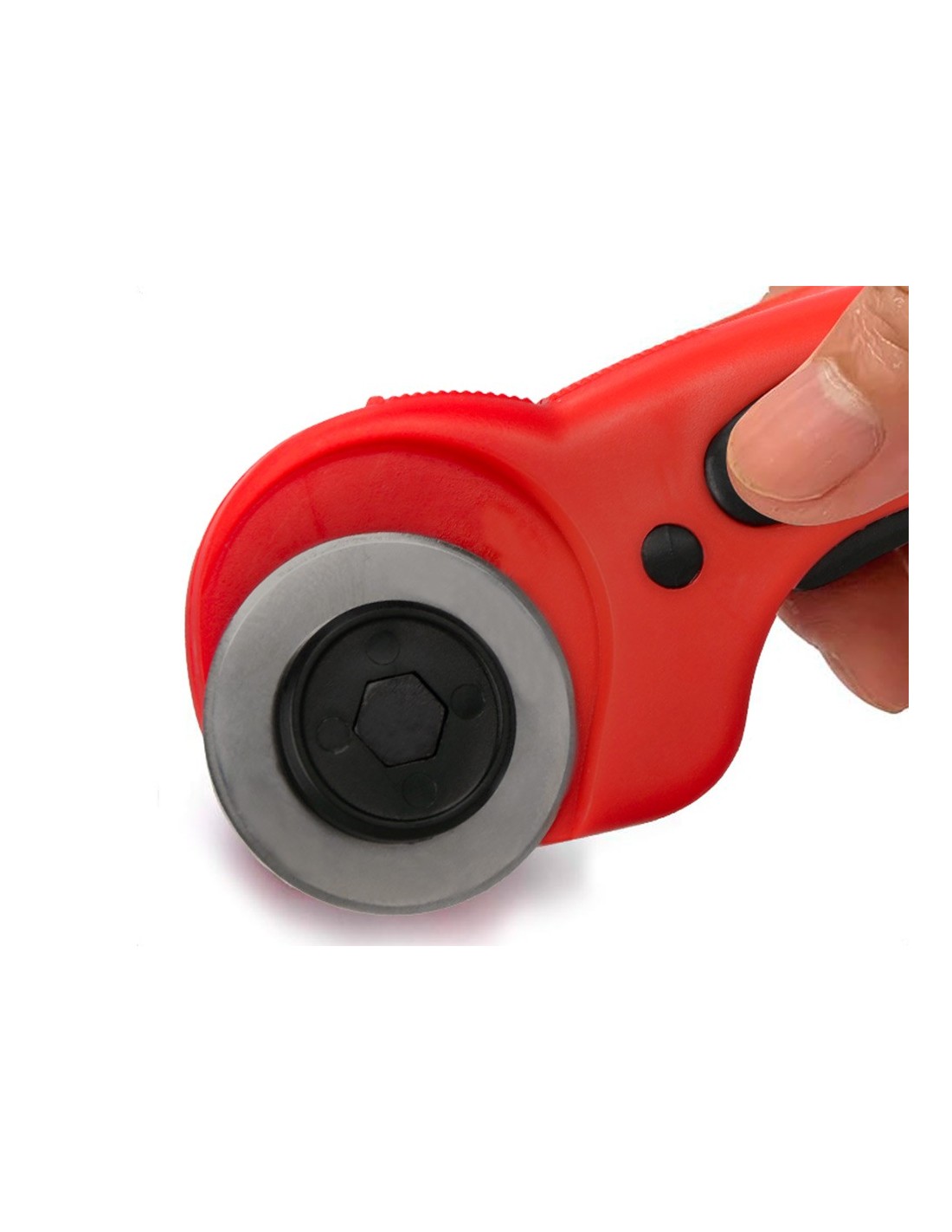 Un cúter rotatorio es una herramienta de corte que se utiliza para cortar materiales como papel, tela, cuero, vinilo, etc. La hoja de corte es circular y se puede girar para obtener un corte limpio y preciso. El cúter rotatorio es especialmente útil para cortar curvas y formas complejas.