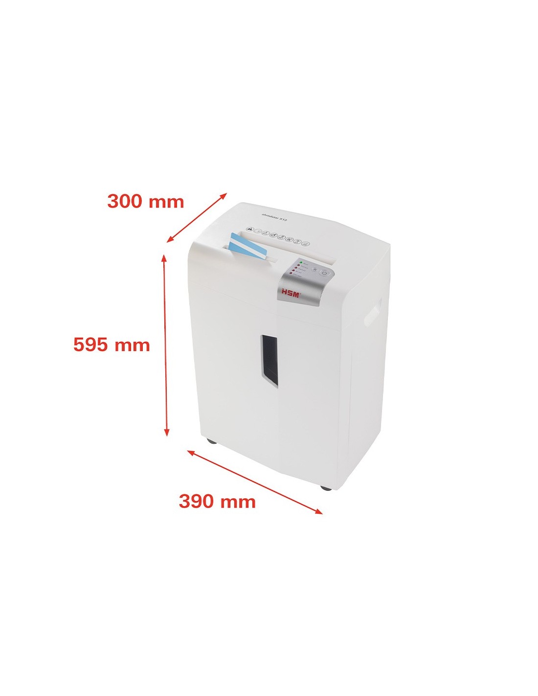 Funcional, moderna y silenciosa. Capacidad de corte: 13 hojas en partículas de 4 x 37 mm. Nivel de seguridad P-4. Papelera de 23 litros. Destruye grapas, CD, clips y tarjetas de crédito. Función antiatasco de papel. Indicador de nivel. Panel de mando intuitivo. Inicio/paro automático con célula fotoeléctrica. Vaciado fácil. Ancho de entrada: 230 mm. Medidas: 390 x 595 x 300 mm. Peso: 12,5 kg.