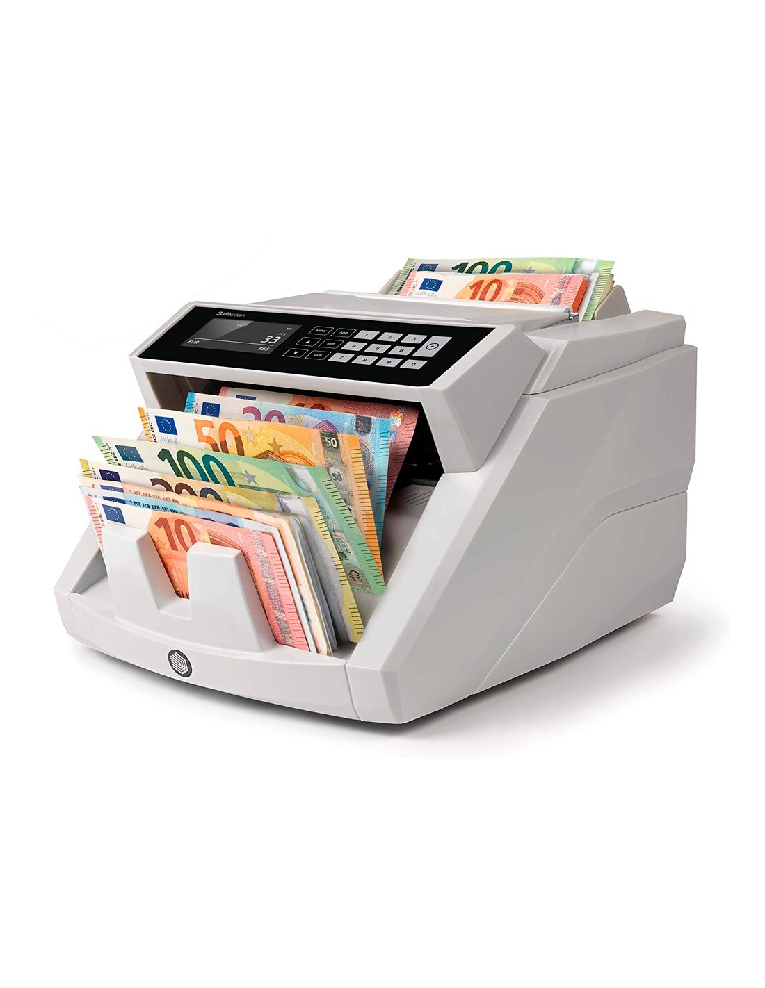 Cuenta y verifica hasta 1000 billetes por minuto. Cuenta billetes de euros mezclados. Verificación y conteo de EUR, GBP, USD, CHF, PLN, SEK, NOK. Detección de billetes falsos de 7 formas: UV, MG, MT, infrarrojos, color, tamaño y grosor. Capacidad de la tolva: 300. Capacidad del apilador: 220. Divisas predeterminadas: EUR, GBP, USD, CHF, PLN, SEK, NOK. Adecuado para la detección de los billetes actuales y nuevos. Conteo de valor de billetes y detección de billetes falsos para EUROS. 100% testado para Euro. Función de agregar: cuenta el importe total por denominación. Función de batch para crear fajos de cierta cantidades de billetes. Actualizaciones de divisas gratuitas. Medidas: 311 x 195 x 261 mm. Peso: 6,5 kg.