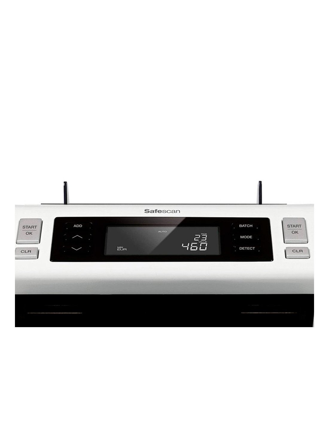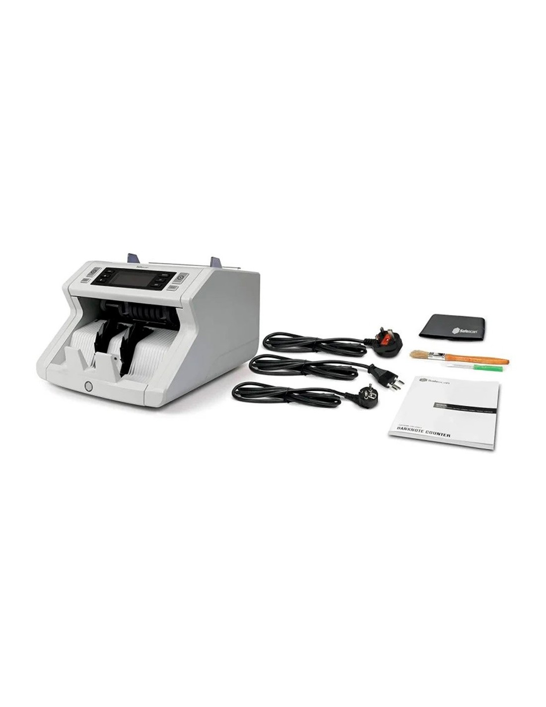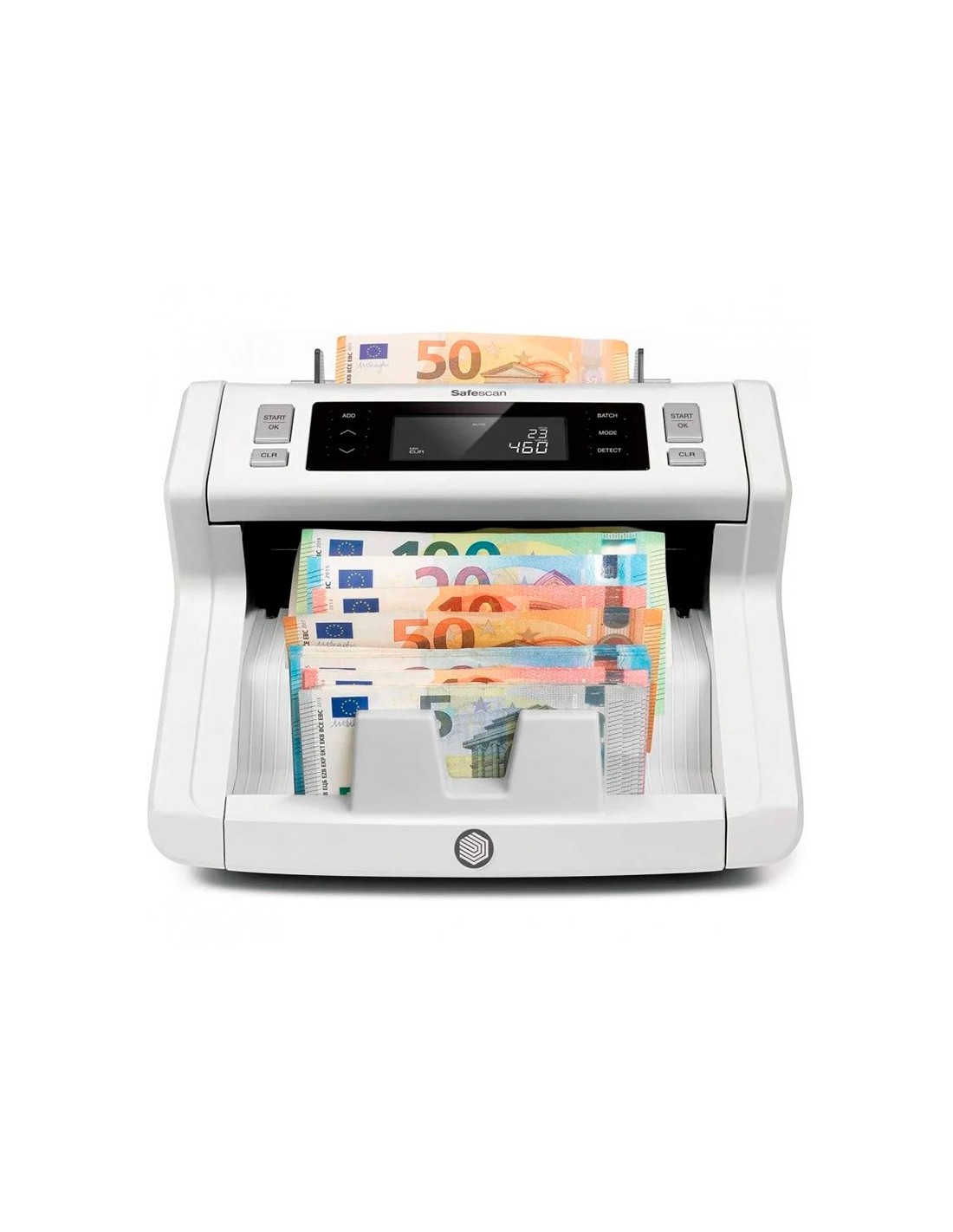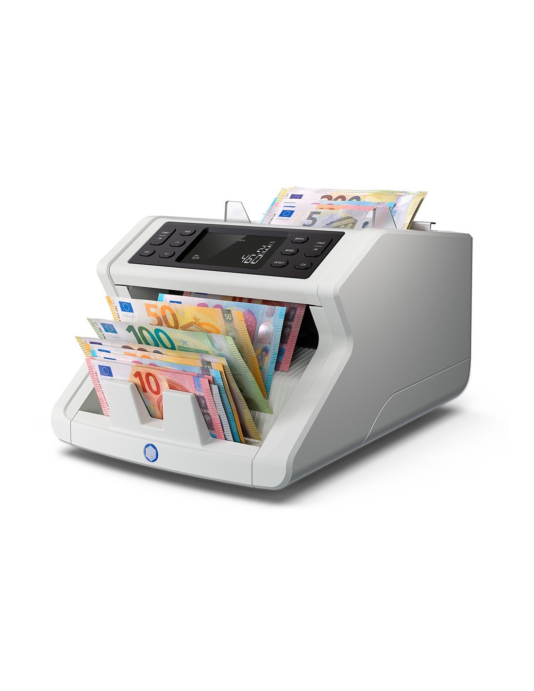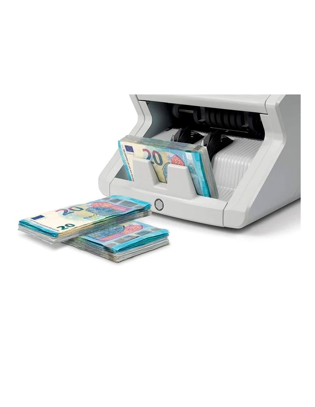 Cuenta billetes mezclados de euros y de libras esterlinas y billetes clasificados de todas las demás divisas. Cuenta hasta 1200 billetes por minuto. Verifica hasta cinco características de seguridad: UV, MG, color, tamaño y espesor. Emite una señal sonora y muestra una alarma visual cuando detecta un billete sospechoso. Inicio y parada automáticos cada vez que se coloca un fajo de billetes. Suma los resultados de varios conteos con la función ADD. Crea fajos de un número determinado de billetes con la función Batch. Capacidad de la tolva: hasta 300 billetes. Capacidad del apilador: 200 billetes. Actualizaciones gratuitas descargables mediante memoria USB. Alimentación: 220V ~ 240V. Dimensiones: 295 x 250 x 184 mm. Peso: 6,2 kg.