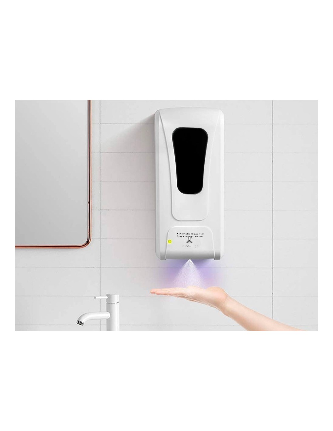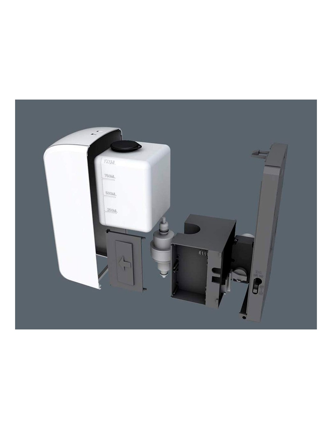 Apto para jabón de manos y gel hidroalcohólico. Fabricado en ABS. Puerta con cerradura y sensor con luz de induccion que detecta los movimientos. Funciona con 4 pilas nº 5 (pilas no incluidas). Capacidad: 1 litro. Color blanco/negro. Medidas del dispensador: 130 x 115 x 27 mm. Medidas del soporte: Ø360 mm x 1010 + 510 mm.