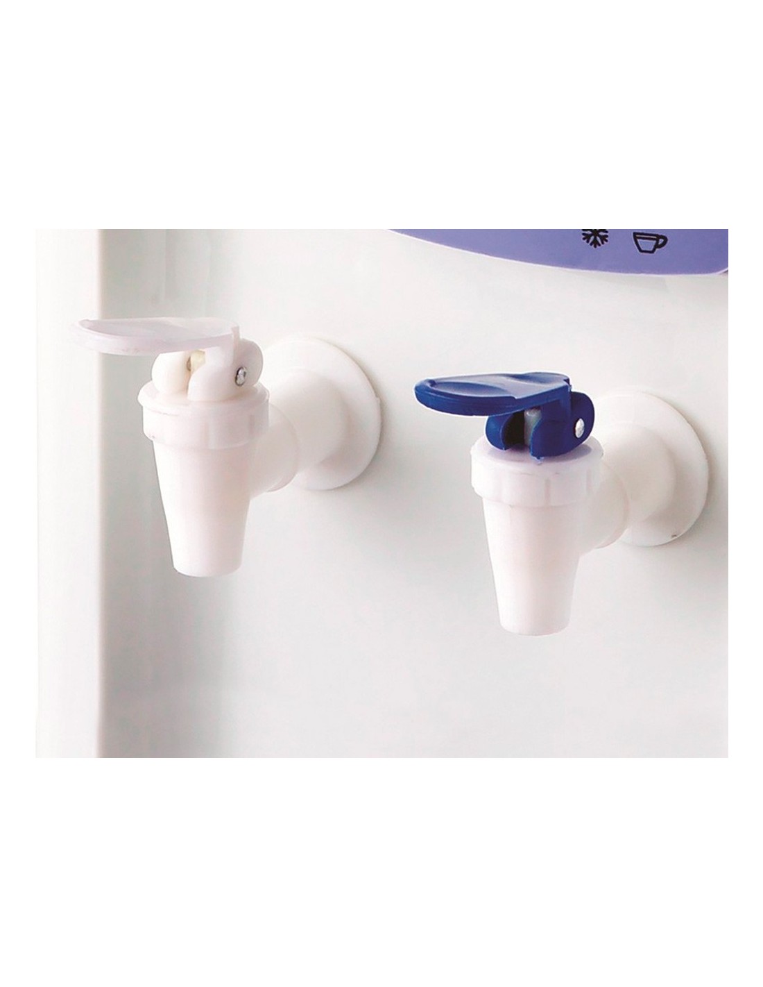 Dispensador de agua doméstico. Cómodo, limpio y fácil de rellenar. Proporciona agua fría y del tiempo. Incluye depósito exterior para agua de 7 l. Enfría el agua hasta 8-10°C. Incluye bandeja recoge gotas extraíble. Piloto indicador de encendido. Potencia: 65W. 220-240V ~ 50Hz. Clase climática N. Medidas: 245 x 230 x 345 mm. Peso: 2,9 kg.