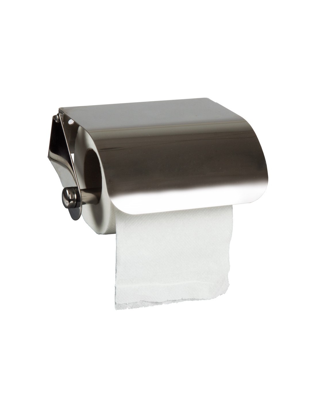 Fabricado en acero inoxidable. Para rollos de papel higiénico códigos 70001, 70002, 18815 y 72336. Medidas: 122 x 98 x 45 mm.