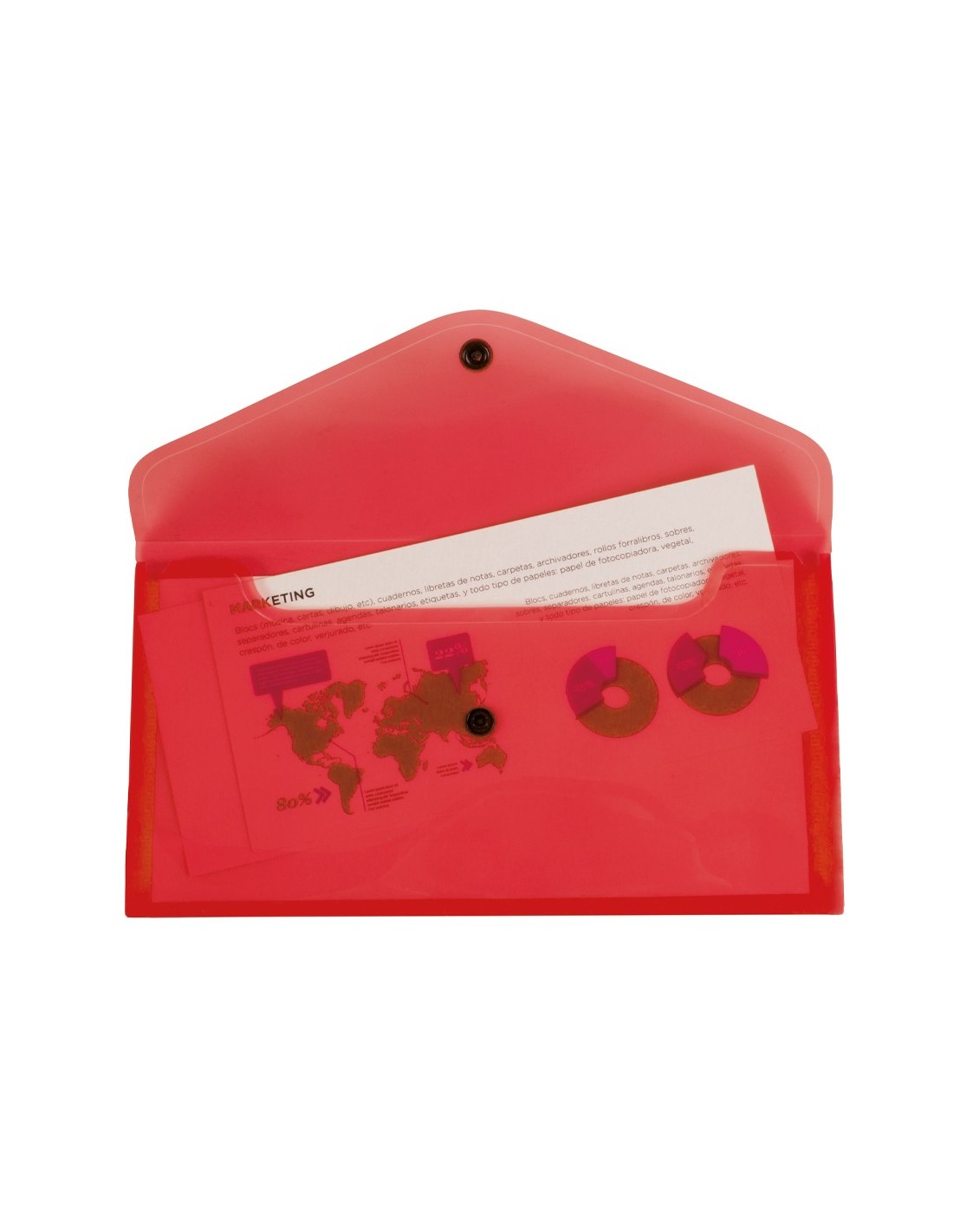 Fabricada en polipropileno muy resistente. Capacidad hasta 50 hojas. 180 micras.