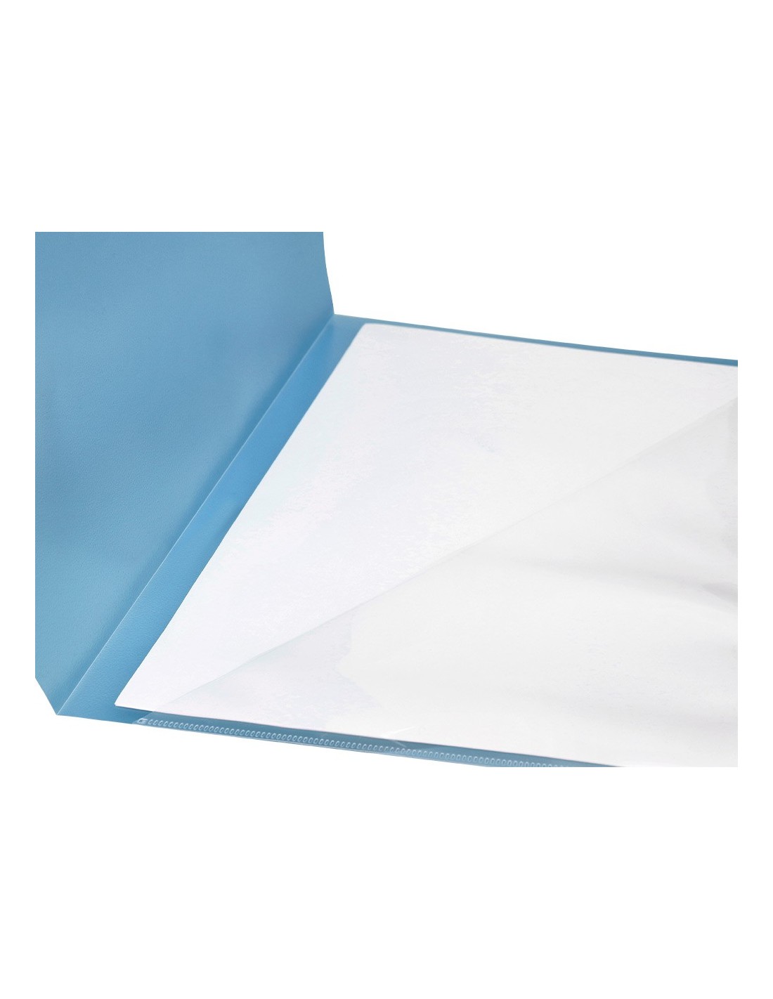 Fabricada en polipropileno de colores translúcidos y opacos. Con tarjetero y solapa interior. Para la protección y conservación de documentos. Capacidad hasta 20 hojas. Formato DIN A4. 180 micras.