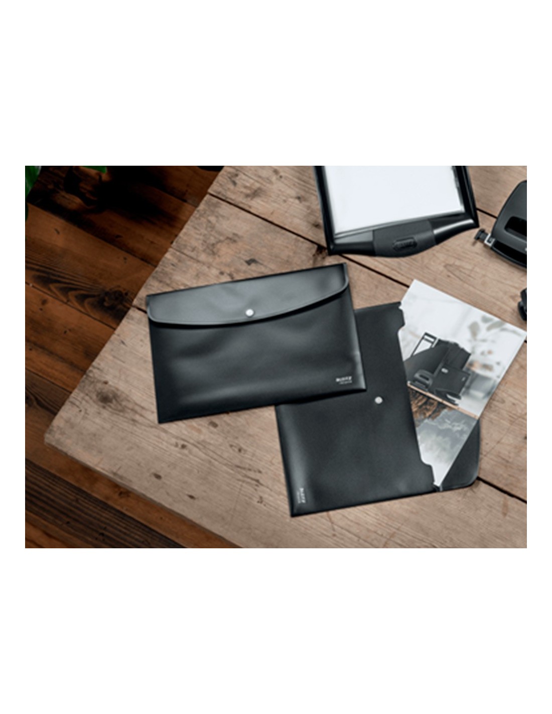 Carpeta portadocumentos con cierre de broche. Fabricada en polipropileno. Formato DIN A4. Color negro.