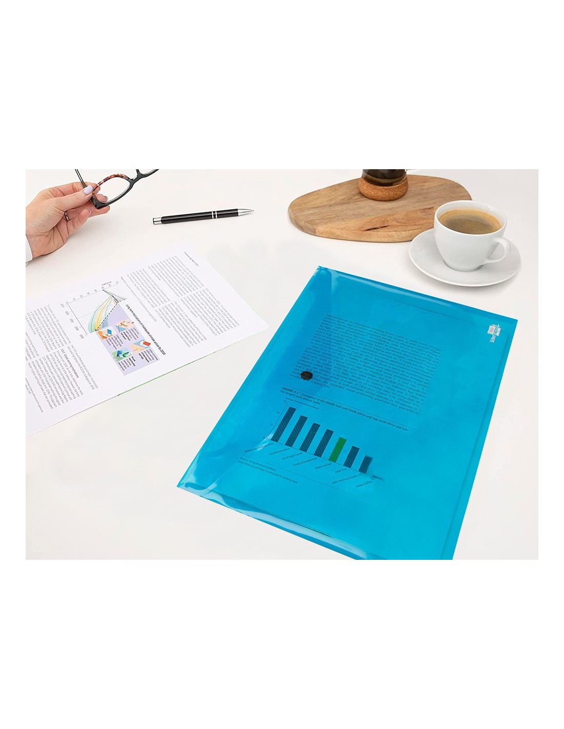 Fabricada en polipropileno muy resistente. Capacidad hasta 50 hojas. 180 micras.