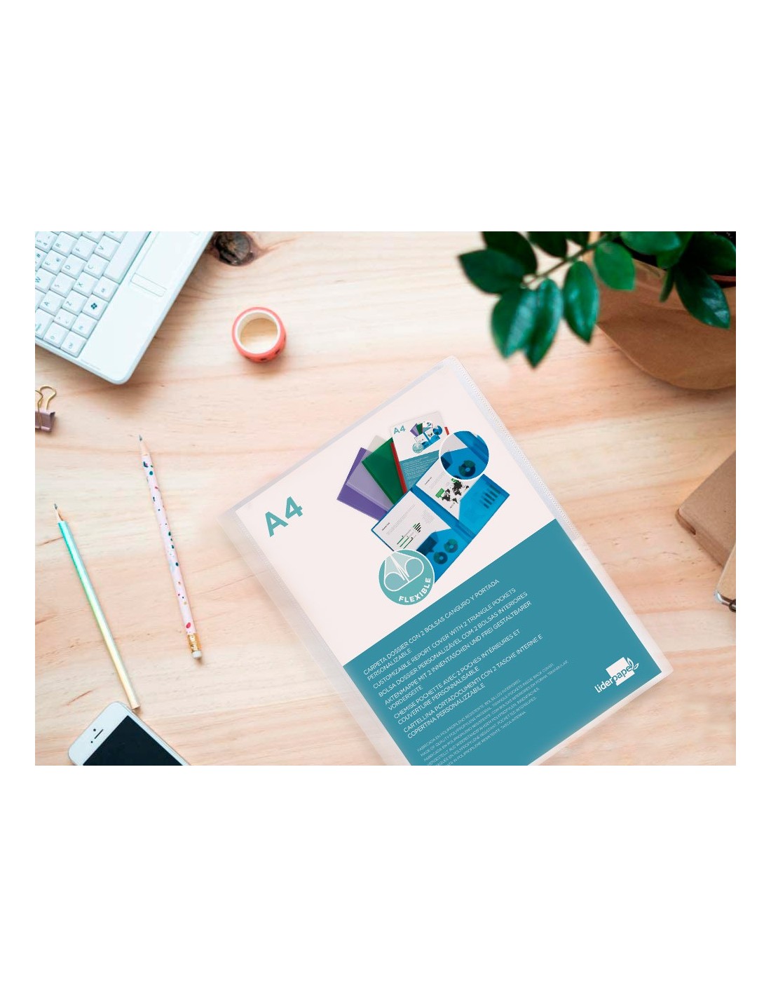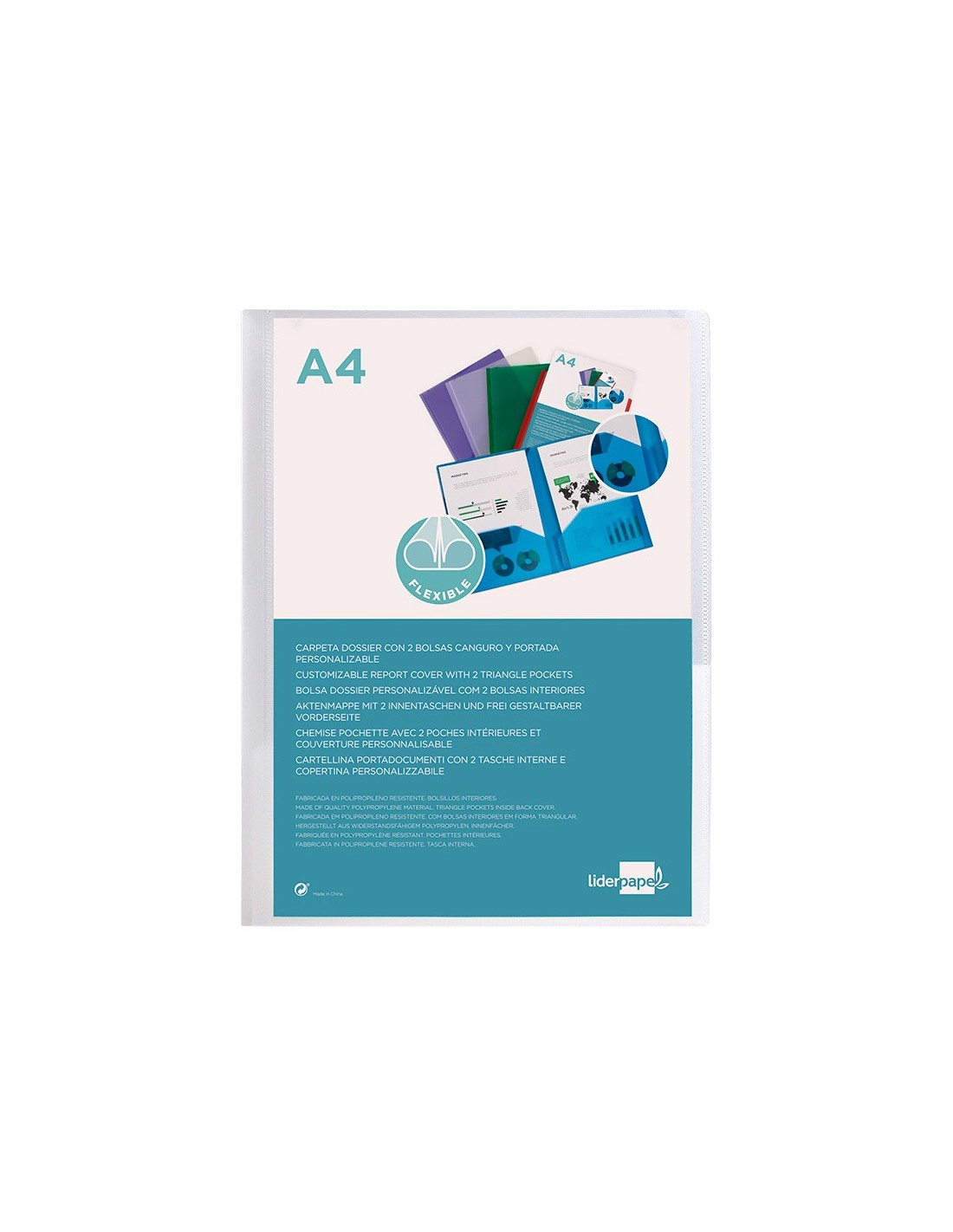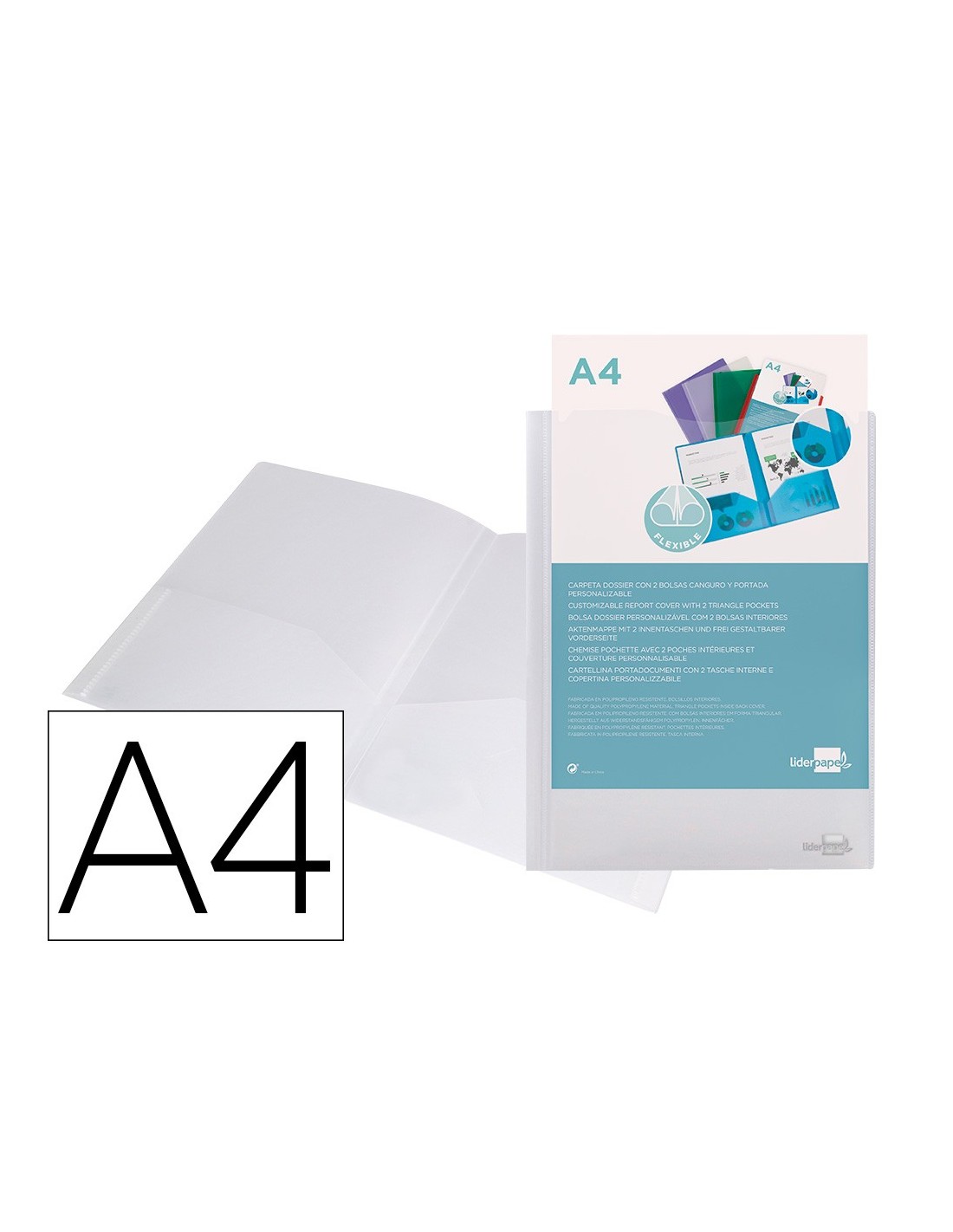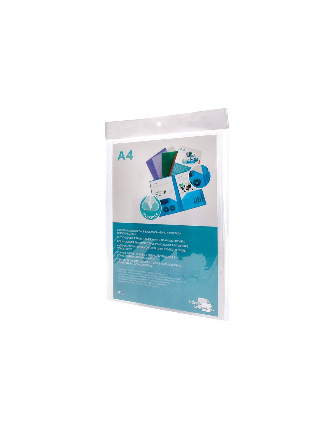 Bolsa portadocumentos. Fabricada en polipropileno. Con portada personalizable. Colores transparentes. Formato DIN A4. 400 micras.