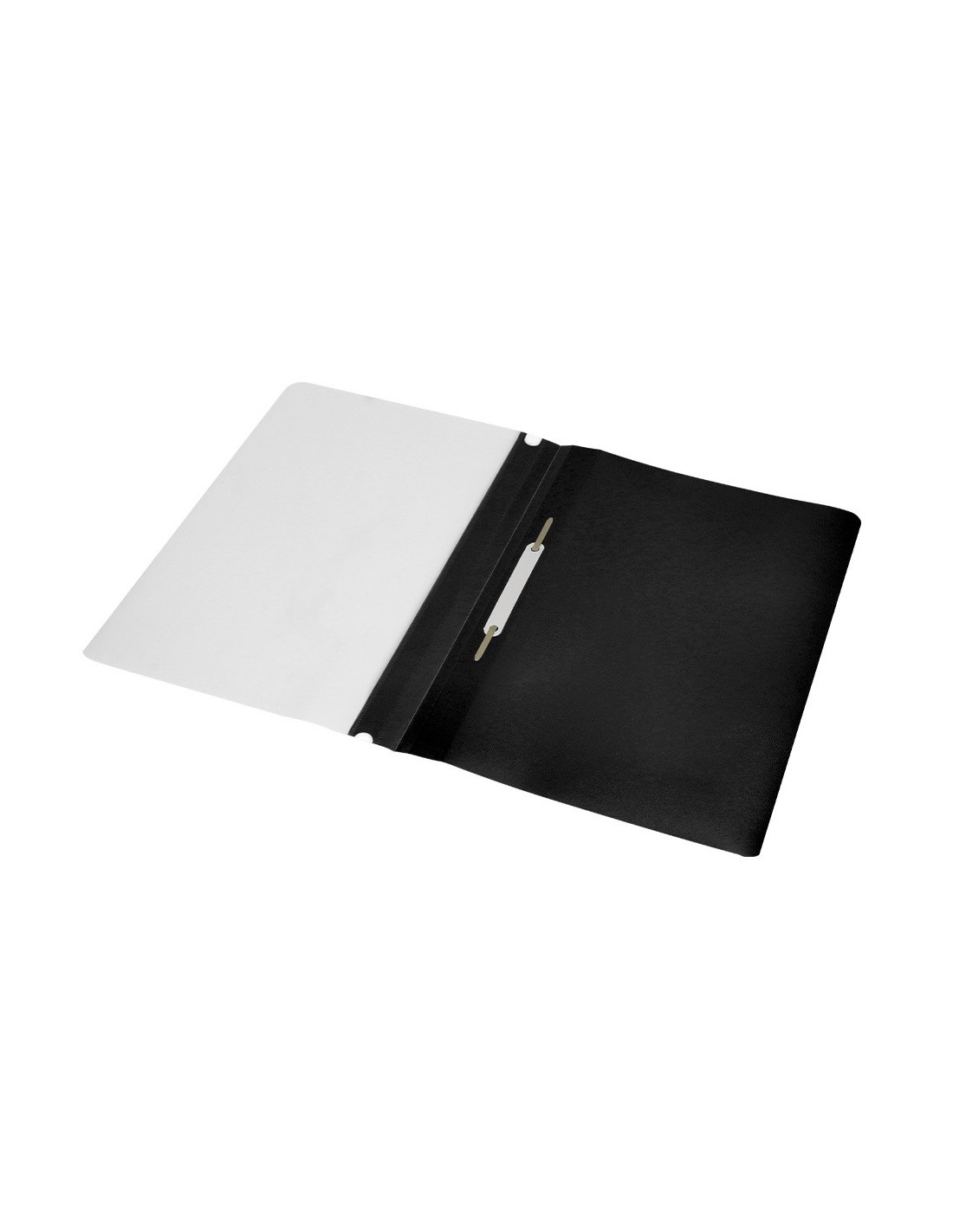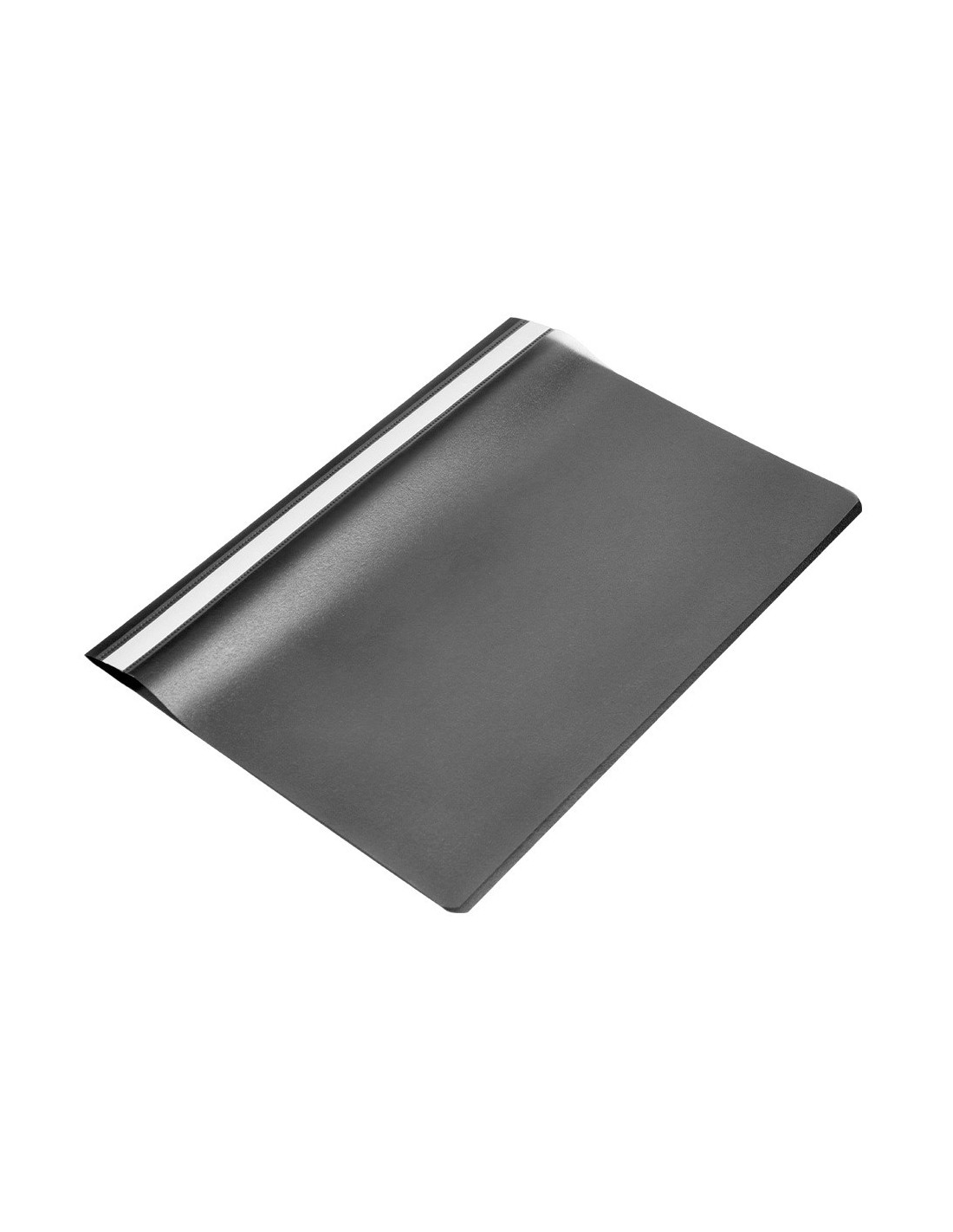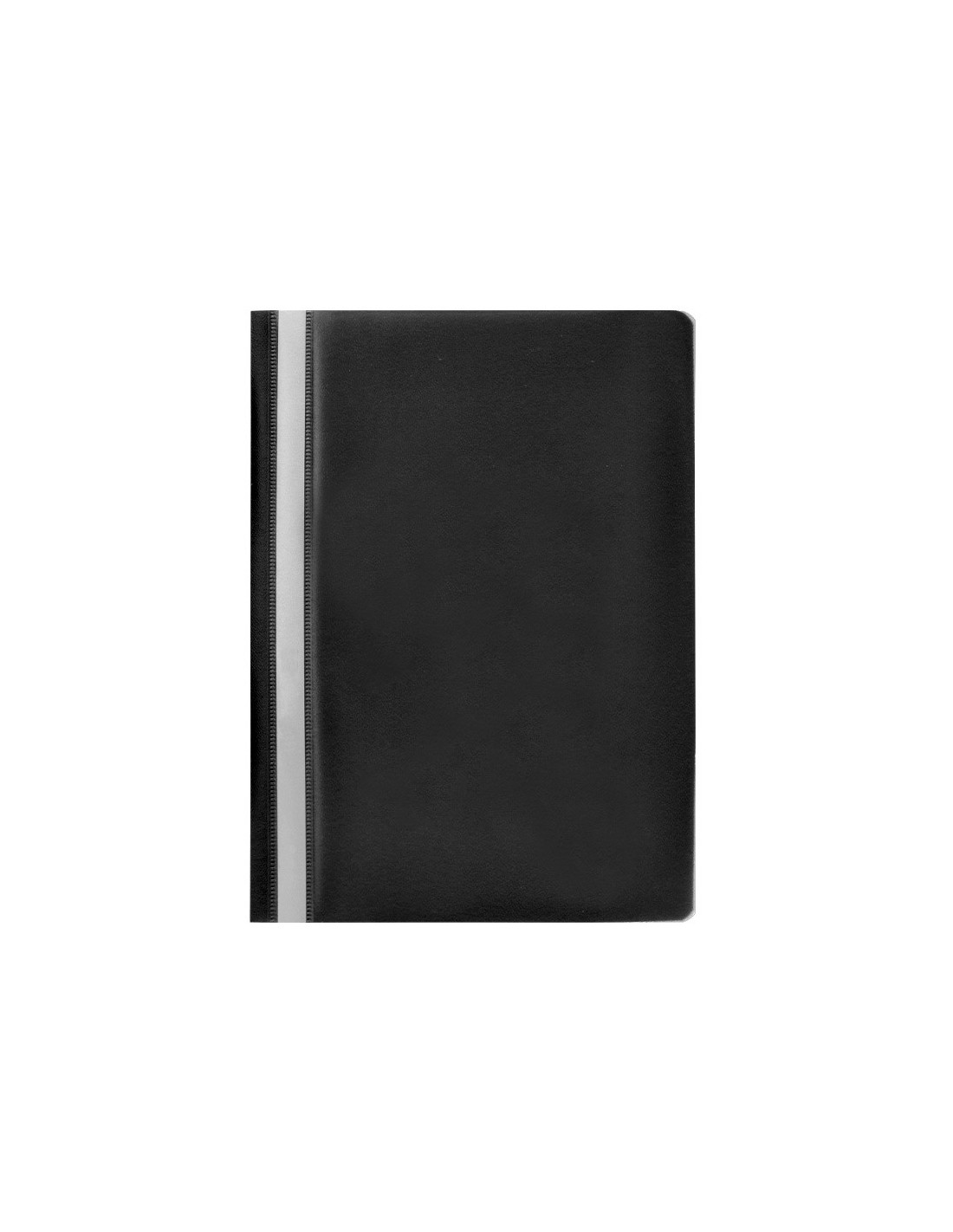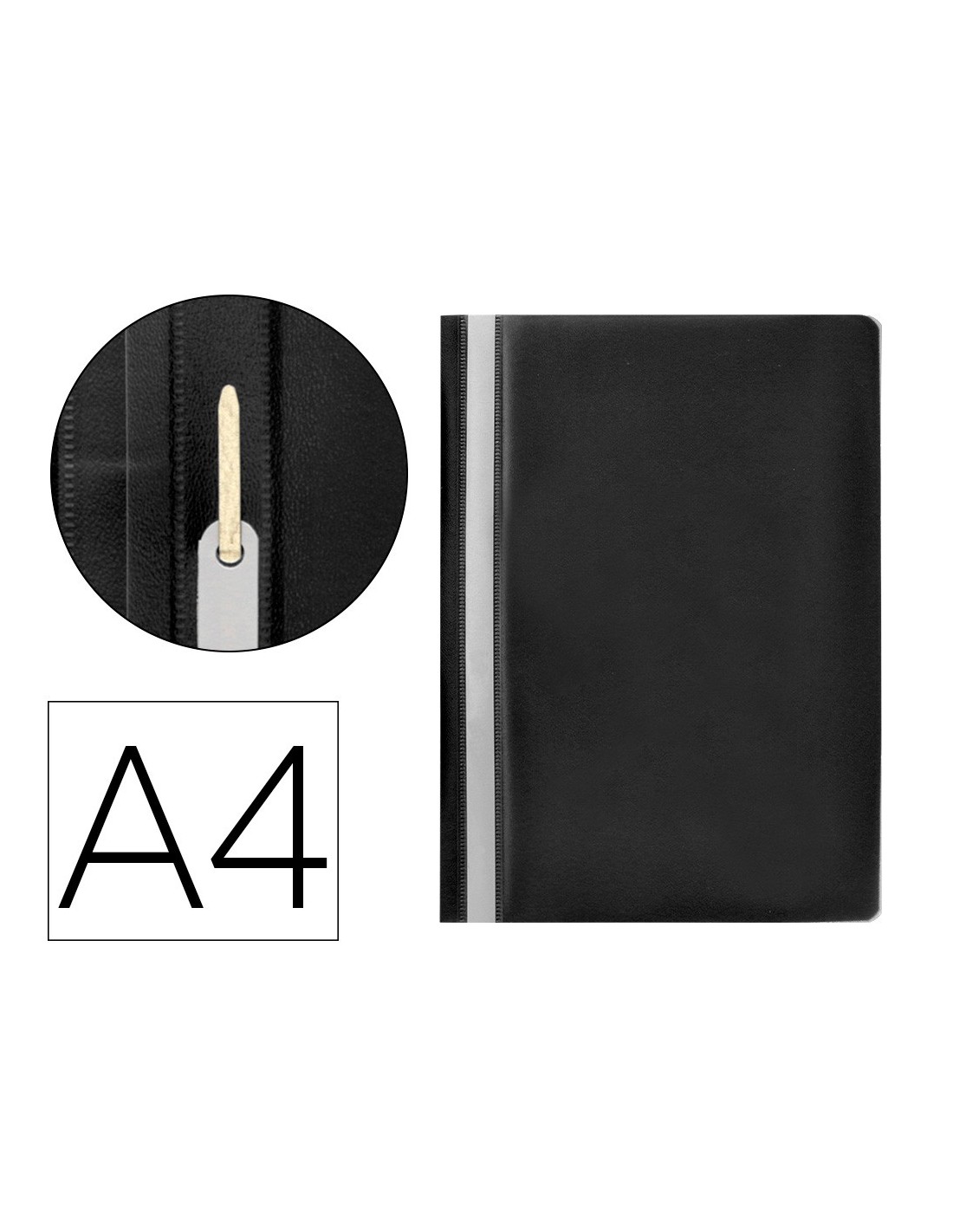 Fabricada en PVC, con fástener metálico, cubierta transparente y trasera opaca. Ventana con tira de papel en el lomo para personalizar el trabajo. Formato DIN A4. Tapa de 110 micras. Contratapa de 180 micras.
