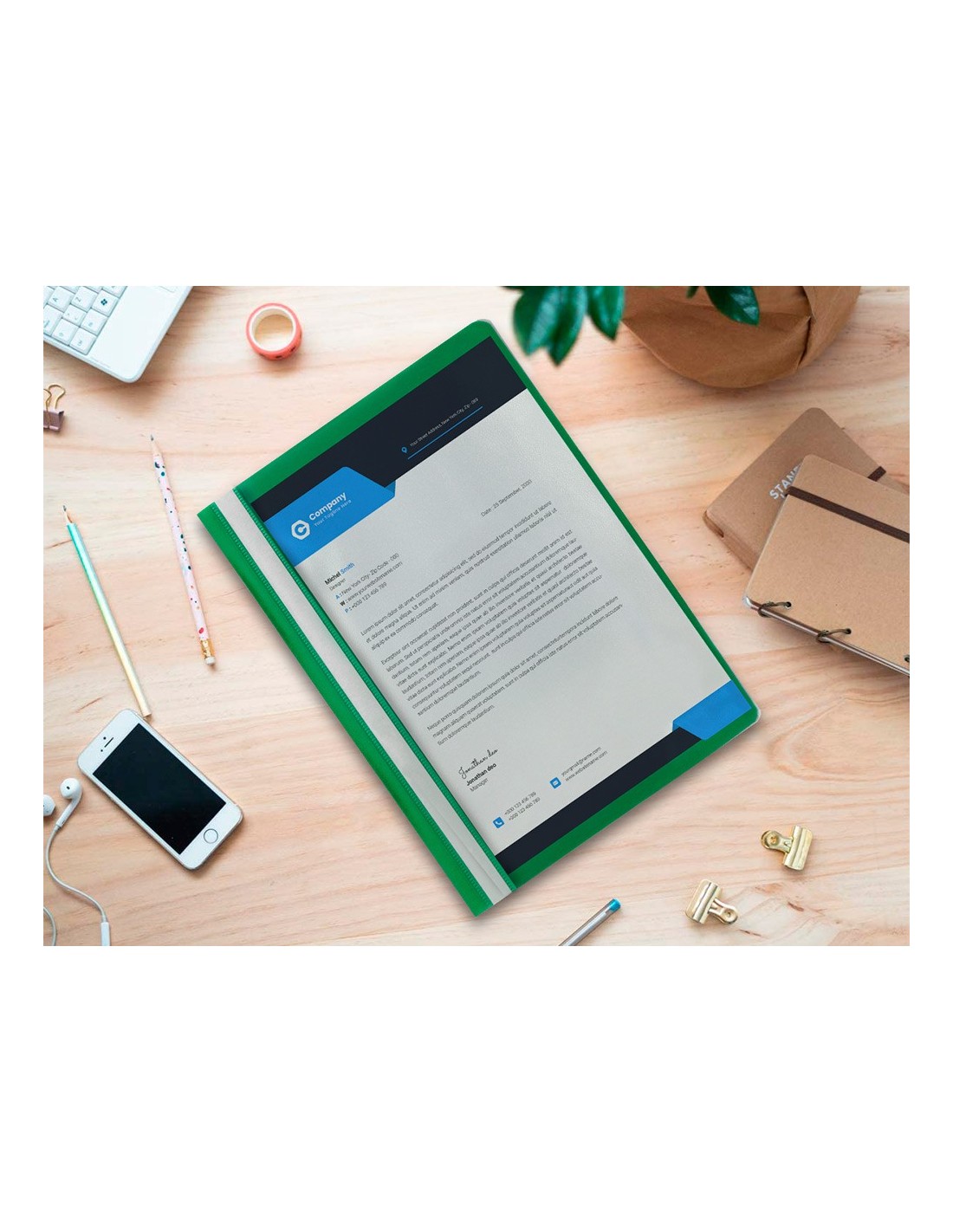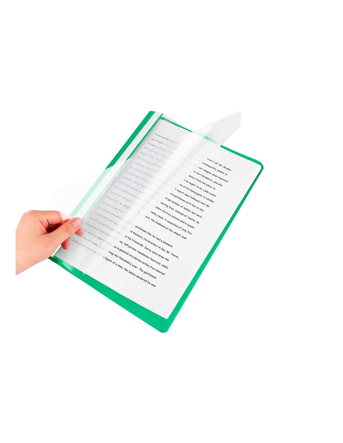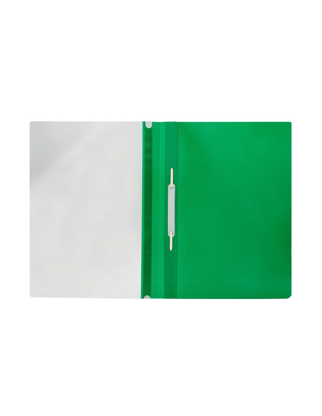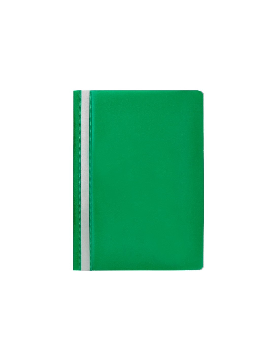 Fabricada en PVC, con fástener metálico, cubierta transparente y trasera opaca. Ventana con tira de papel en el lomo para personalizar el trabajo. Formato DIN A4. Tapa de 110 micras. Contratapa de 180 micras.