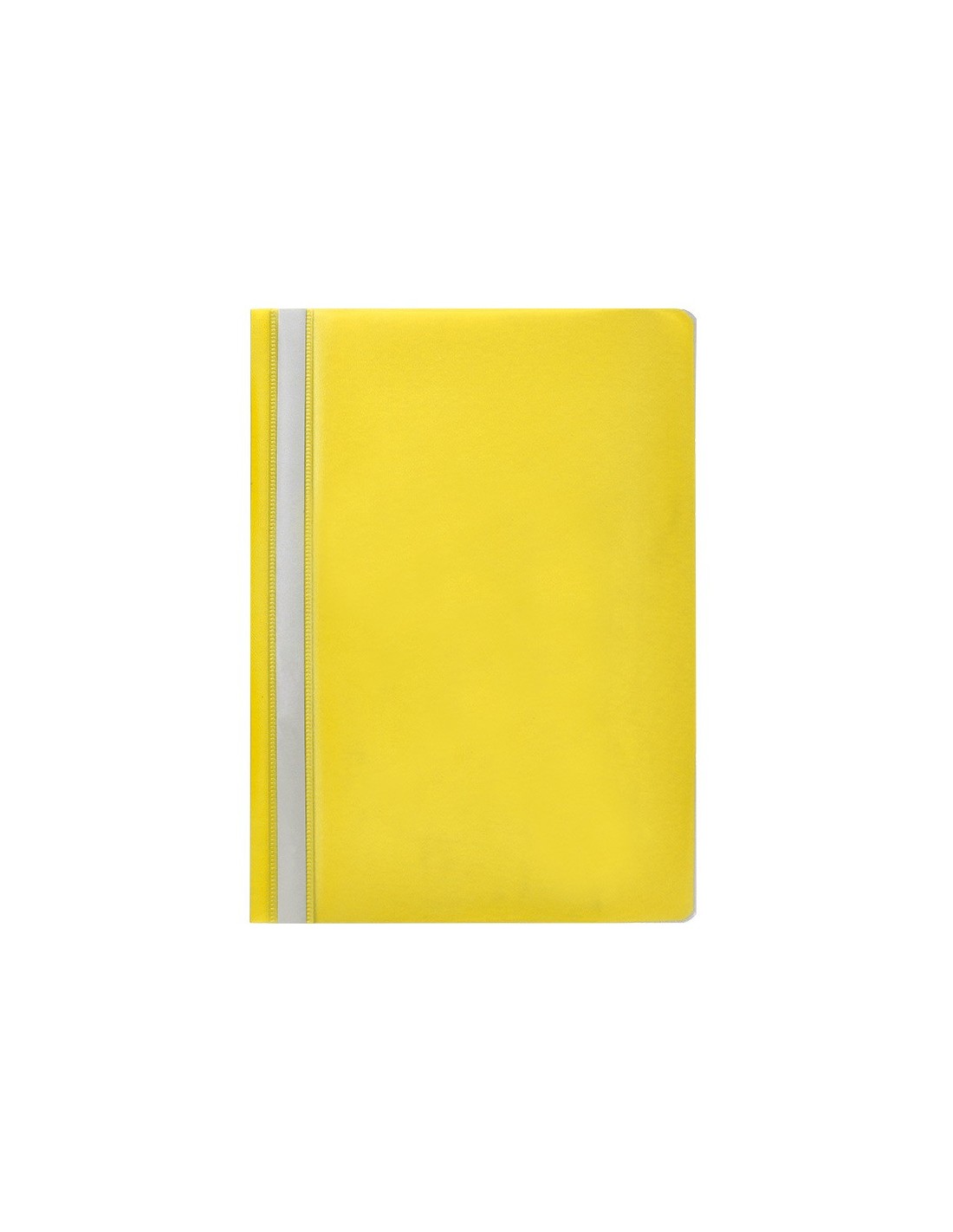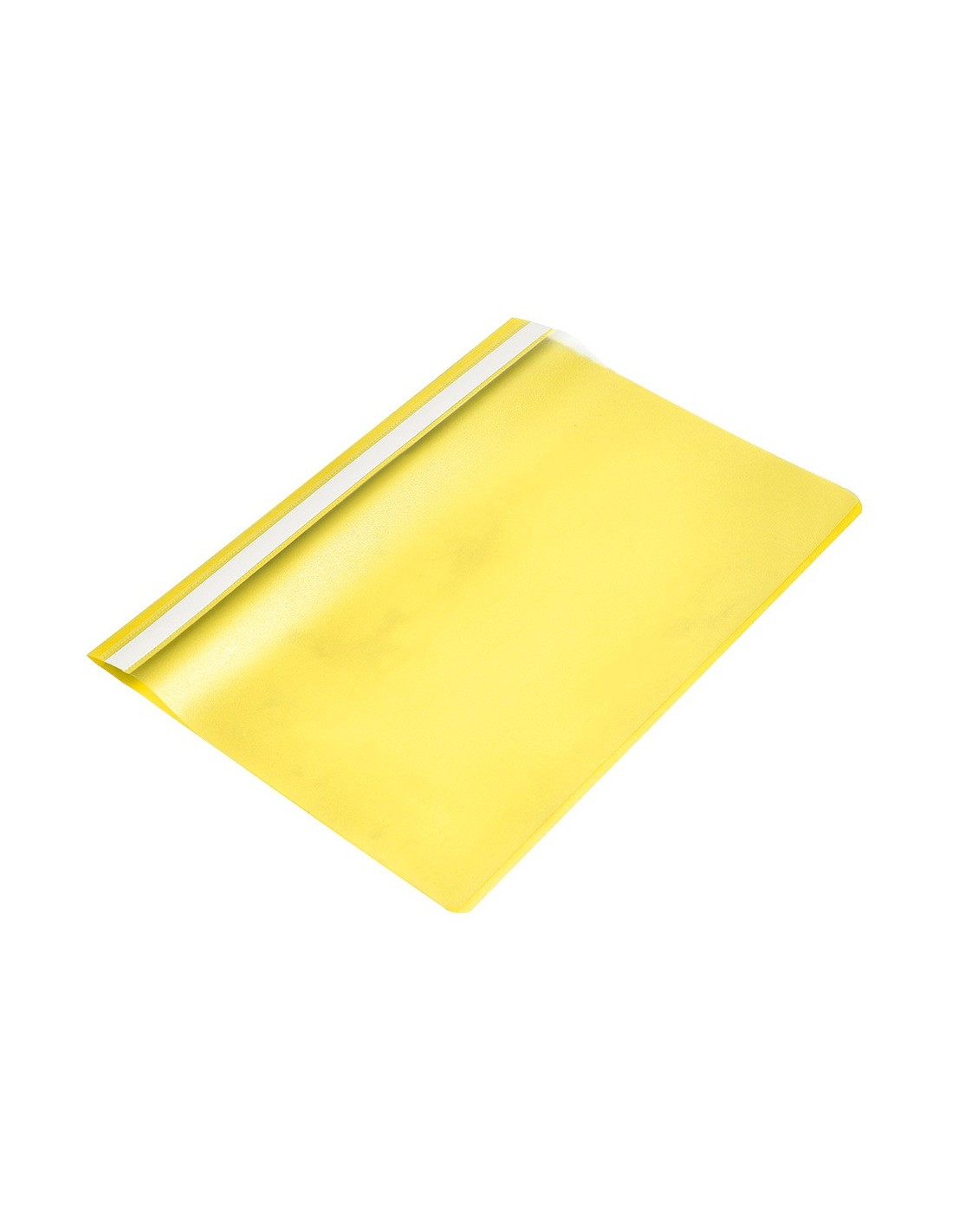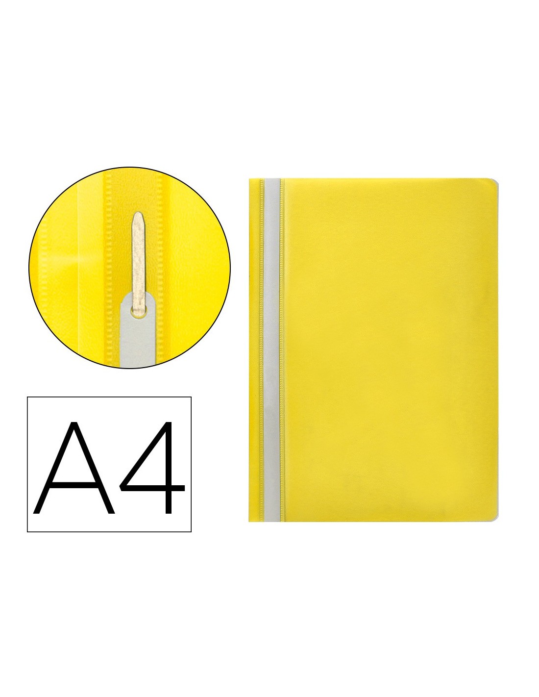Fabricada en PVC, con fástener metálico, cubierta transparente y trasera opaca. Ventana con tira de papel en el lomo para personalizar el trabajo. Formato DIN A4. Tapa de 110 micras. Contratapa de 180 micras.