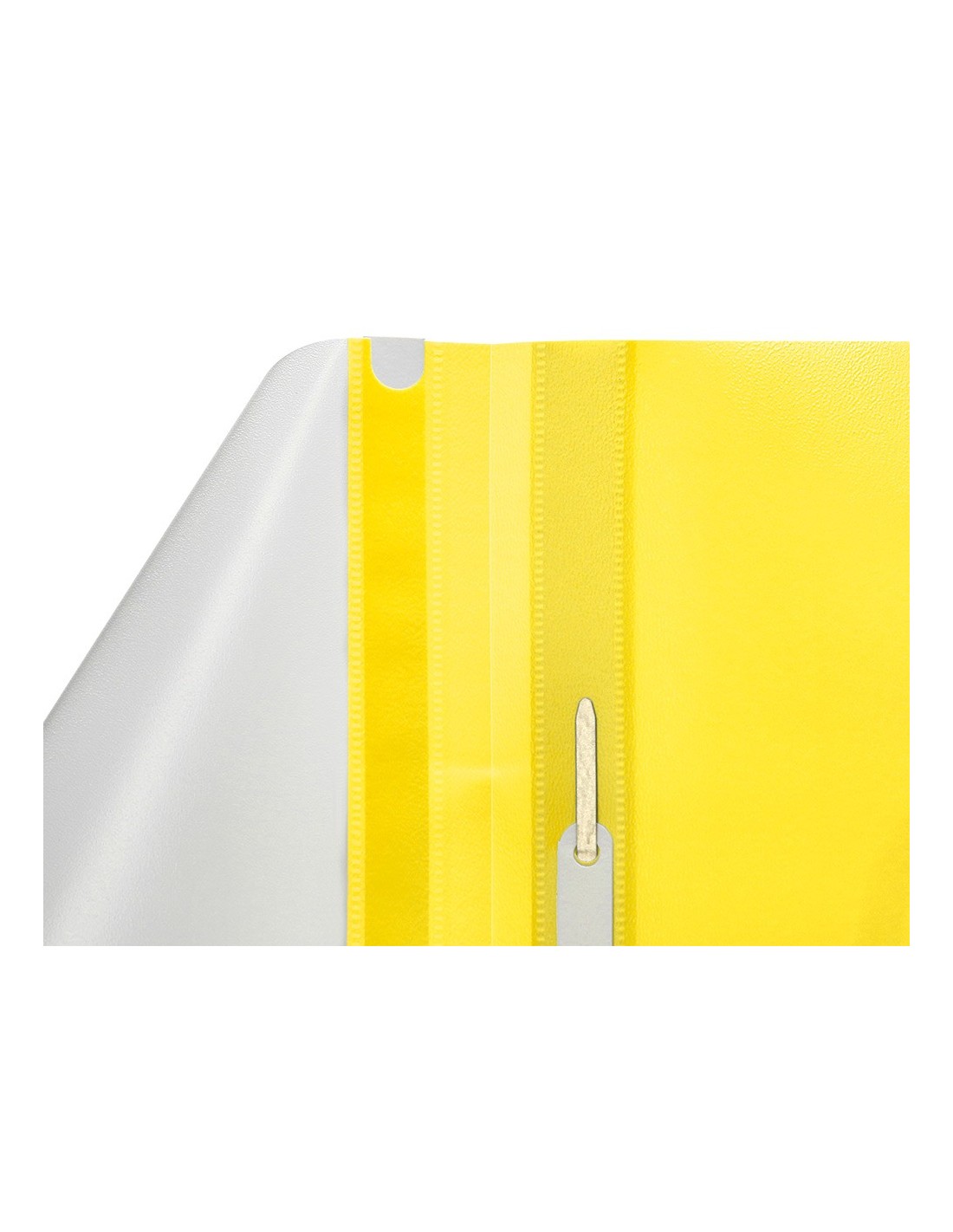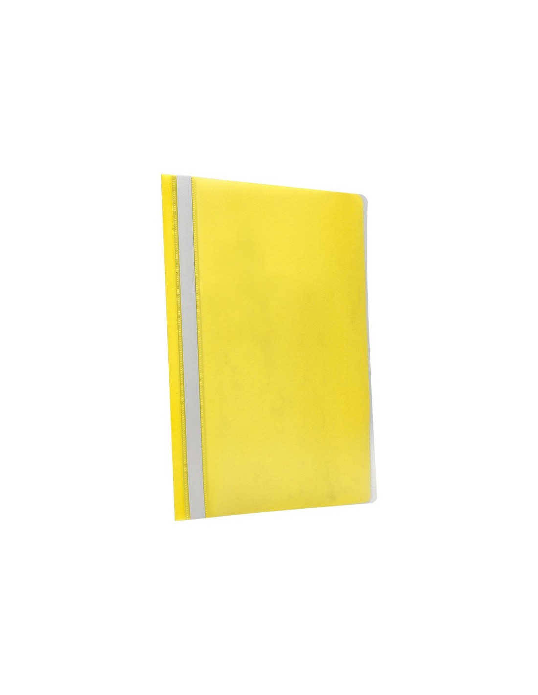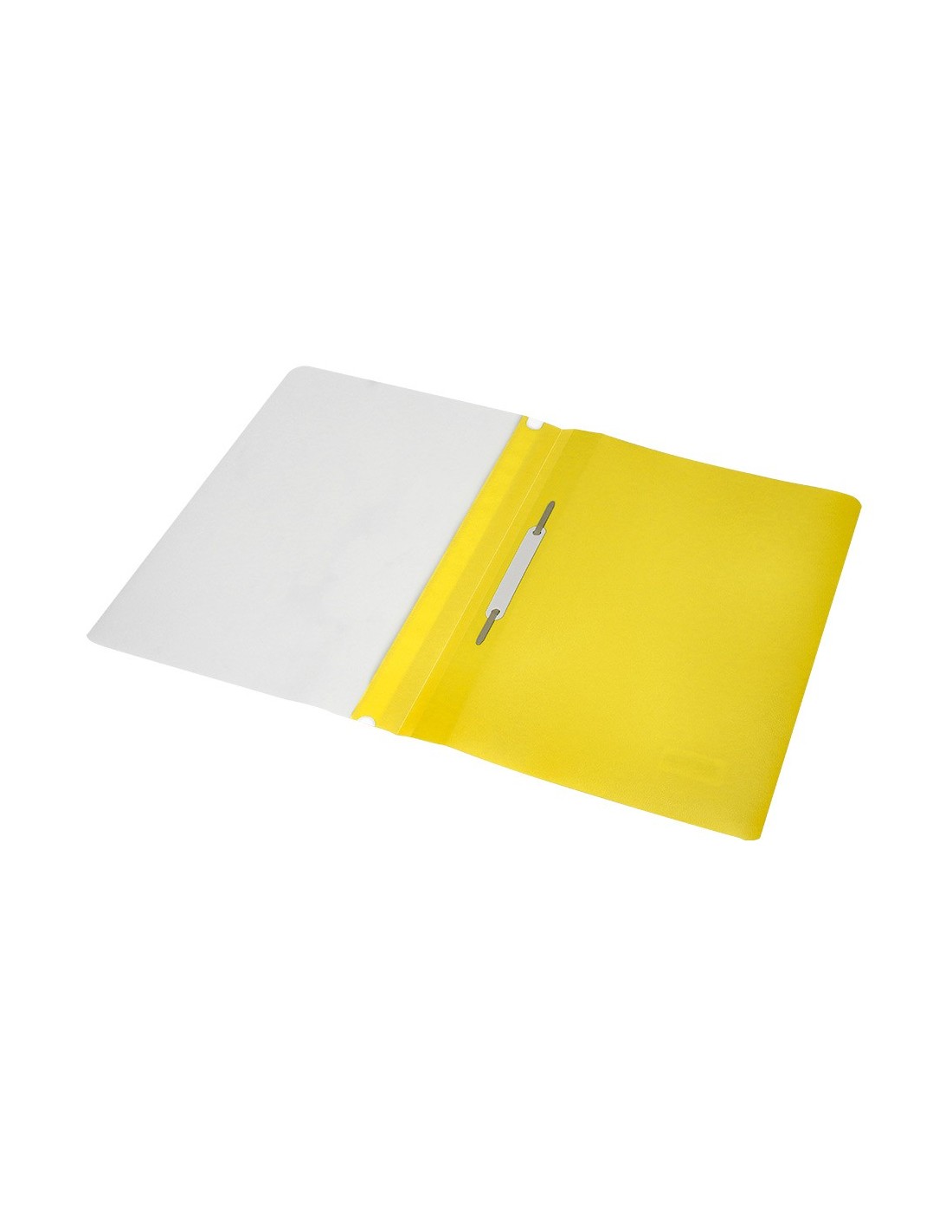 Fabricada en PVC, con fástener metálico, cubierta transparente y trasera opaca. Ventana con tira de papel en el lomo para personalizar el trabajo. Formato DIN A4. Tapa de 110 micras. Contratapa de 180 micras.