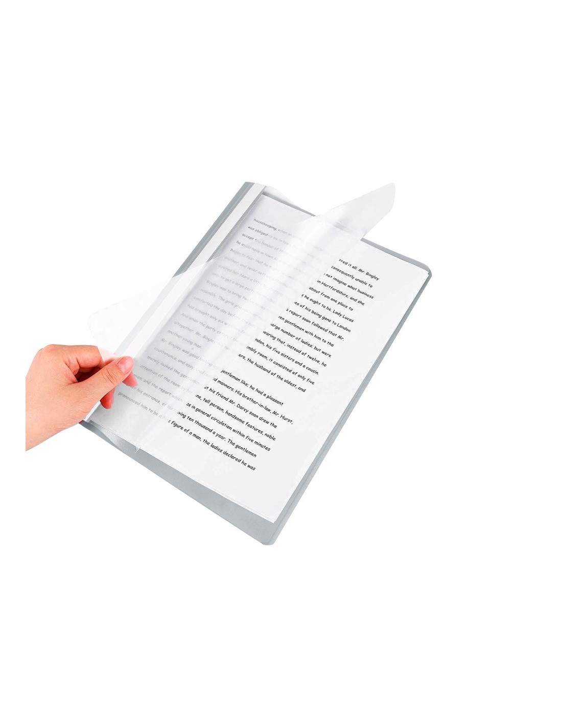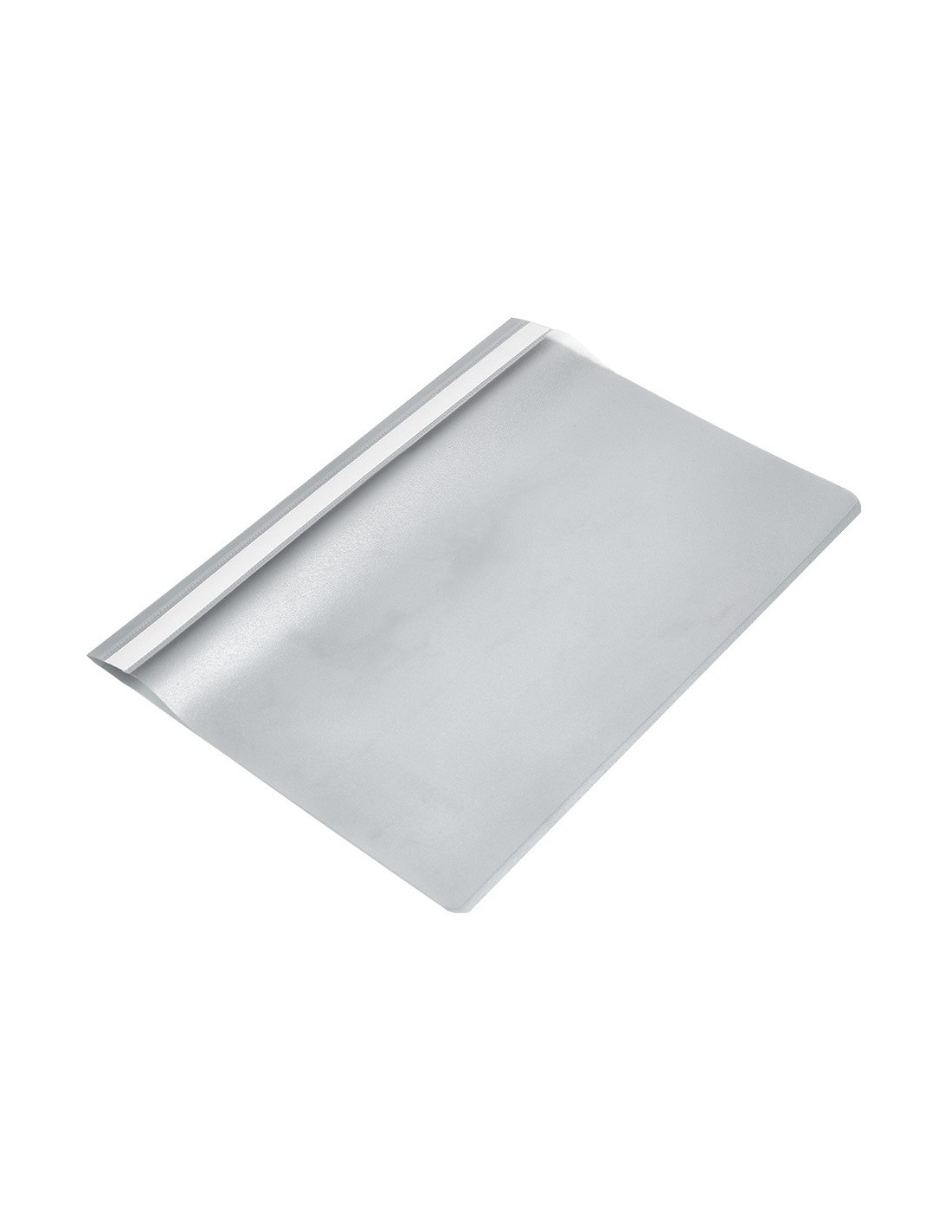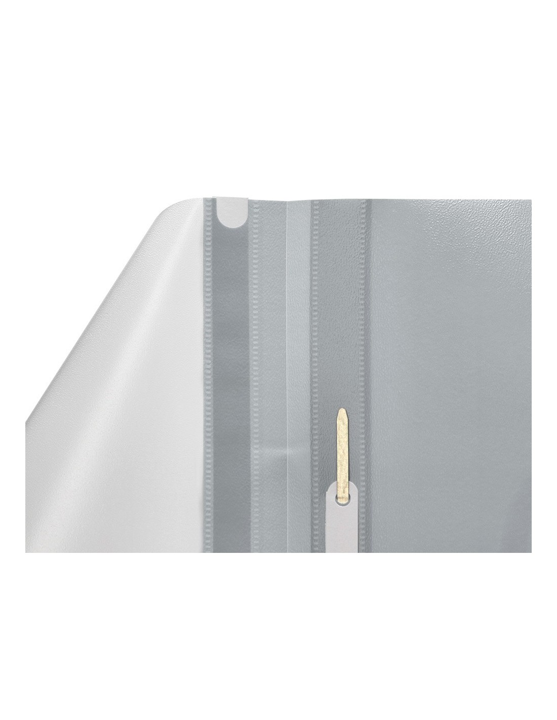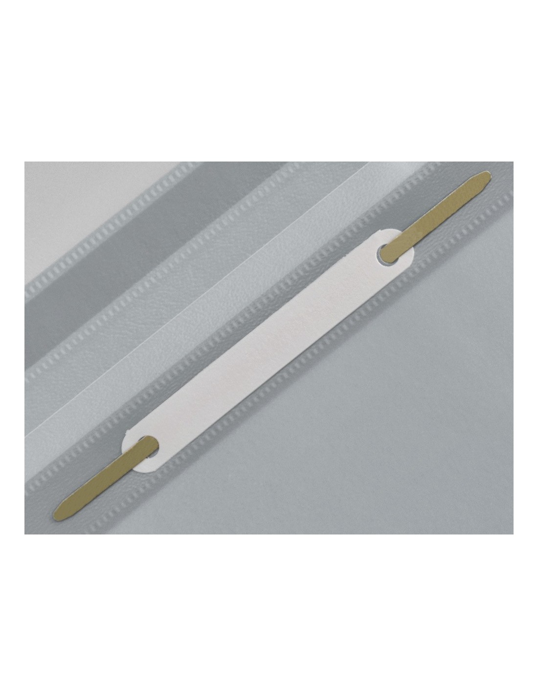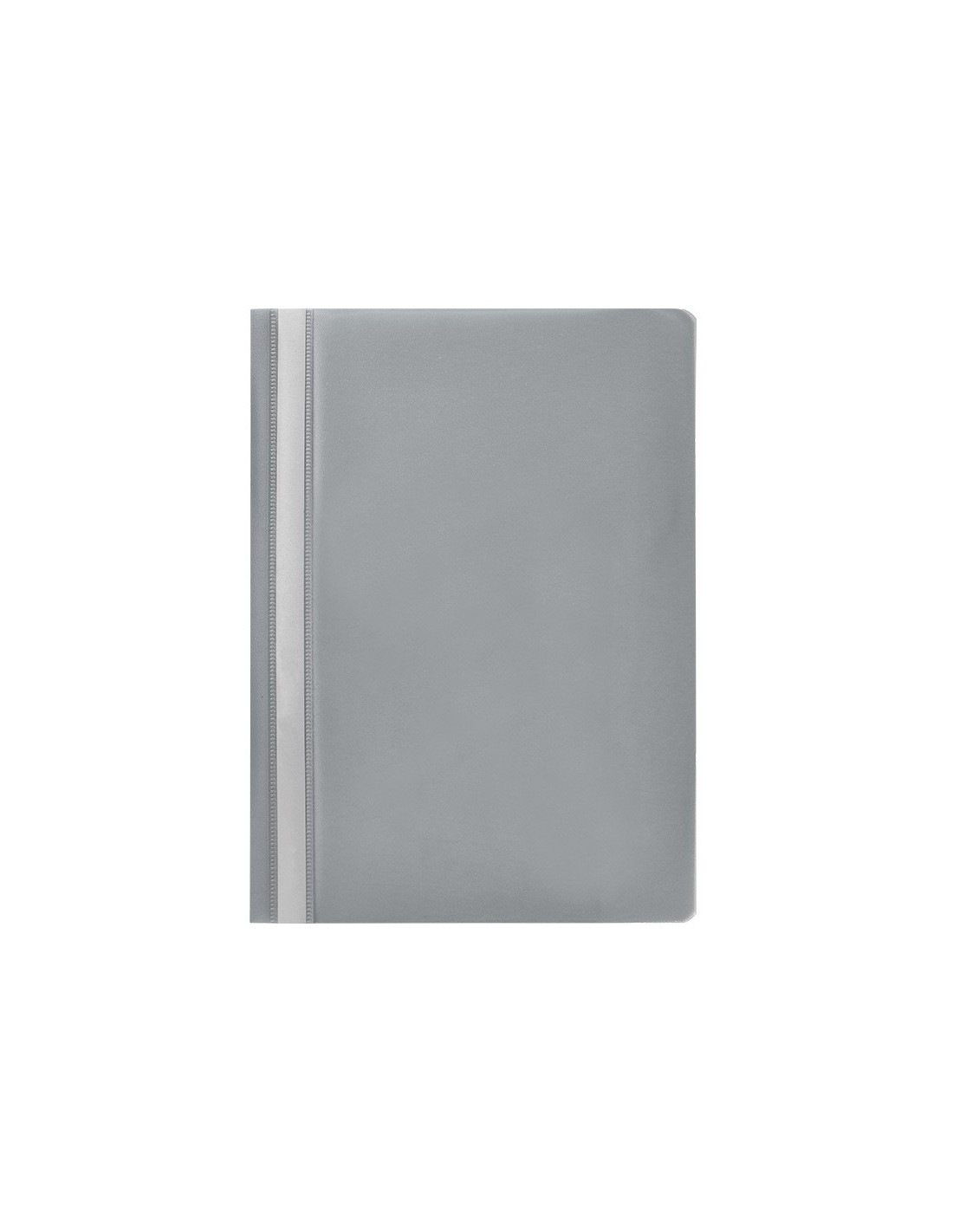 Fabricada en PVC, con fástener metálico, cubierta transparente y trasera opaca. Ventana con tira de papel en el lomo para personalizar el trabajo. Formato DIN A4. Tapa de 110 micras. Contratapa de 180 micras.