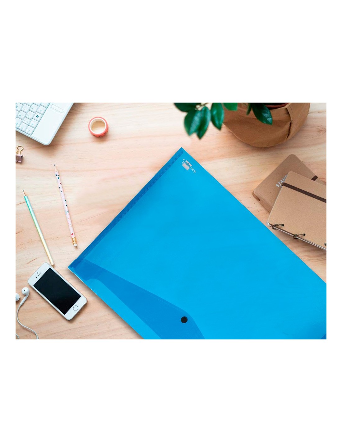 Fabricada en polipropileno muy resistente. Capacidad hasta 50 hojas. 180 micras.