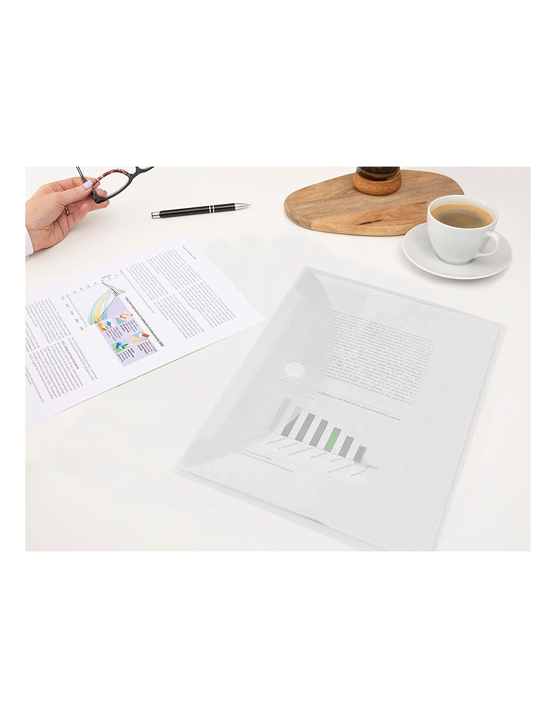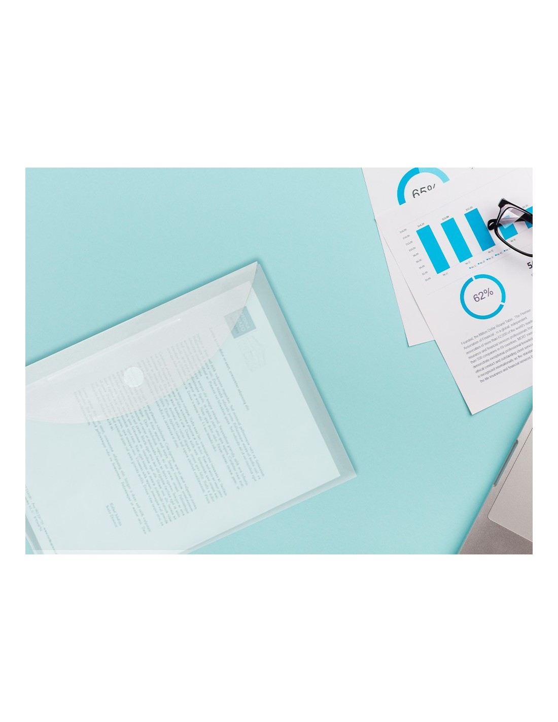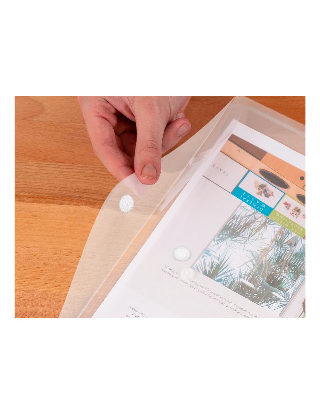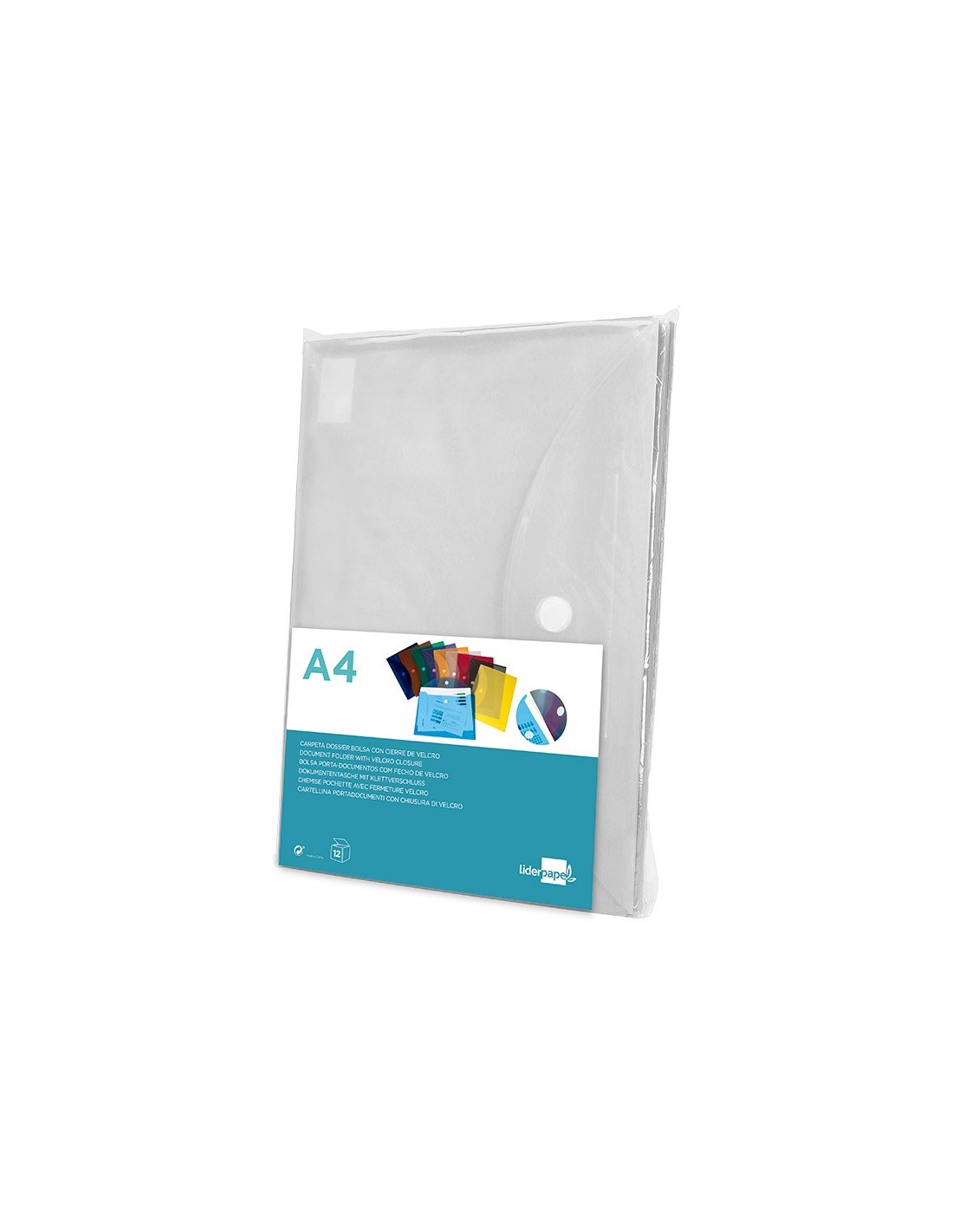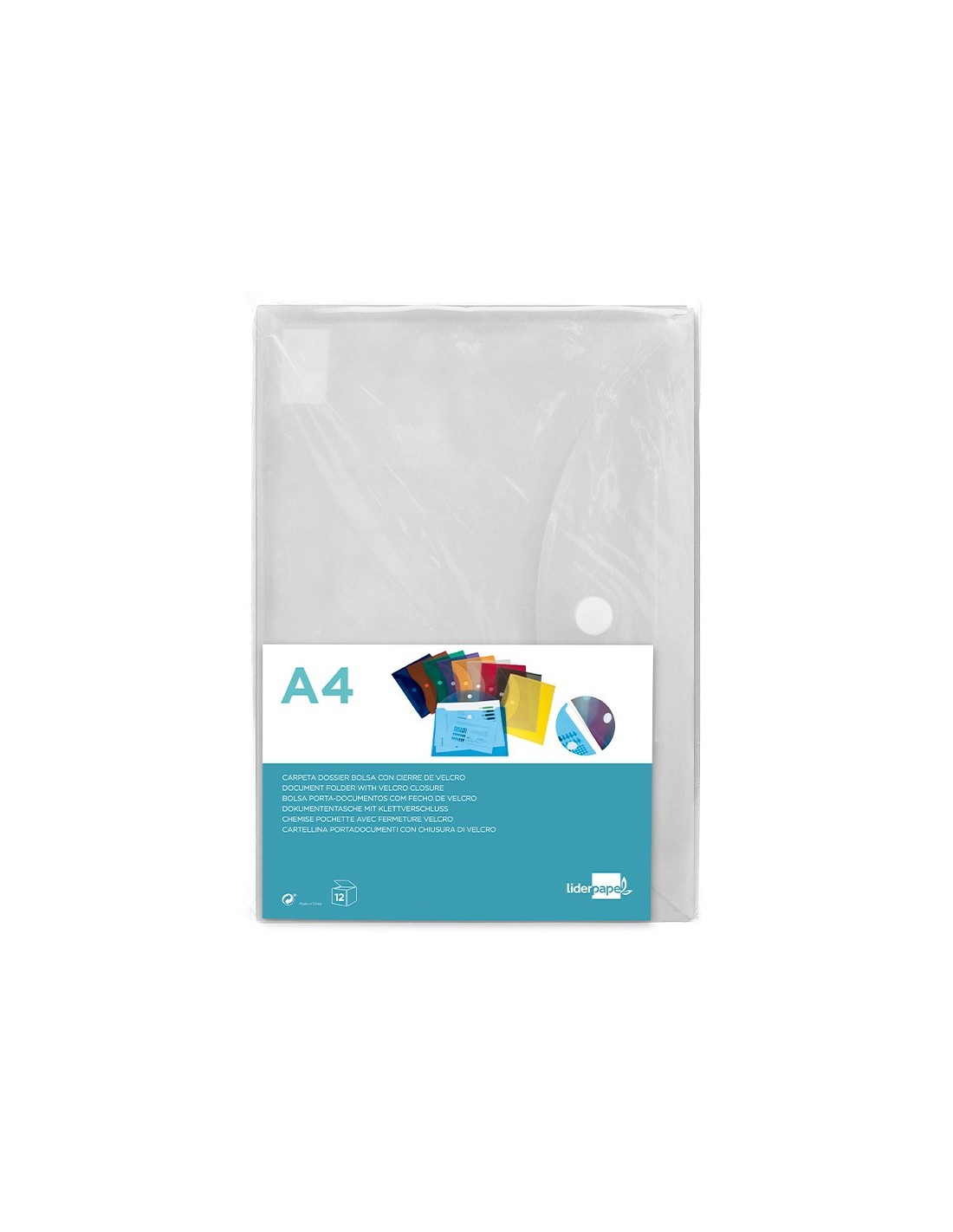Fabricada en polipropileno. Formato DIN A4. Con cierre de velcro. 180 micras.