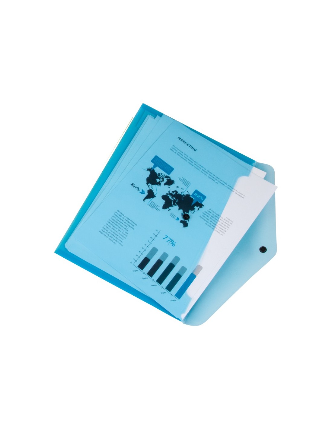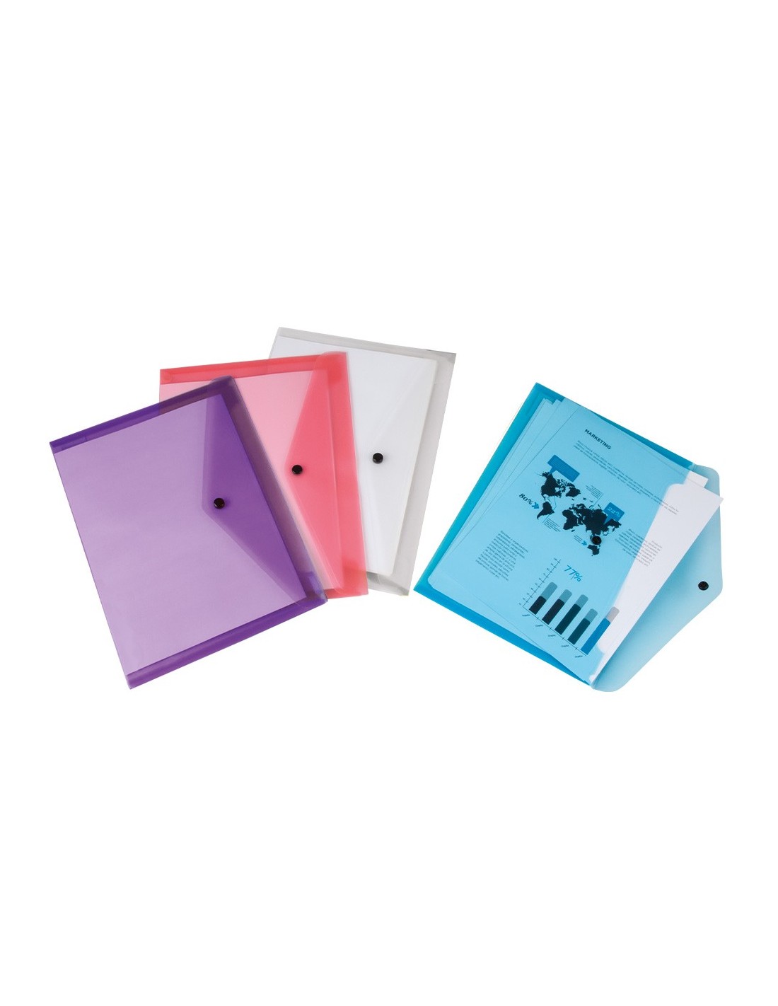 Fabricada en polipropileno muy resistente. Capacidad hasta 50 hojas. 180 micras.