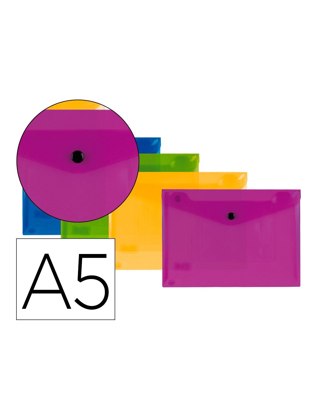 Fabricada en polipropileno muy resistente. Capacidad hasta 50 hojas. 180 micras.