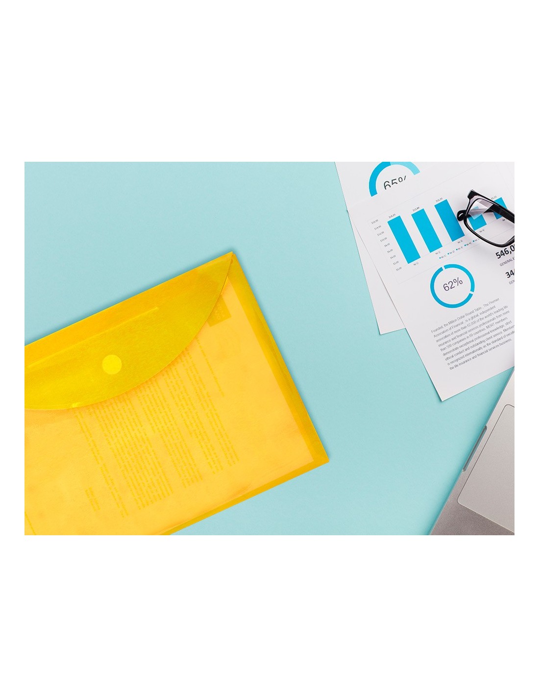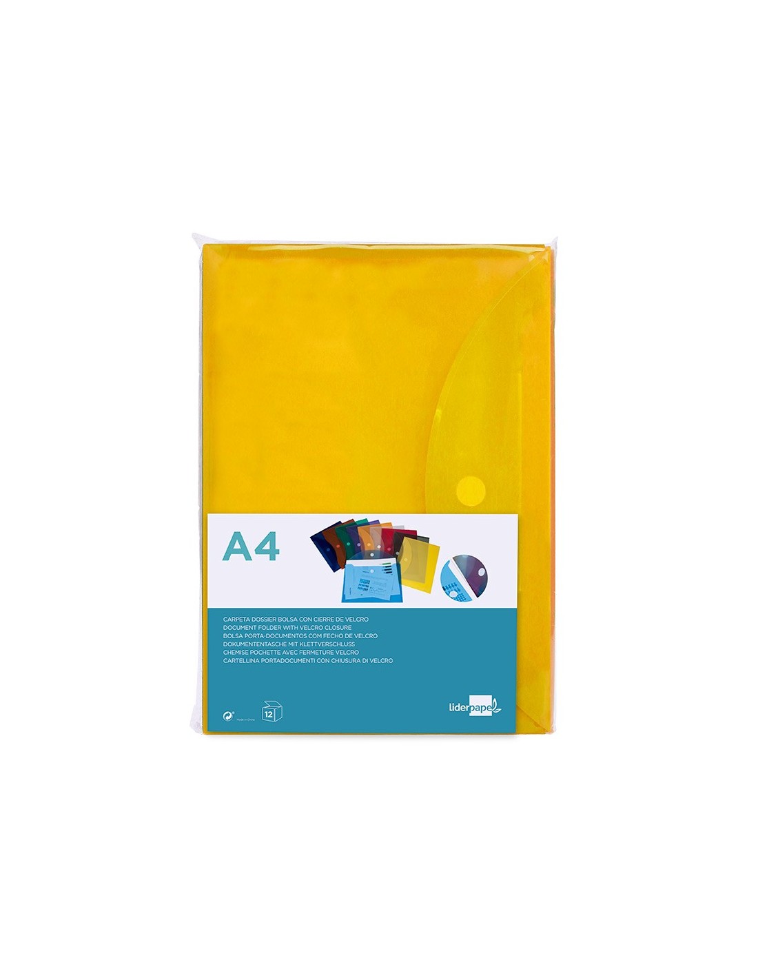 Fabricada en polipropileno. Formato DIN A4. Con cierre de velcro. 180 micras.