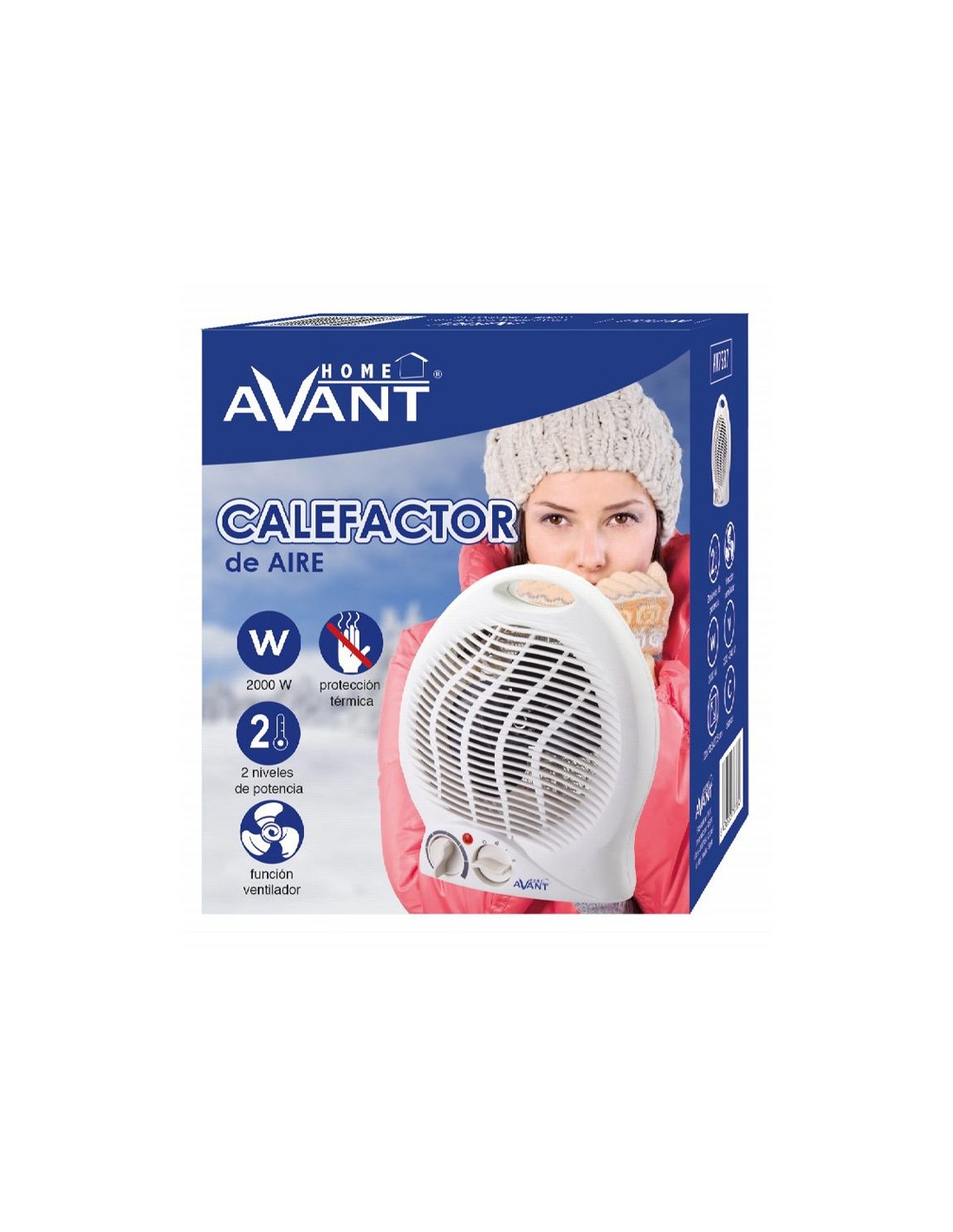 Calefactor de aire Vertical Avant. Tiene dos niveles de potencia. 1000W y 2000W con que podrás elegir la potencia del calentador y acelerar el tiempo de calentamiento de la habitación. Función ventilador y protección térmica. Sistema de calefacción de aire vertical. El moderno calentador de airede 2000W consigue una rápida emisión de calor con la máxima eficacia y se guridad en comparación con los calentadores tradicionales. Ahorro de espacio. El calefactor eléctrico de aire vertical tamaño mediano es ideal para usar en la oficina, en el hogar, en el baño y en las habitaciones. Graciasa su tamaño, podrá moverlo sin ningún esfuerzo donde más lo necesite. Car acterísticas de seguridad modernas. Funciones de seguridad integradas avanvanzadas que incluyen protección contra sobrecalentamiento y protección contra golpes. También está diseñado con función ventilador. El termostato ajustable simplifica la configuración de temperatura para un calentamiento ngo de potencia eléctrica: 220 - 240 V