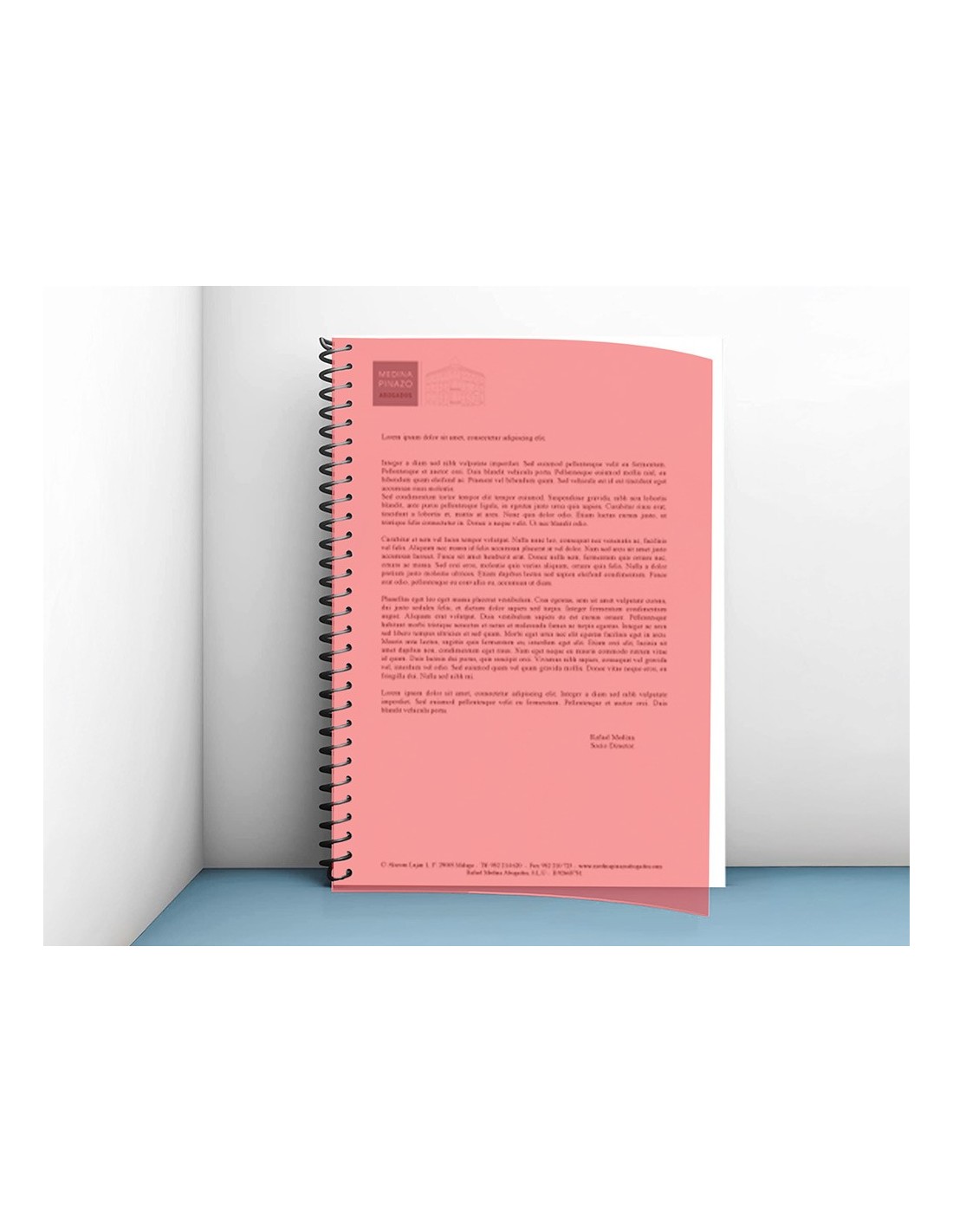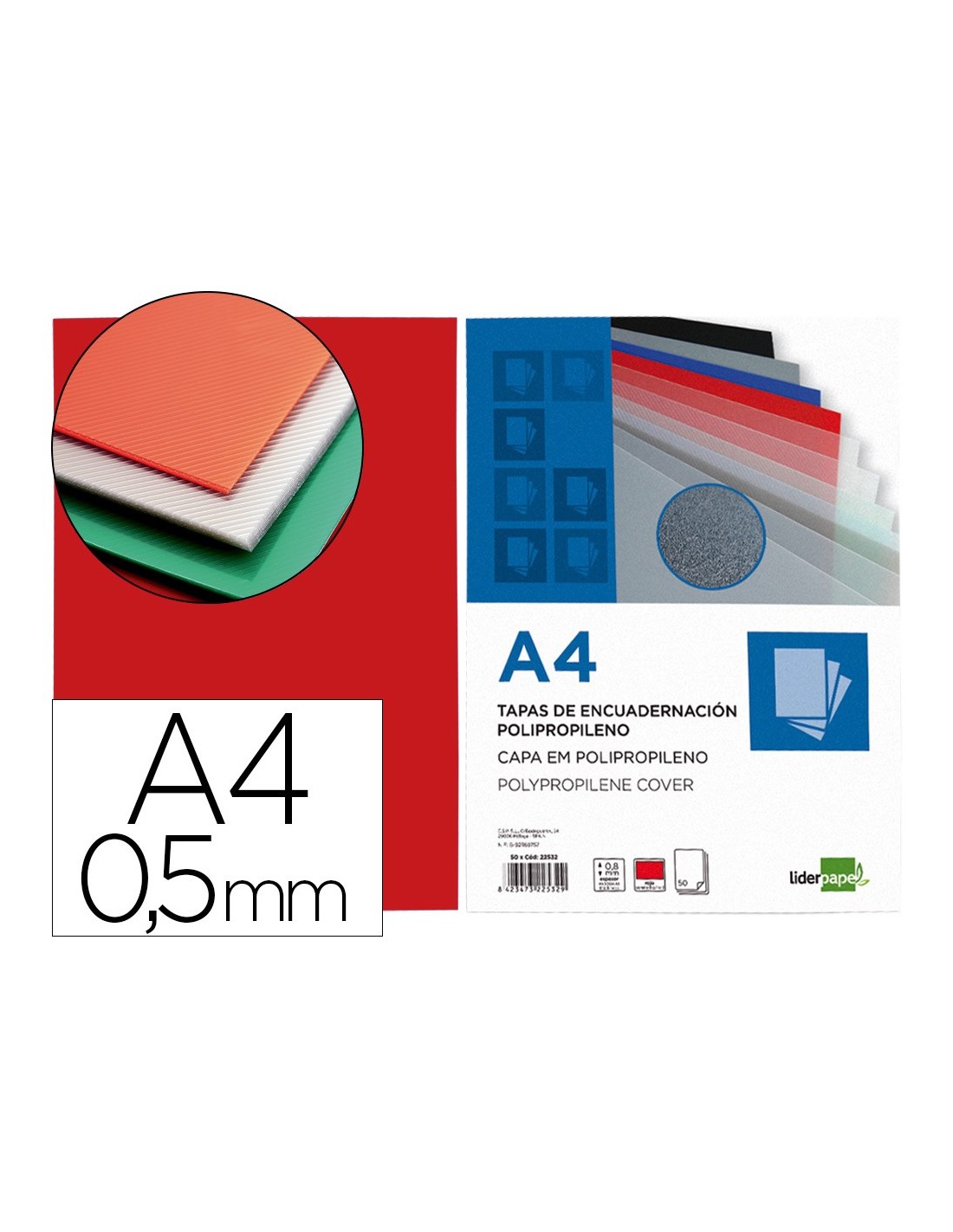 Hoja de polipropileno extrusionado ligeramente rugoso para encuadernación de espiral, canutillo, anillas y otros.
