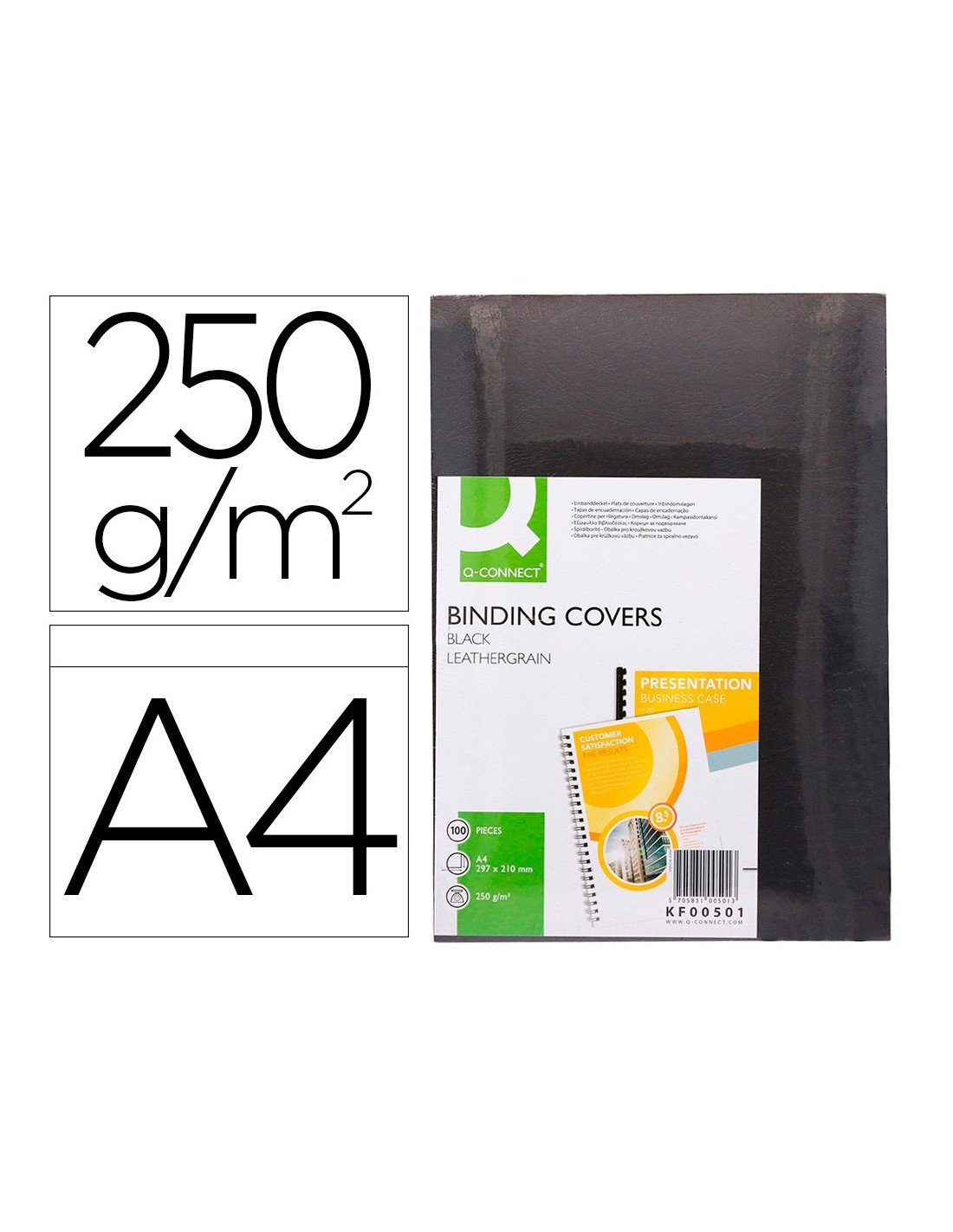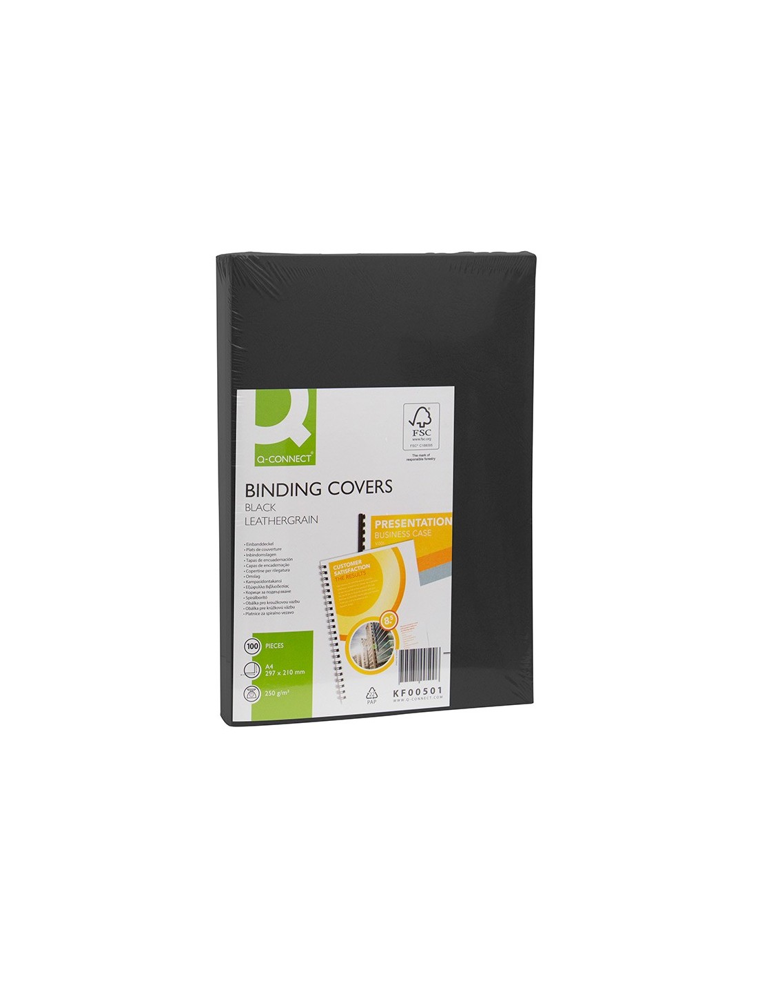 Tapa de encuadernación en cartón símil piel de 250 g/m². Válida para espiral canutillo, anillas y otros. Formato DIN A4. El pack de 100 unidades.