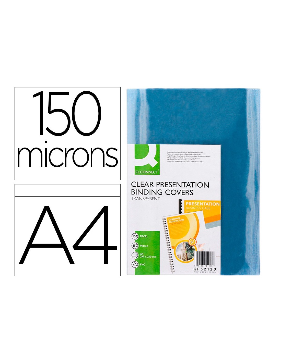 TAPA DE ENCUADERNACION Q-CONNECT PVC DIN A4 INCOLORA 150 MC CAJA DE