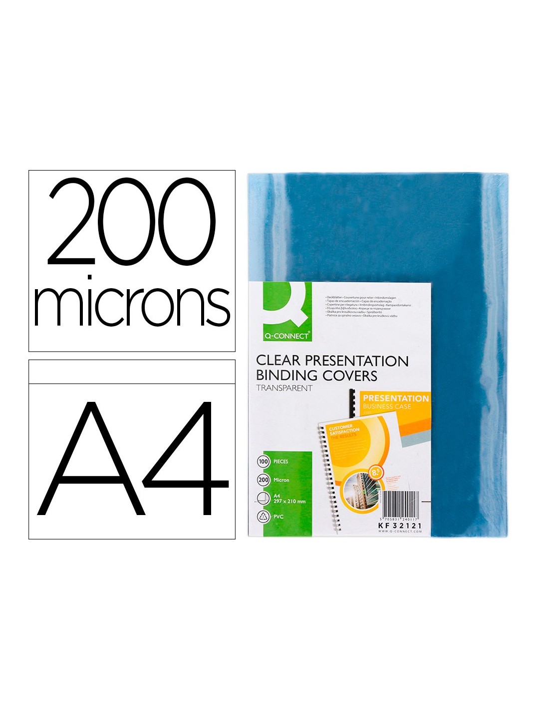 TAPA ENCUADERNACIO Q-CON.PVC DIN A4 200 MC TRANS KF32121 100UD**29154