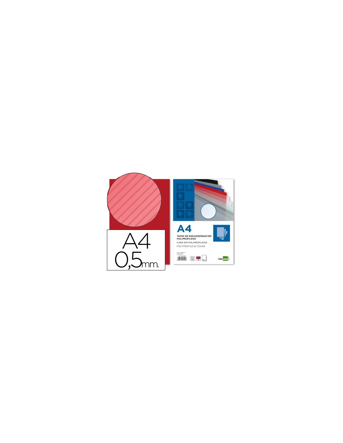 TAPA ENCUADERNACION PP RAYADO DIN A4 ROJO ESPESOR 0,5 MM 100 U**44342
